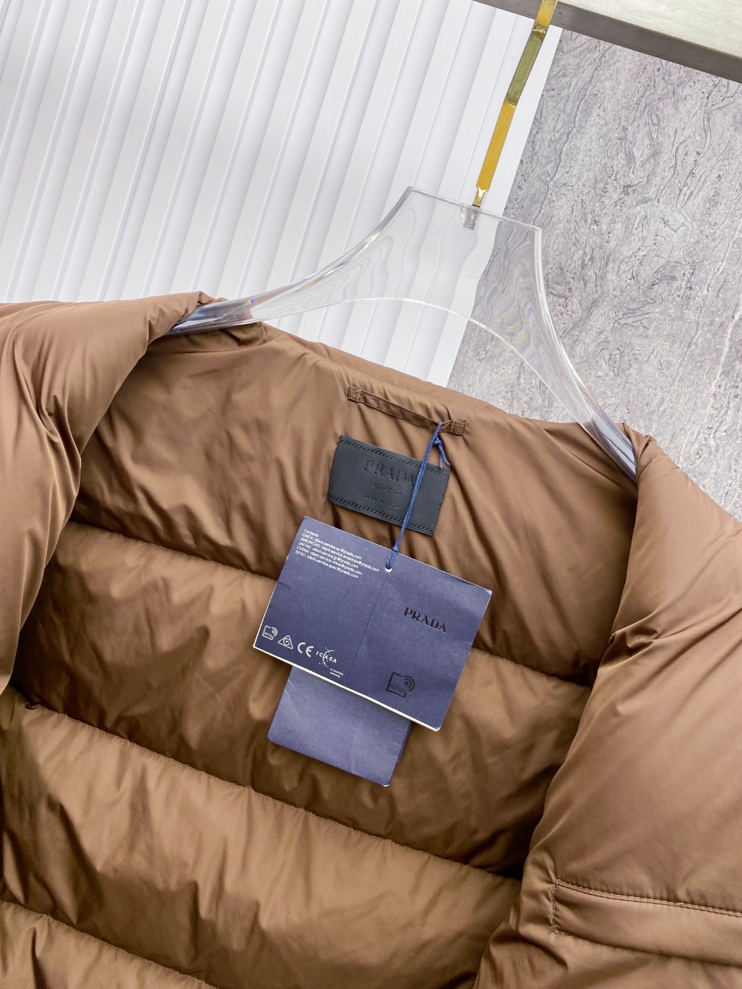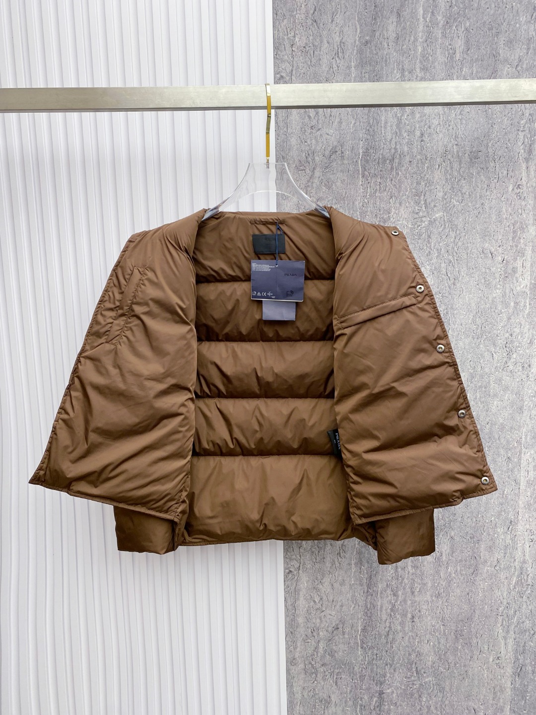 这款衣服是AAAAA 1:1 质量 (非常棒). 使用了和原版一模一样的材料. 商标部分也保持了和普拉达/Prada一样. 图片拍摄是实物衣服拍摄, 您所收到的实物保证和我们图片一模一样.