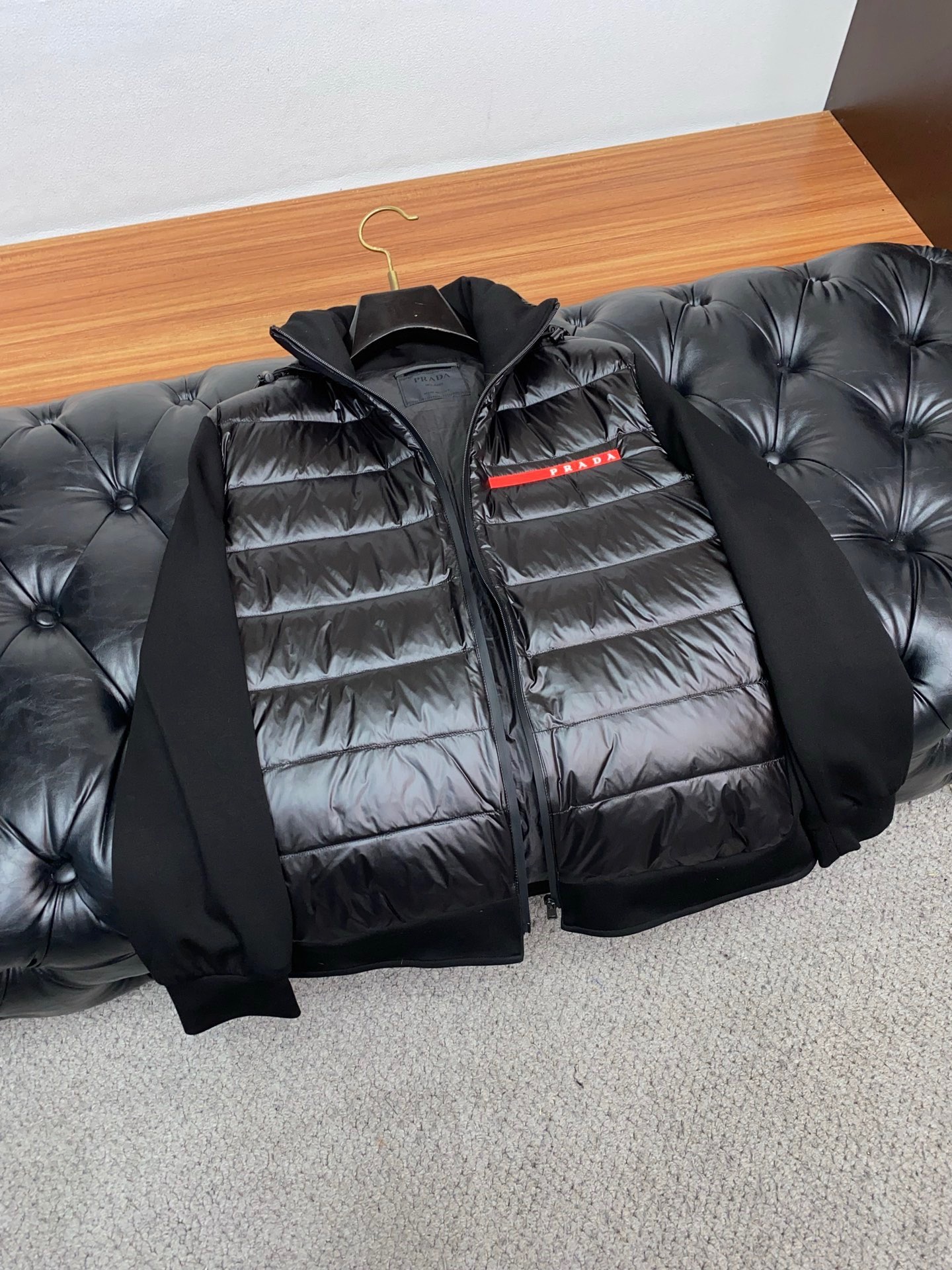 这款衣服是AAAAA 1:1 质量 (非常棒). 使用了和原版一模一样的材料. 商标部分也保持了和普拉达/Prada一样. 图片拍摄是实物衣服拍摄, 您所收到的实物保证和我们图片一模一样.