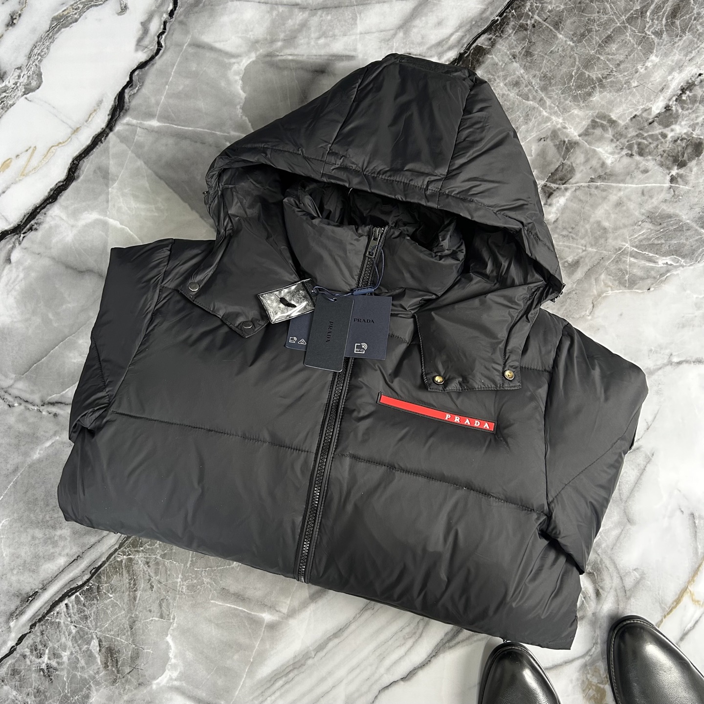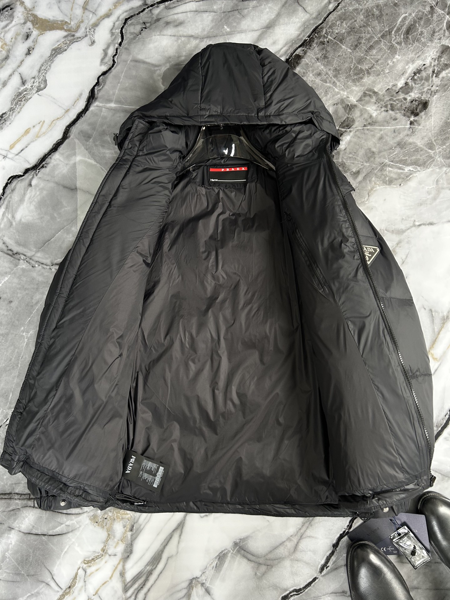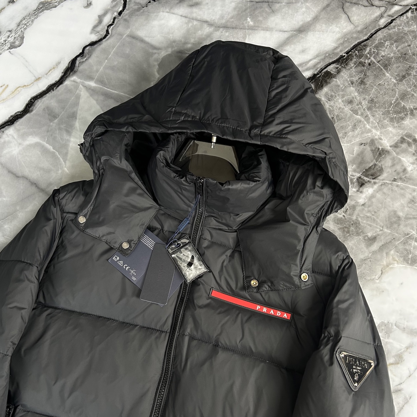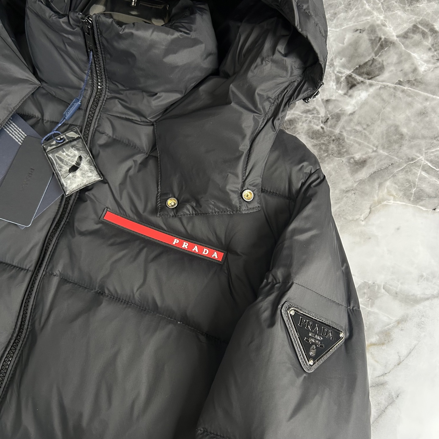 这款衣服是AAAAA 1:1 质量 (非常棒). 使用了和原版一模一样的材料. 商标部分也保持了和普拉达/Prada一样. 图片拍摄是实物衣服拍摄, 您所收到的实物保证和我们图片一模一样.