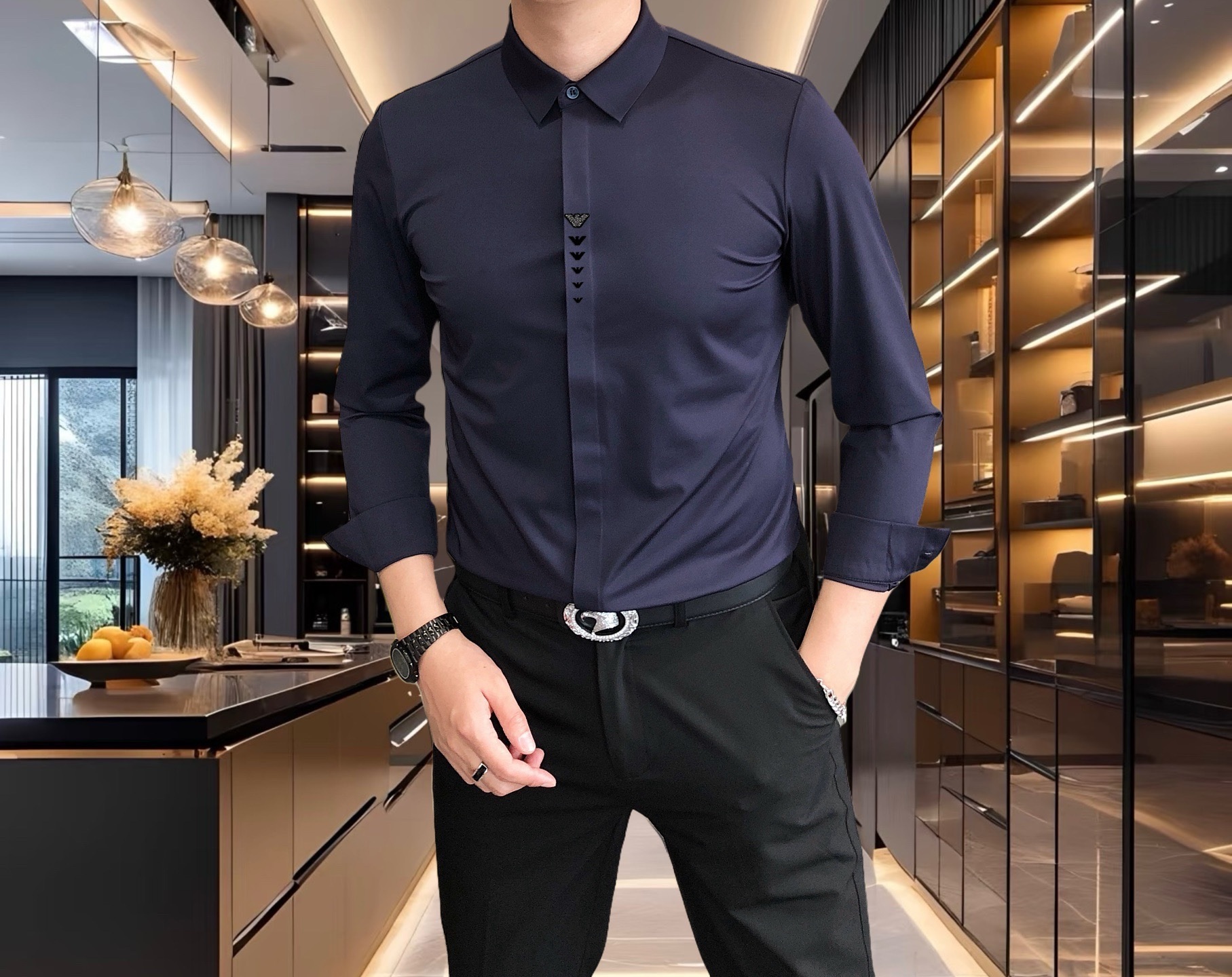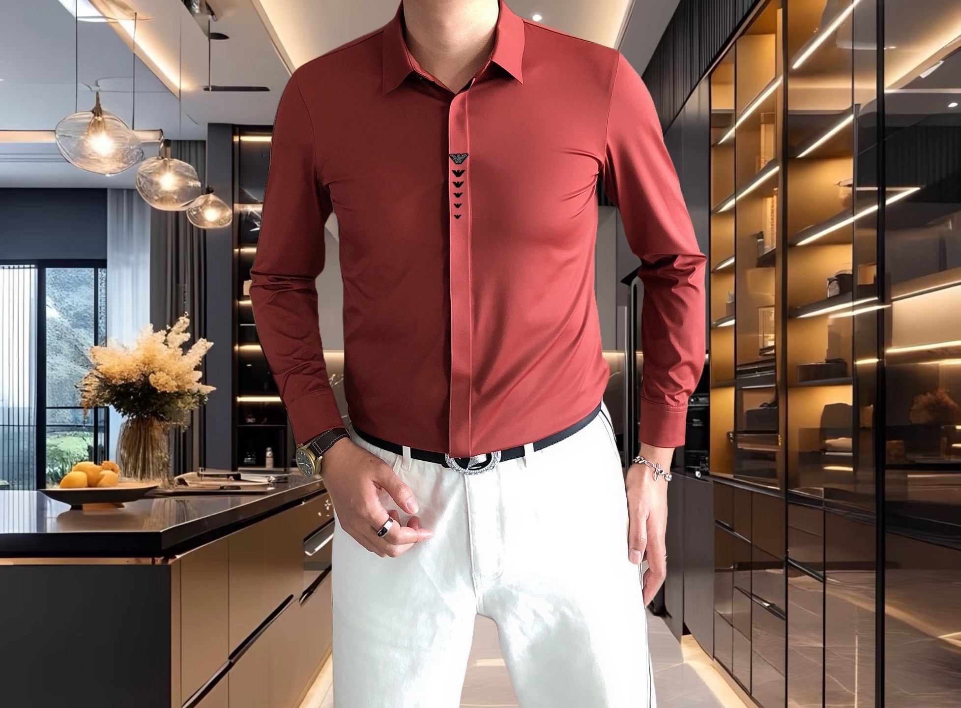 这款衣服是AAAAA 1:1 质量 (非常棒). 使用了和原版一模一样的材料. 商标部分也保持了和阿玛尼/Armani一样. 图片拍摄是实物衣服拍摄, 您所收到的实物保证和我们图片一模一样.