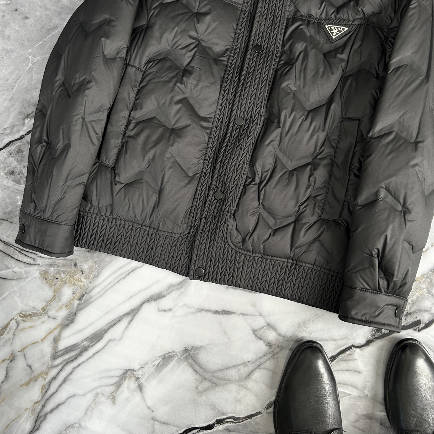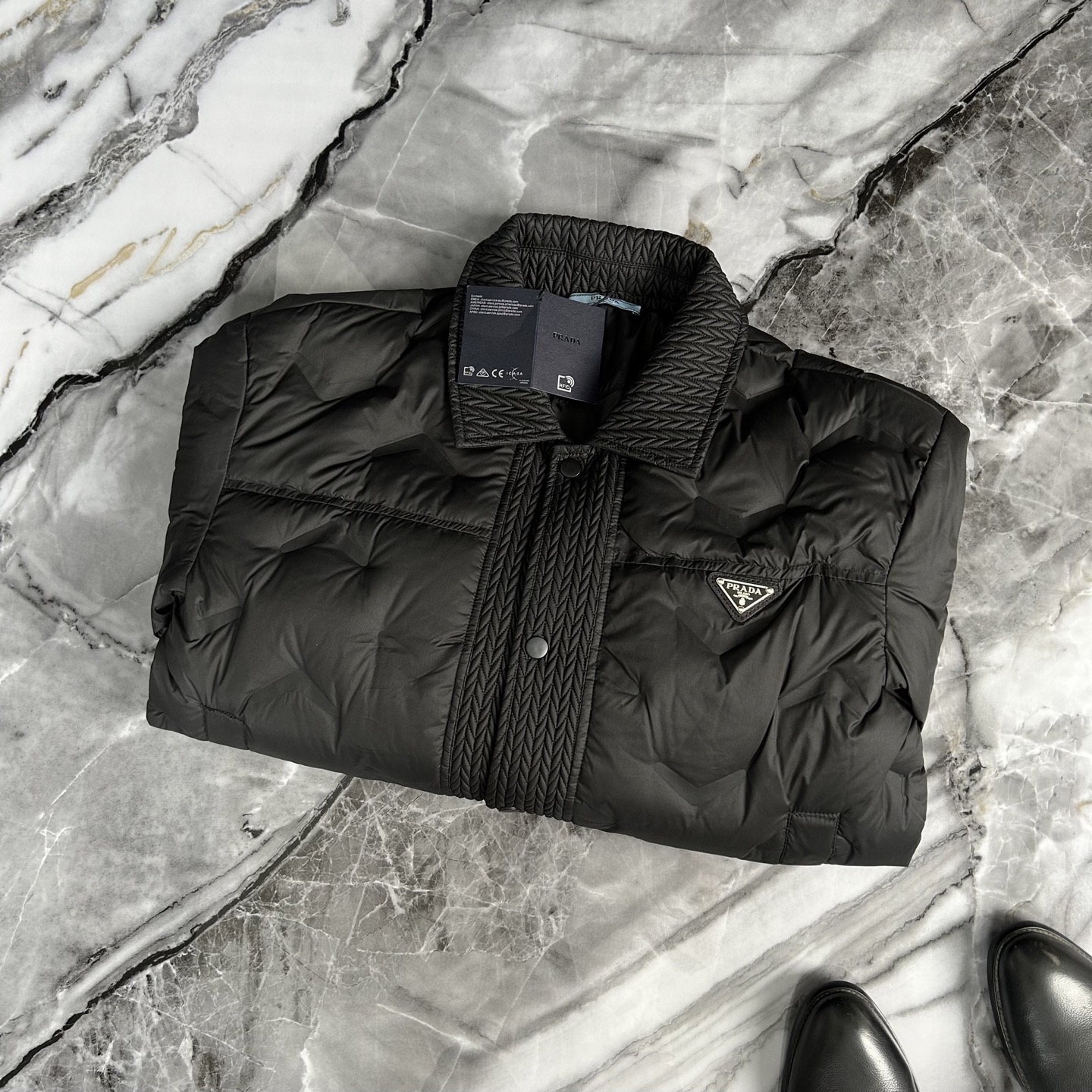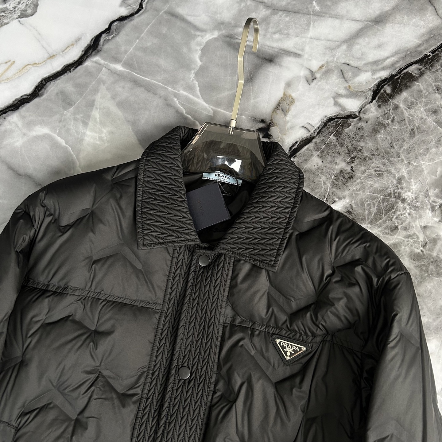 这款衣服是AAAAA 1:1 质量 (非常棒). 使用了和原版一模一样的材料. 商标部分也保持了和普拉达/Prada一样. 图片拍摄是实物衣服拍摄, 您所收到的实物保证和我们图片一模一样.