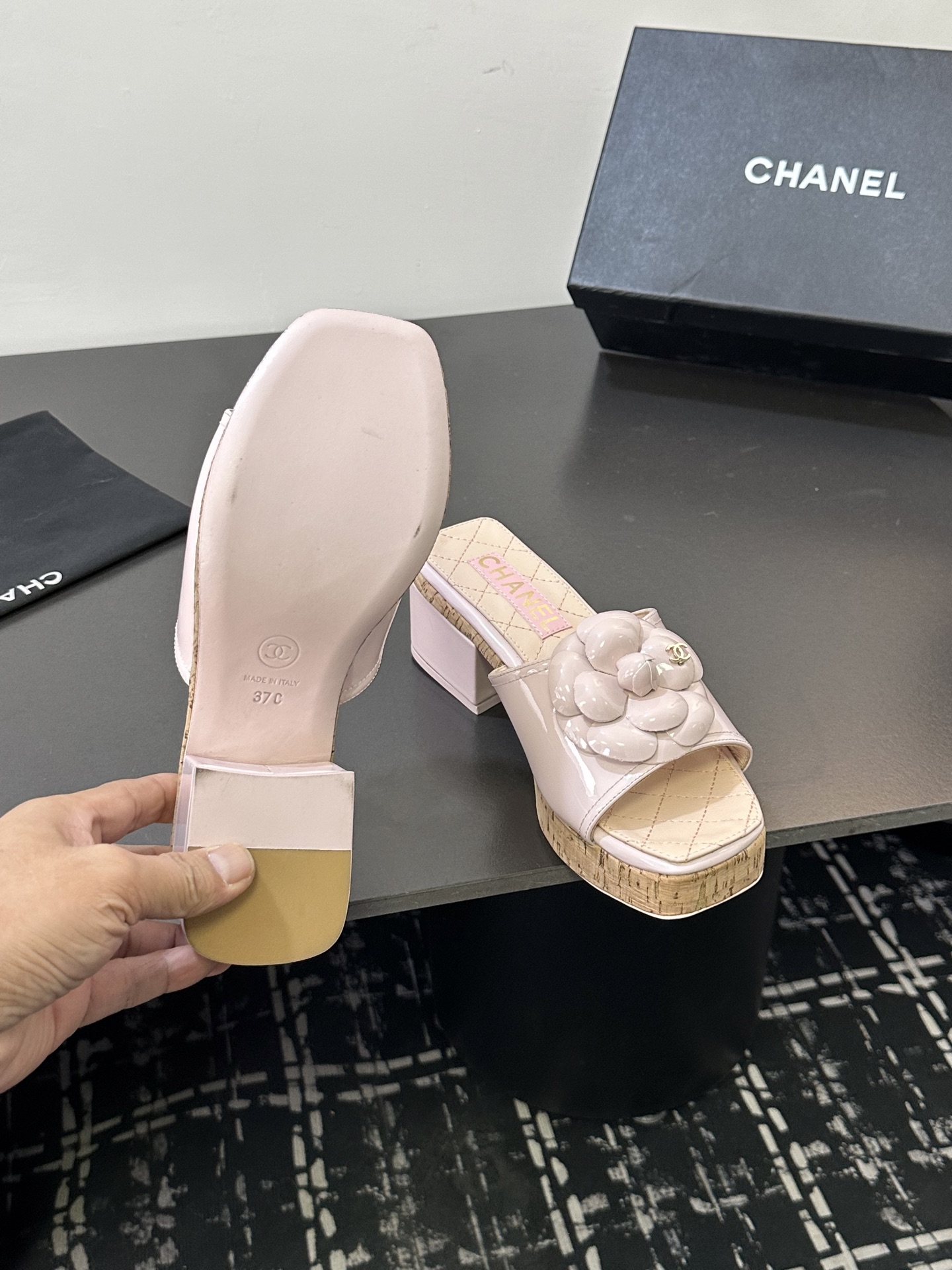 这款鞋子是AAAAA 1:1 质量 (非常棒). 使用了和原版一模一样的材料. 商标部分也保持了和香奈儿/Chanel一样. 图片拍摄是实物鞋子拍摄, 您所收到的实物保证和我们图片一模一样.