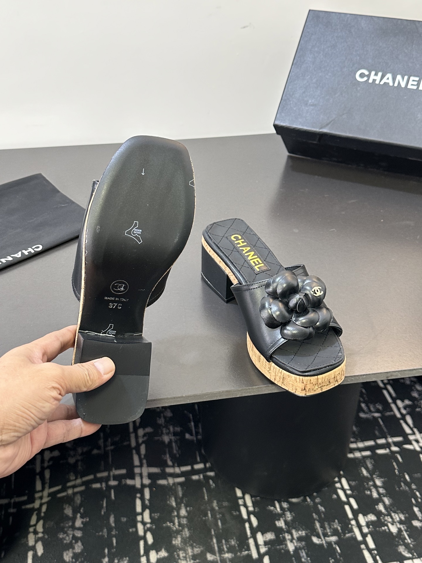 这款鞋子是AAAAA 1:1 质量 (非常棒). 使用了和原版一模一样的材料. 商标部分也保持了和香奈儿/Chanel一样. 图片拍摄是实物鞋子拍摄, 您所收到的实物保证和我们图片一模一样.