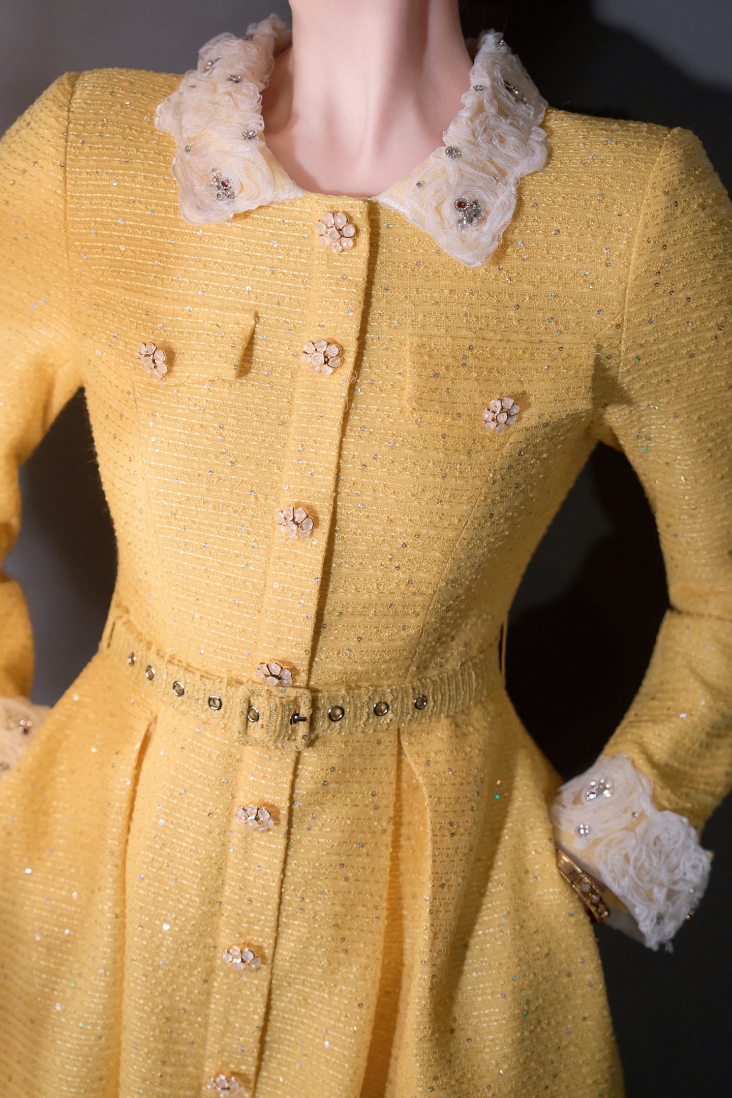 这款衣服是AAAAA 1:1 质量 (非常棒). 使用了和原版一模一样的材料. 商标部分也保持了和香奈儿/Chanel一样. 图片拍摄是实物衣服拍摄, 您所收到的实物保证和我们图片一模一样.