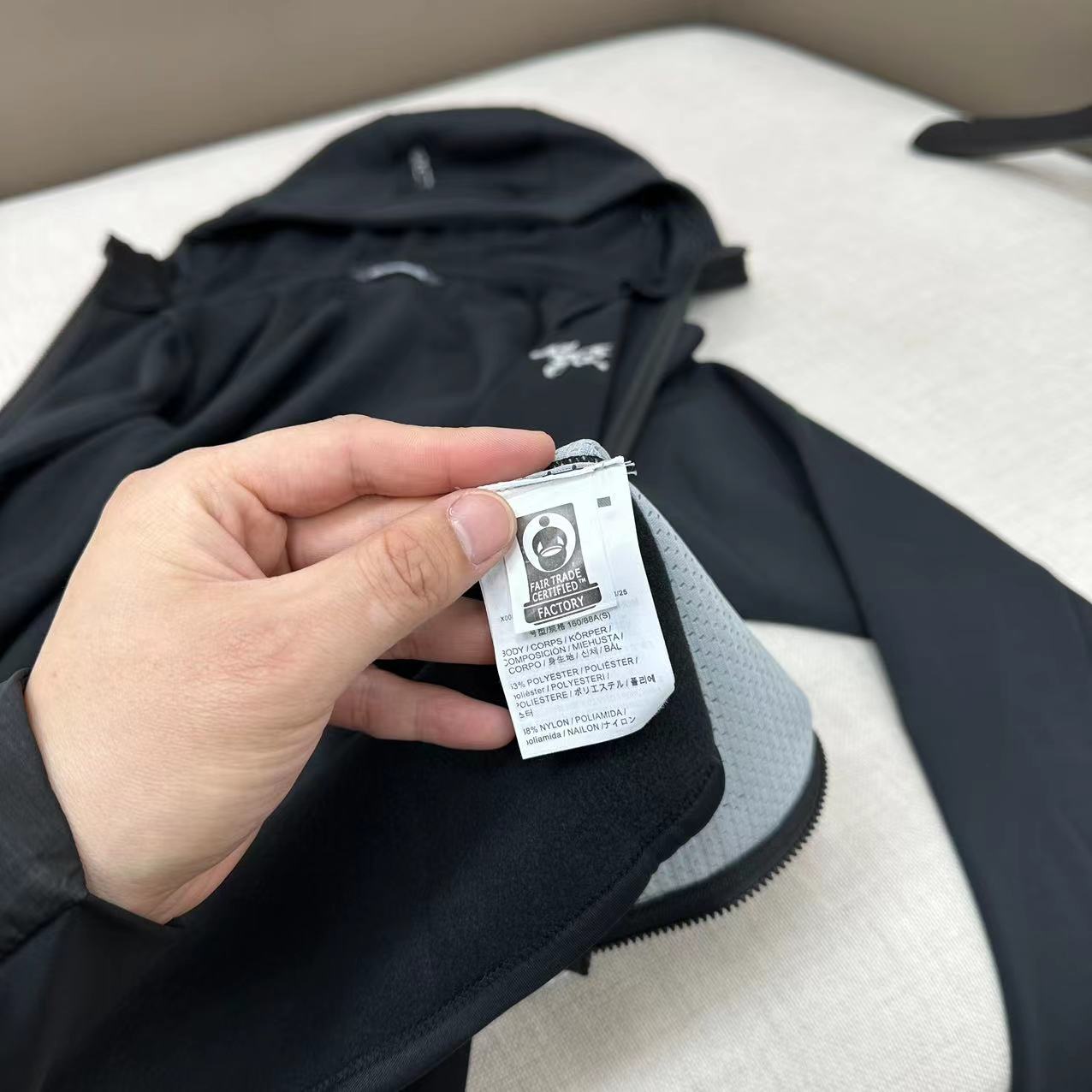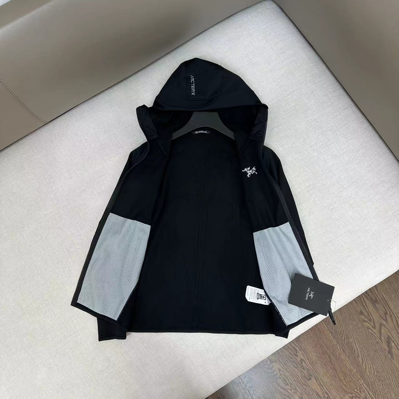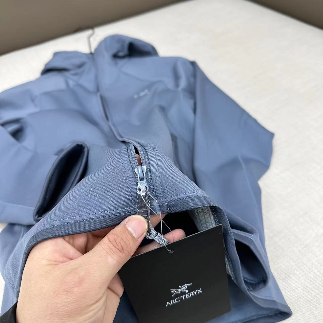 这款衣服是AAAAA 1:1 质量 (非常棒). 使用了和原版一模一样的材料. 商标部分也保持了和ARC'TERYX一样. 图片拍摄是实物衣服拍摄, 您所收到的实物保证和我们图片一模一样.