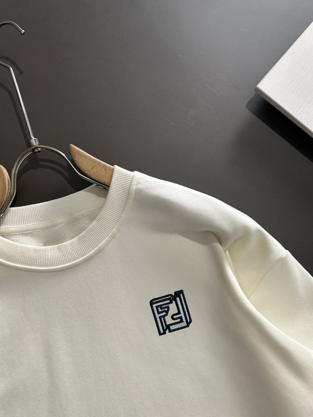 这款衣服是AAAAA 1:1 质量 (非常棒). 使用了和原版一模一样的材料. 商标部分也保持了和芬迪/Fendi一样. 图片拍摄是实物衣服拍摄, 您所收到的实物保证和我们图片一模一样.