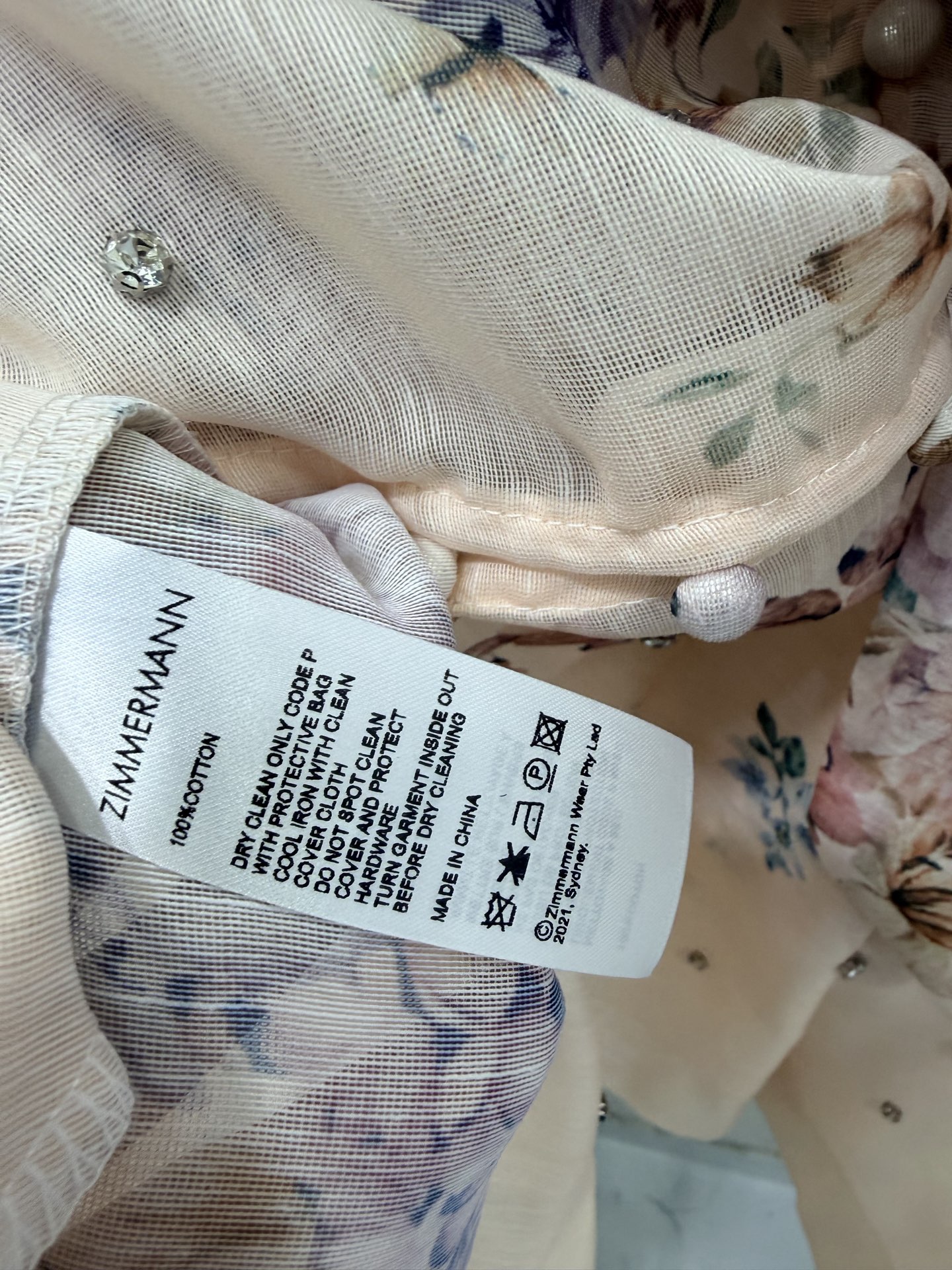 这款衣服是AAAAA 1:1 质量 (非常棒). 使用了和原版一模一样的材料. 商标部分也保持了和ZIMMERMANN一样. 图片拍摄是实物衣服拍摄, 您所收到的实物保证和我们图片一模一样.