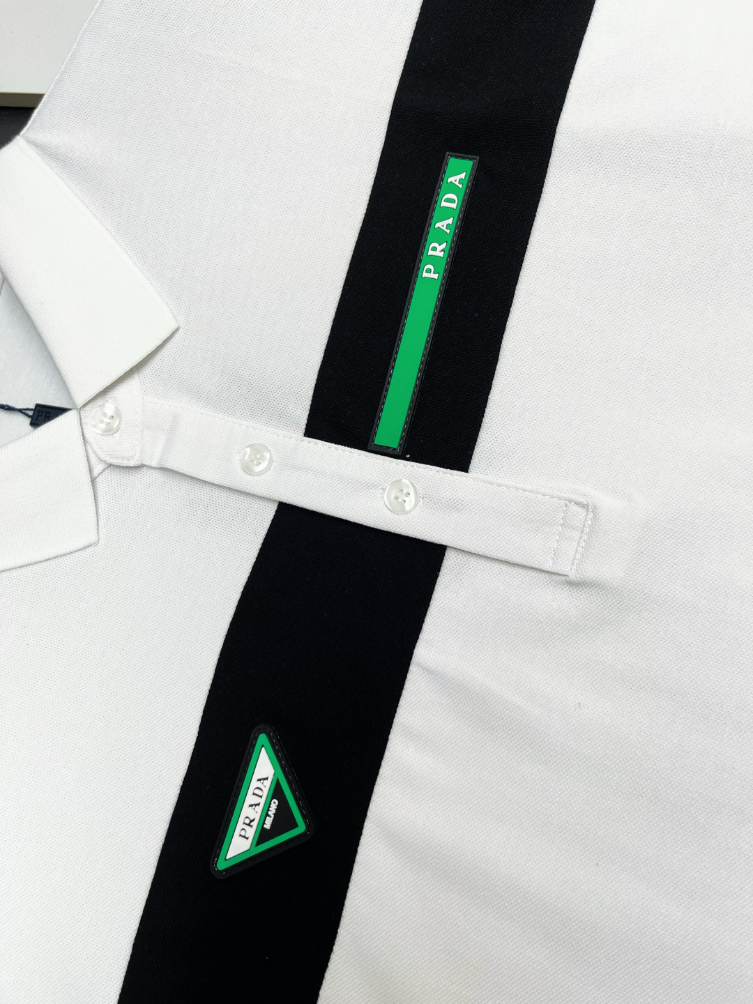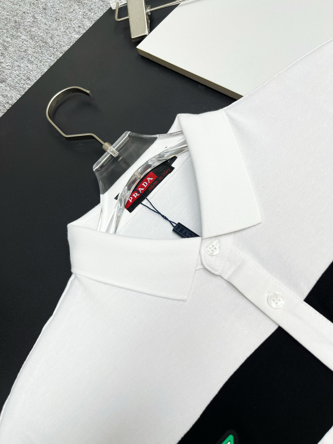这款衣服是AAAAA 1:1 质量 (非常棒). 使用了和原版一模一样的材料. 商标部分也保持了和普拉达/Prada一样. 图片拍摄是实物衣服拍摄, 您所收到的实物保证和我们图片一模一样.