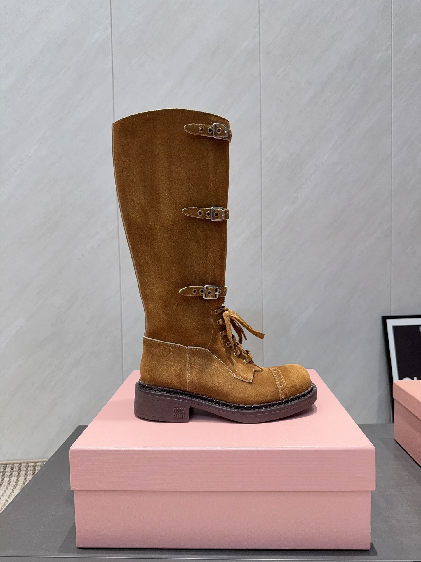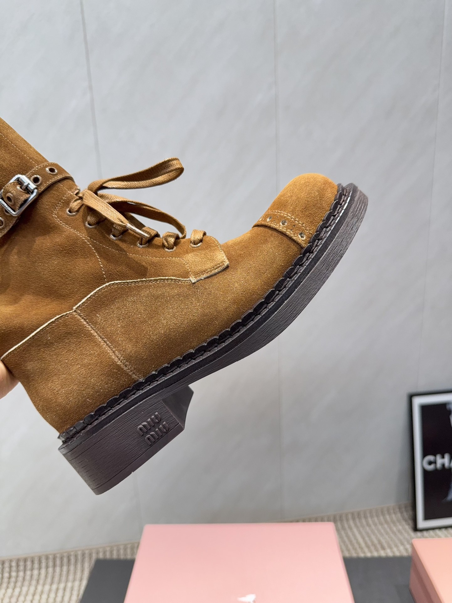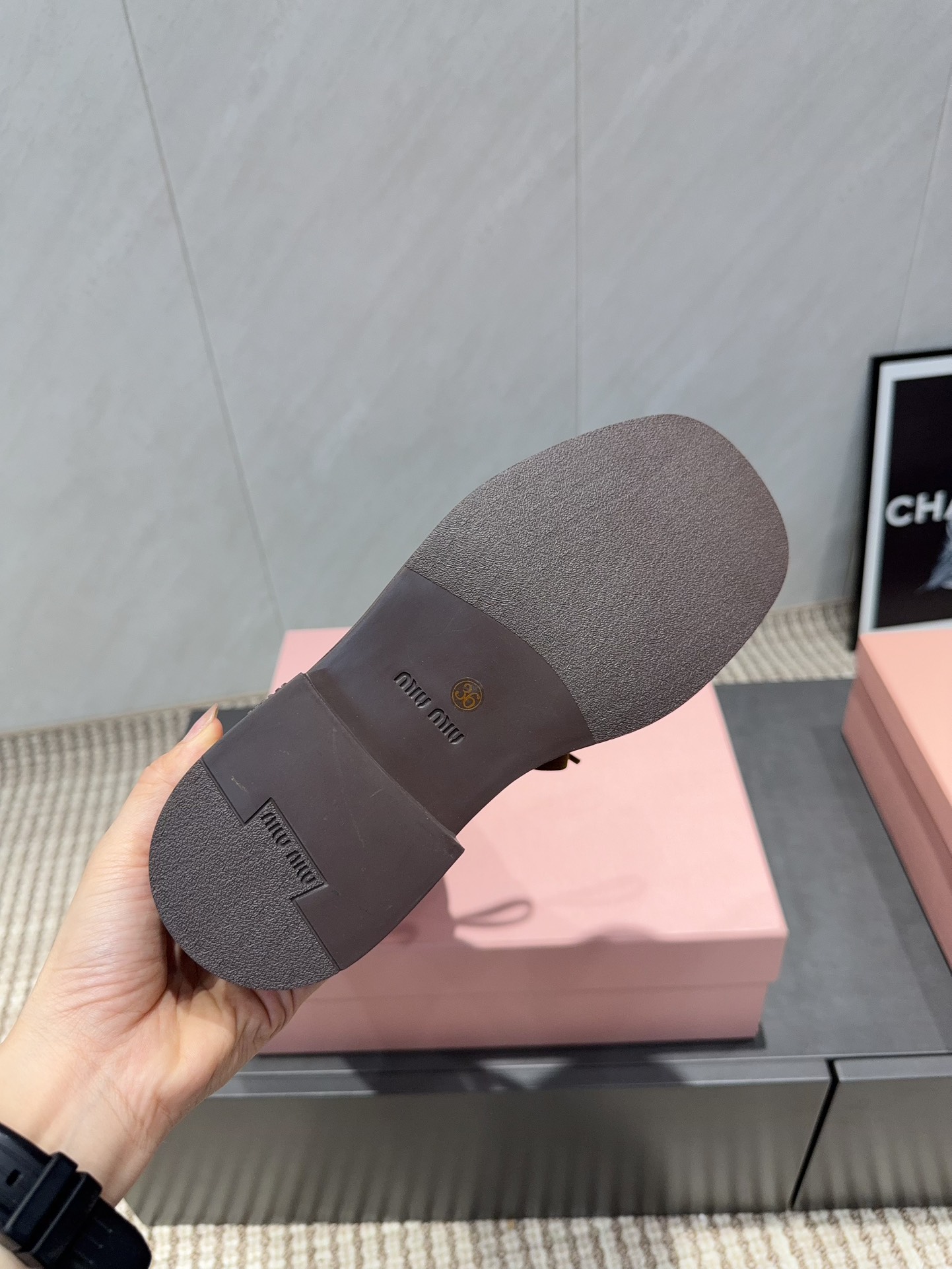 这款鞋子是AAAAA 1:1 质量 (非常棒). 使用了和原版一模一样的材料. 商标部分也保持了和缪缪/Miu Miu一样. 图片拍摄是实物鞋子拍摄, 您所收到的实物保证和我们图片一模一样.