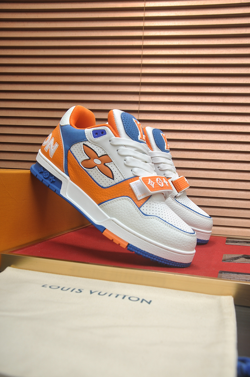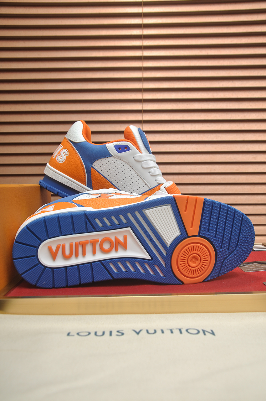 这款鞋子是AAAAA 1:1 质量 (非常棒). 使用了和原版一模一样的材料. 商标部分也保持了和路易威登/Louis Vuitton一样. 图片拍摄是实物鞋子拍摄, 您所收到的实物保证和我们图片一模一样.