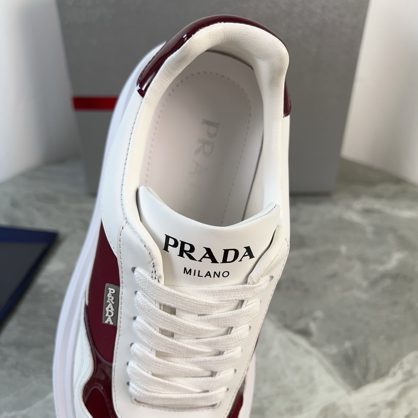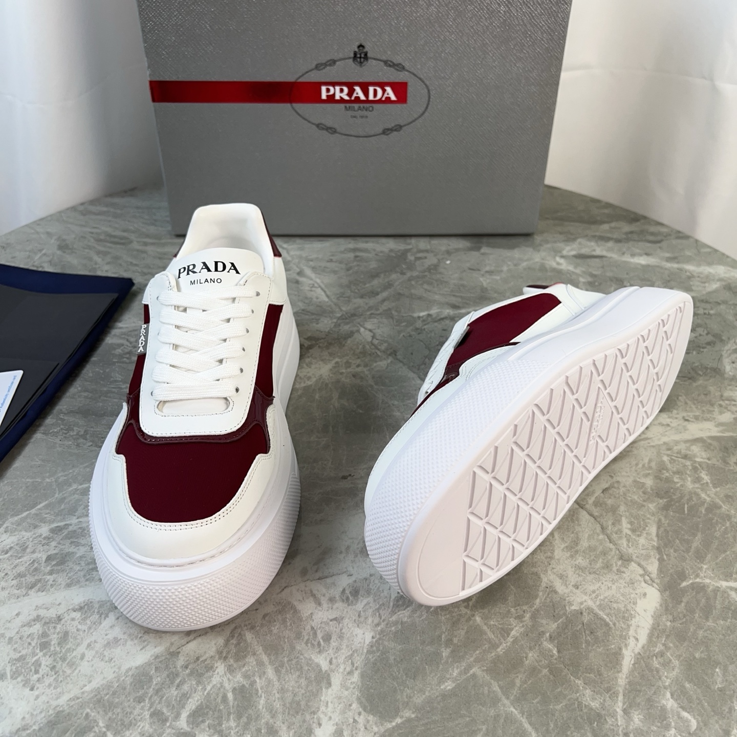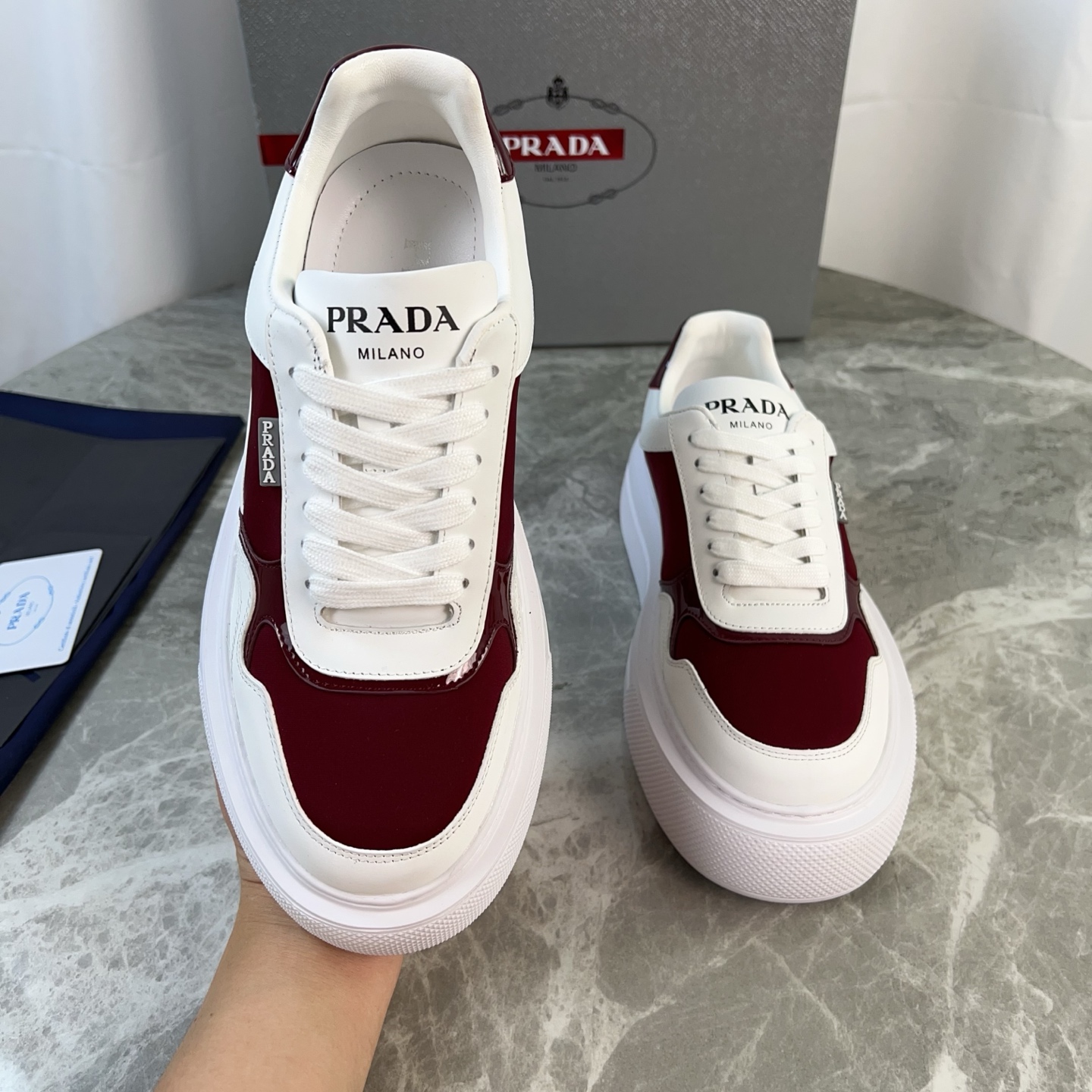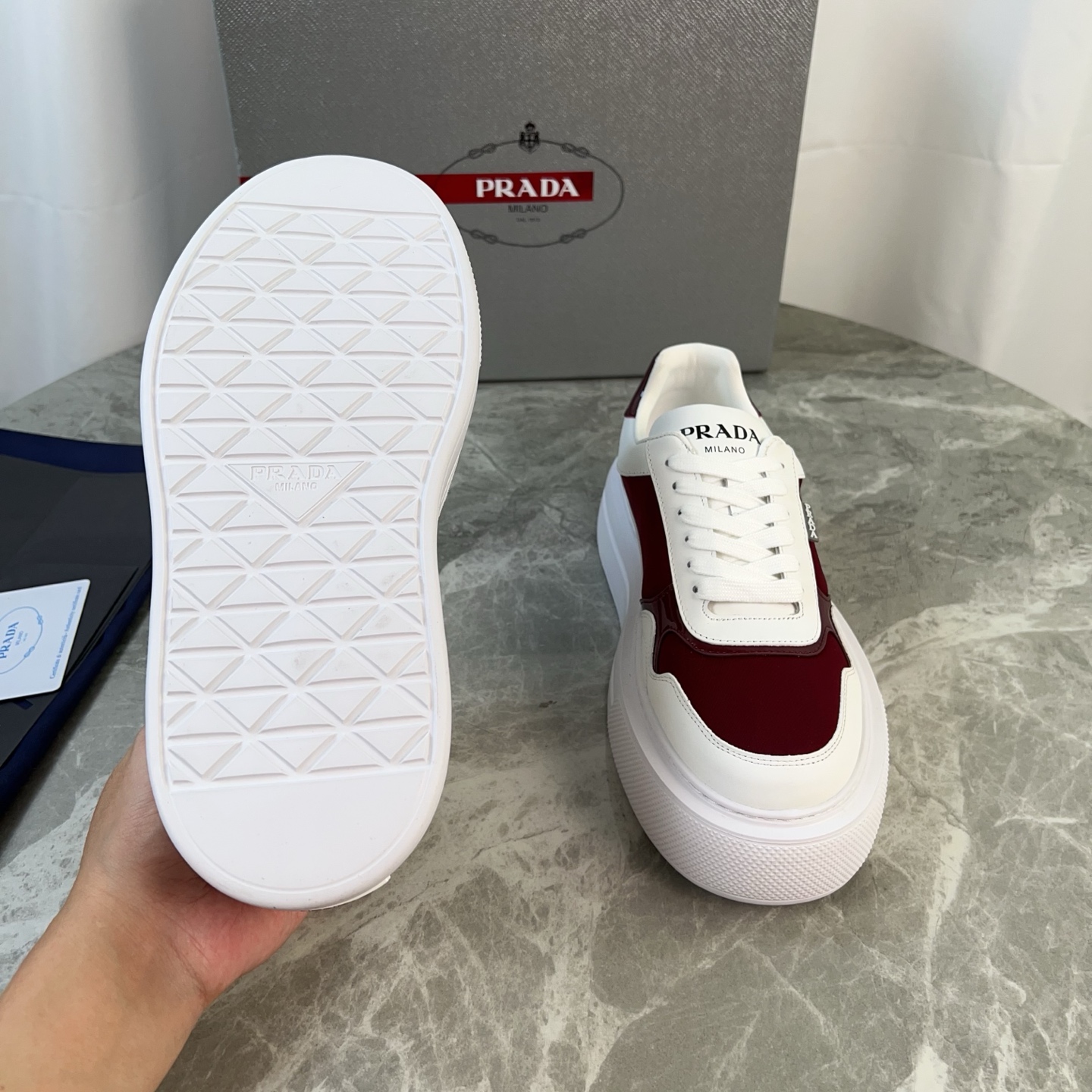 这款鞋子是AAAAA 1:1 质量 (非常棒). 使用了和原版一模一样的材料. 商标部分也保持了和普拉达/Prada一样. 图片拍摄是实物鞋子拍摄, 您所收到的实物保证和我们图片一模一样.