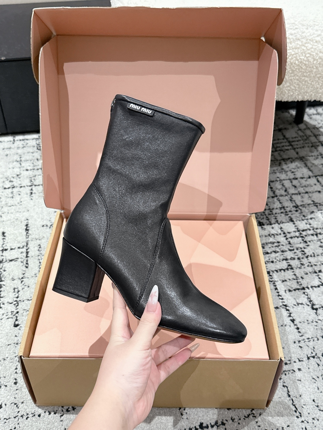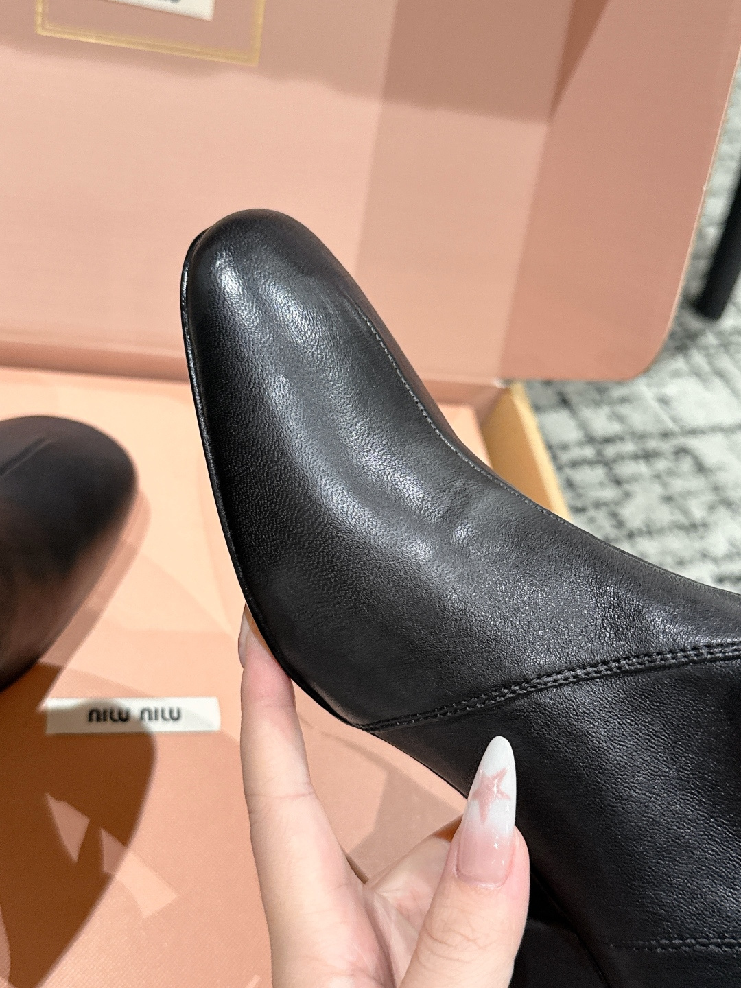 这款鞋子是AAAAA 1:1 质量 (非常棒). 使用了和原版一模一样的材料. 商标部分也保持了和缪缪/Miu Miu一样. 图片拍摄是实物鞋子拍摄, 您所收到的实物保证和我们图片一模一样.