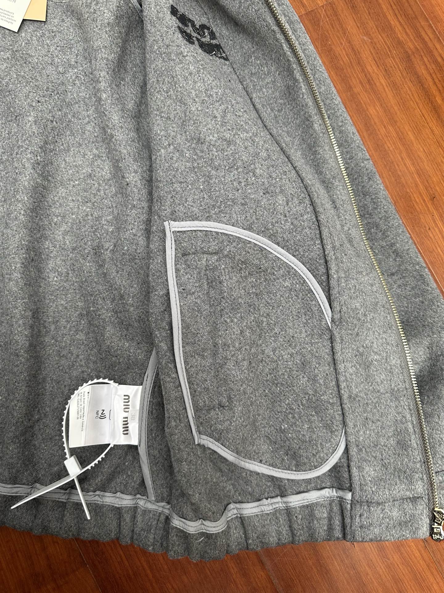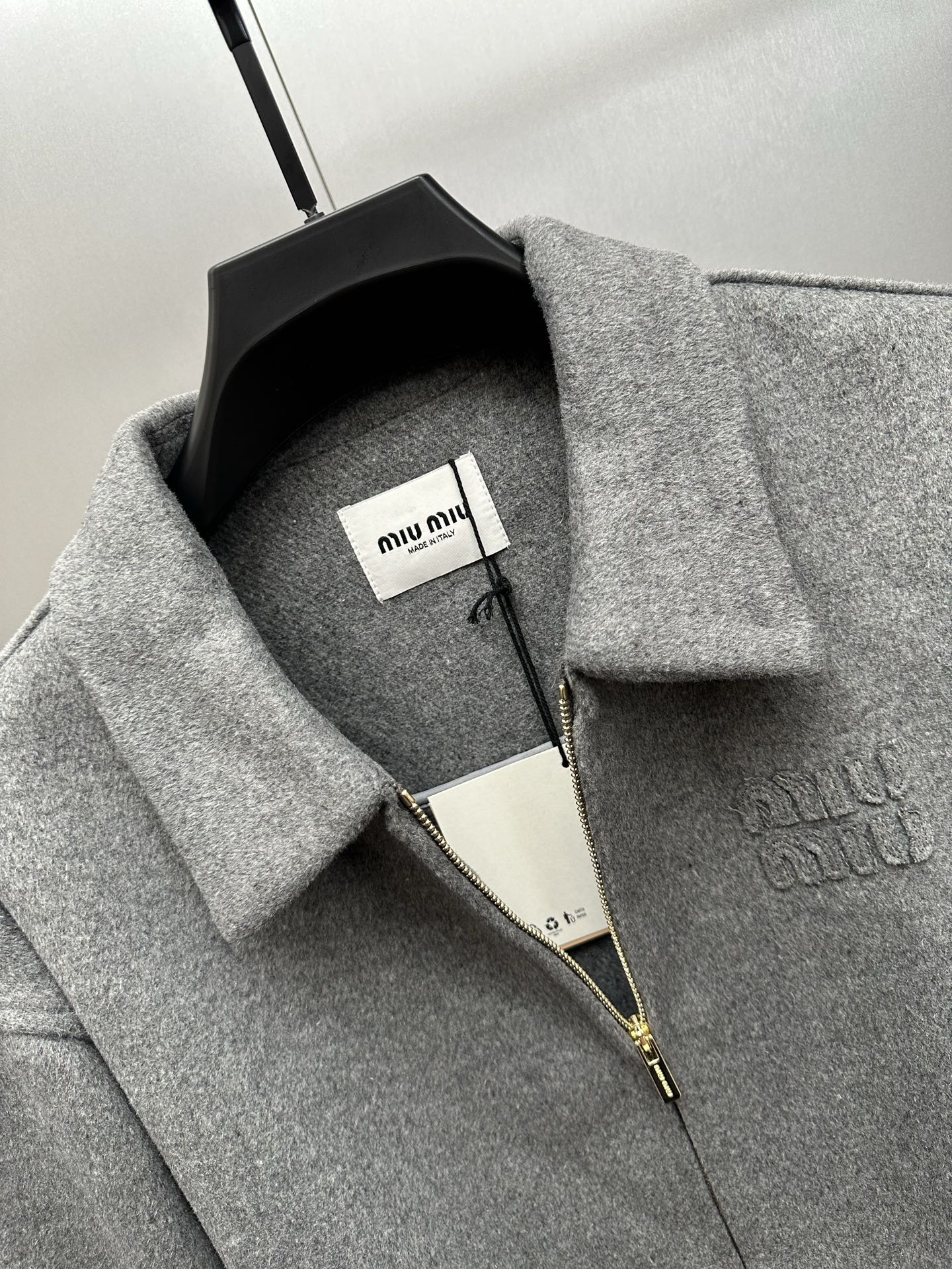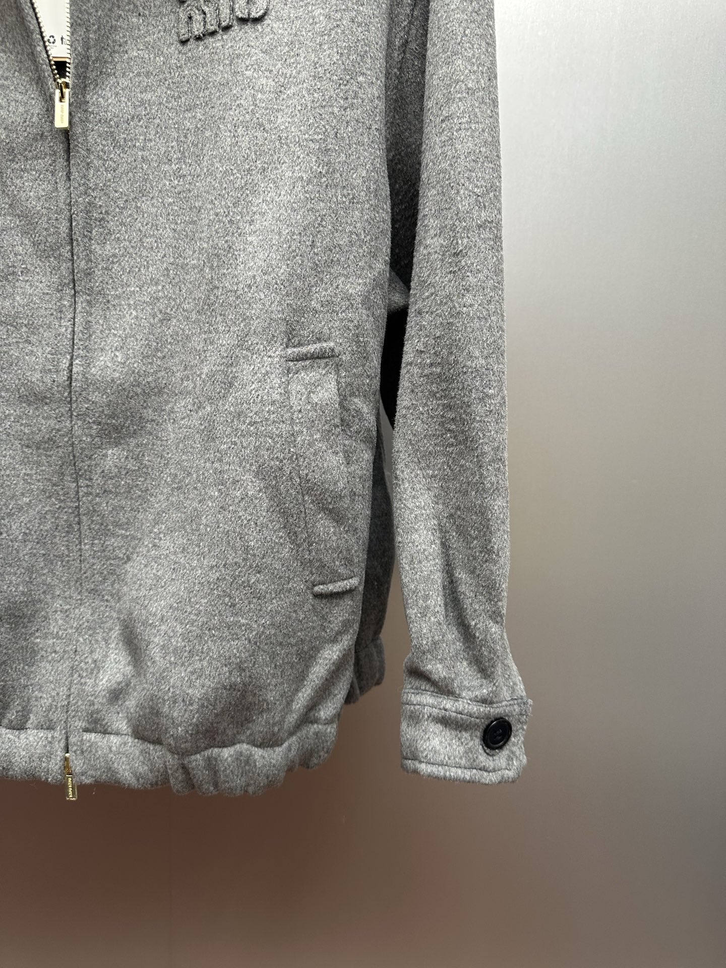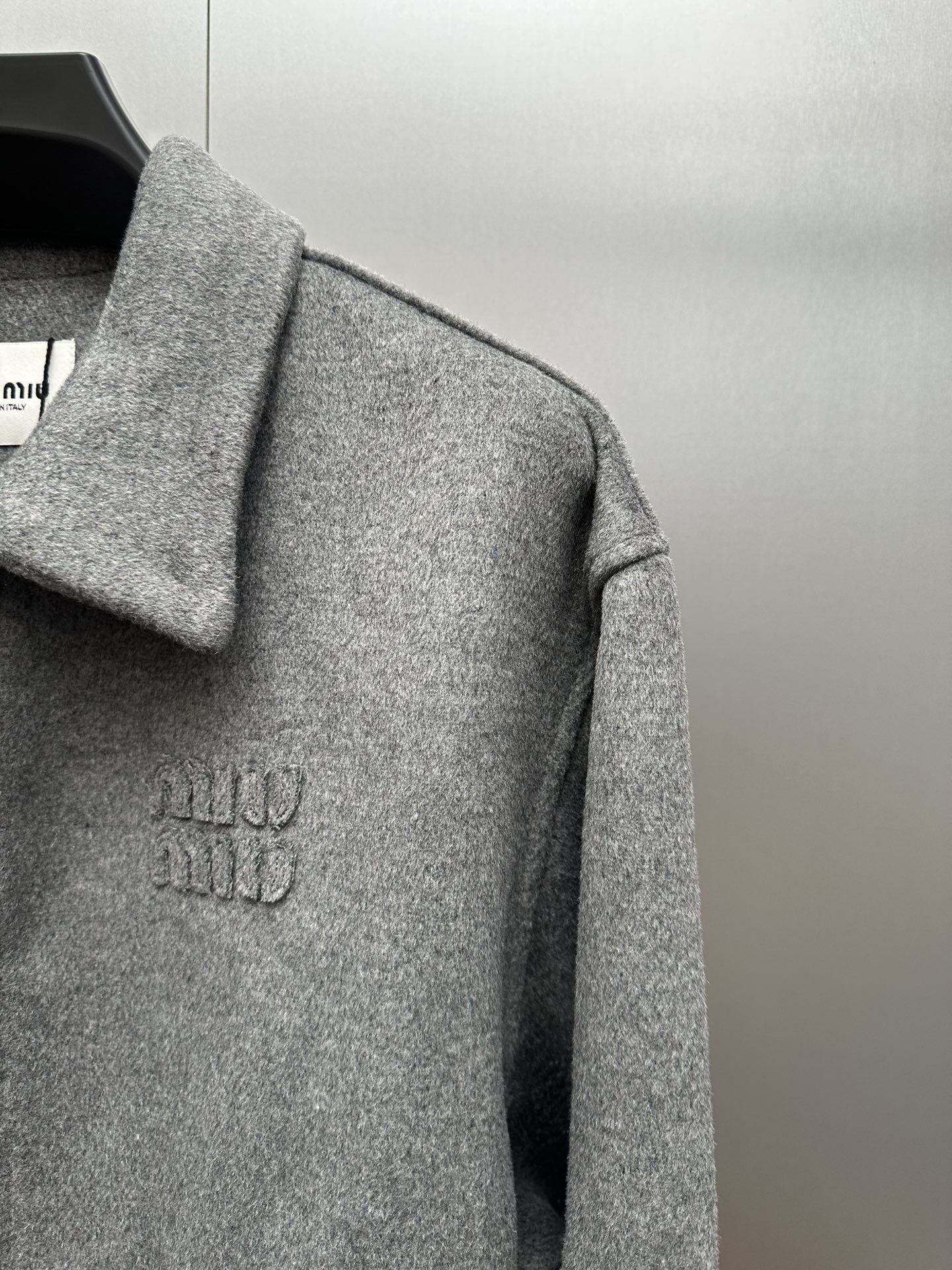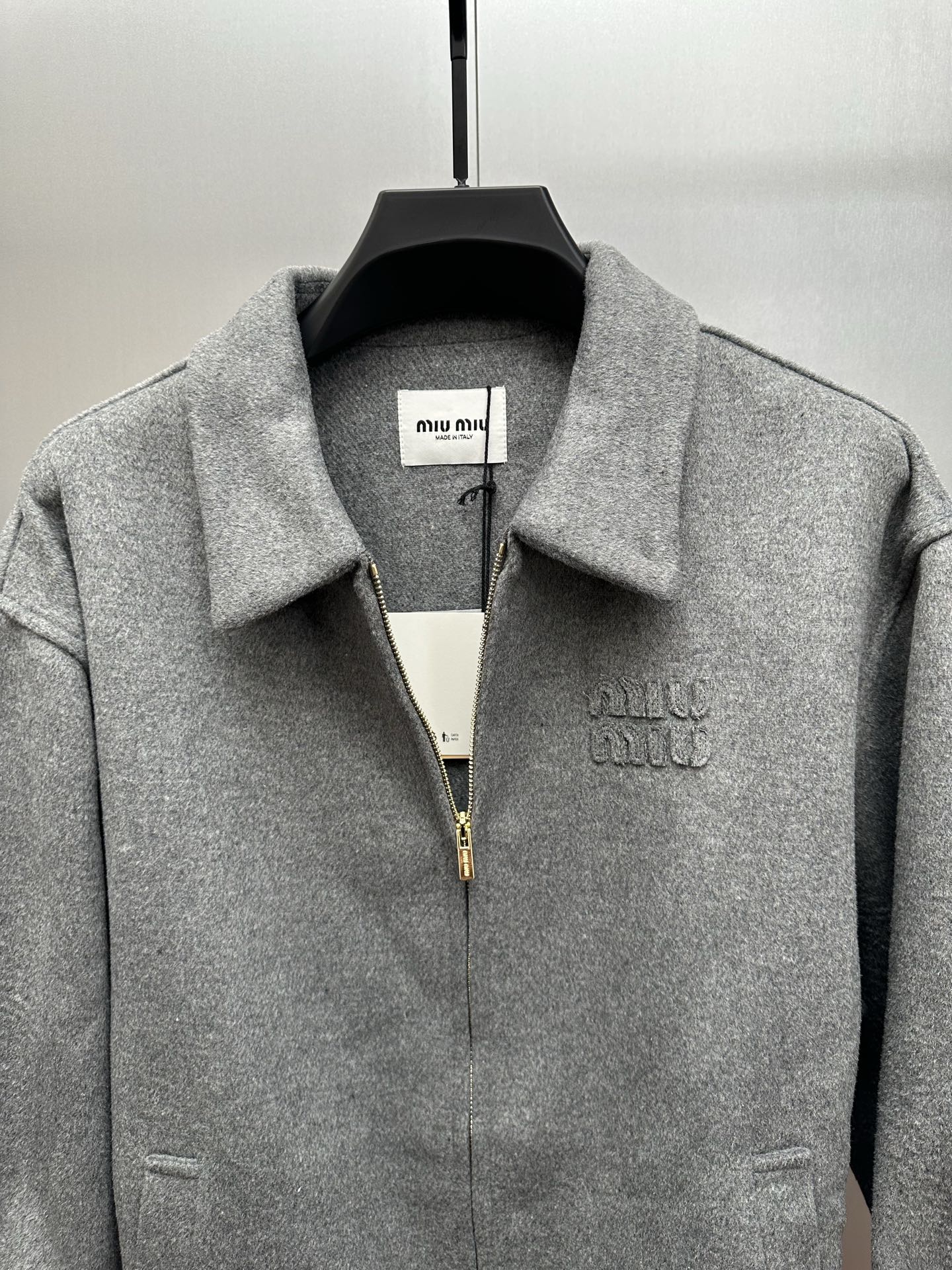 这款衣服是AAAAA 1:1 质量 (非常棒). 使用了和原版一模一样的材料. 商标部分也保持了和缪缪/Miu Miu一样. 图片拍摄是实物衣服拍摄, 您所收到的实物保证和我们图片一模一样.