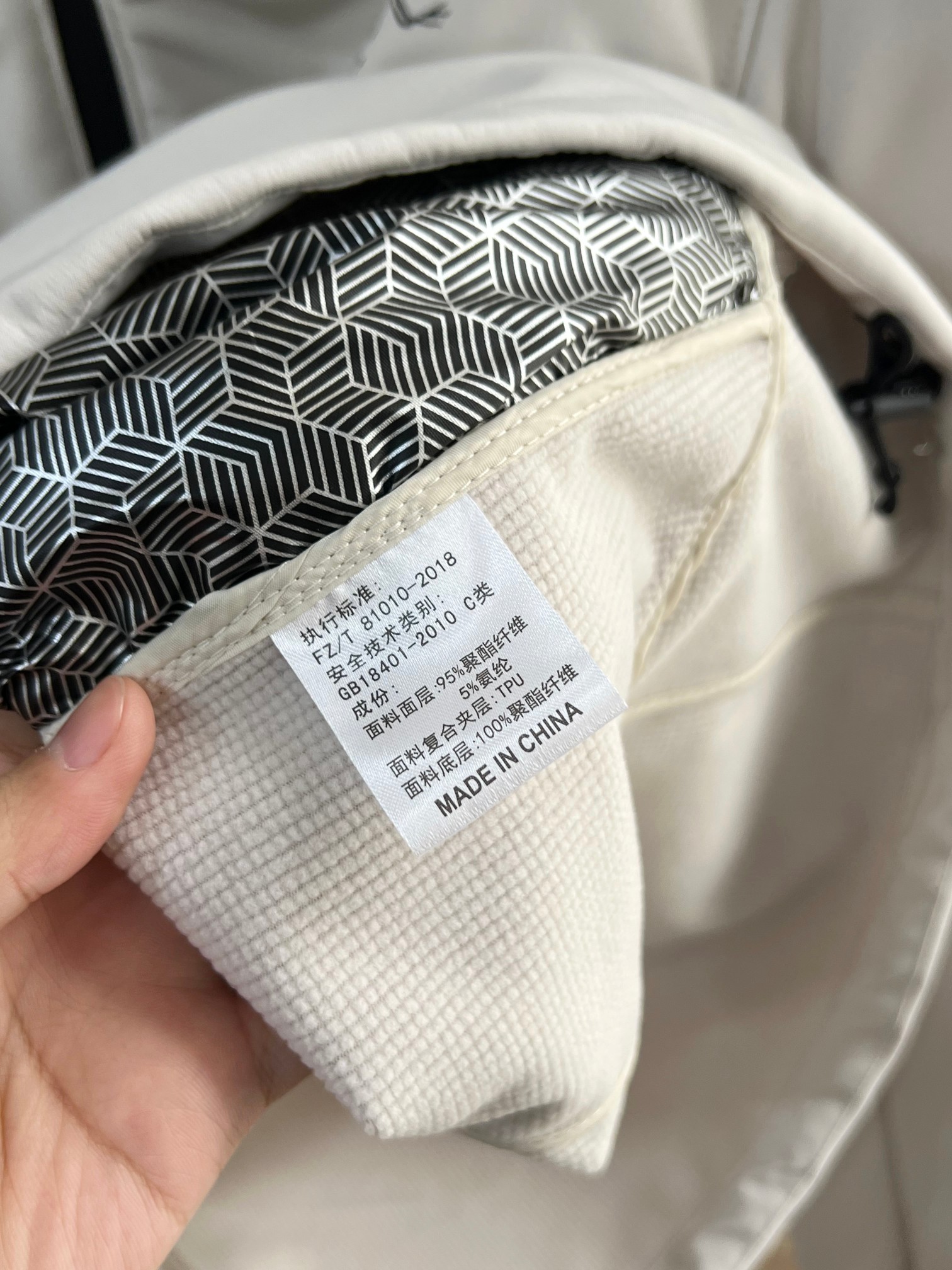 这款衣服是AAAAA 1:1 质量 (非常棒). 使用了和原版一模一样的材料. 商标部分也保持了和ARC'TERYX一样. 图片拍摄是实物衣服拍摄, 您所收到的实物保证和我们图片一模一样.