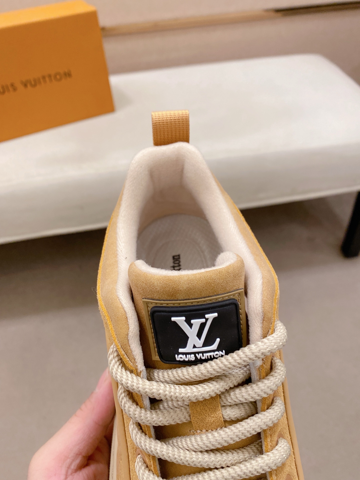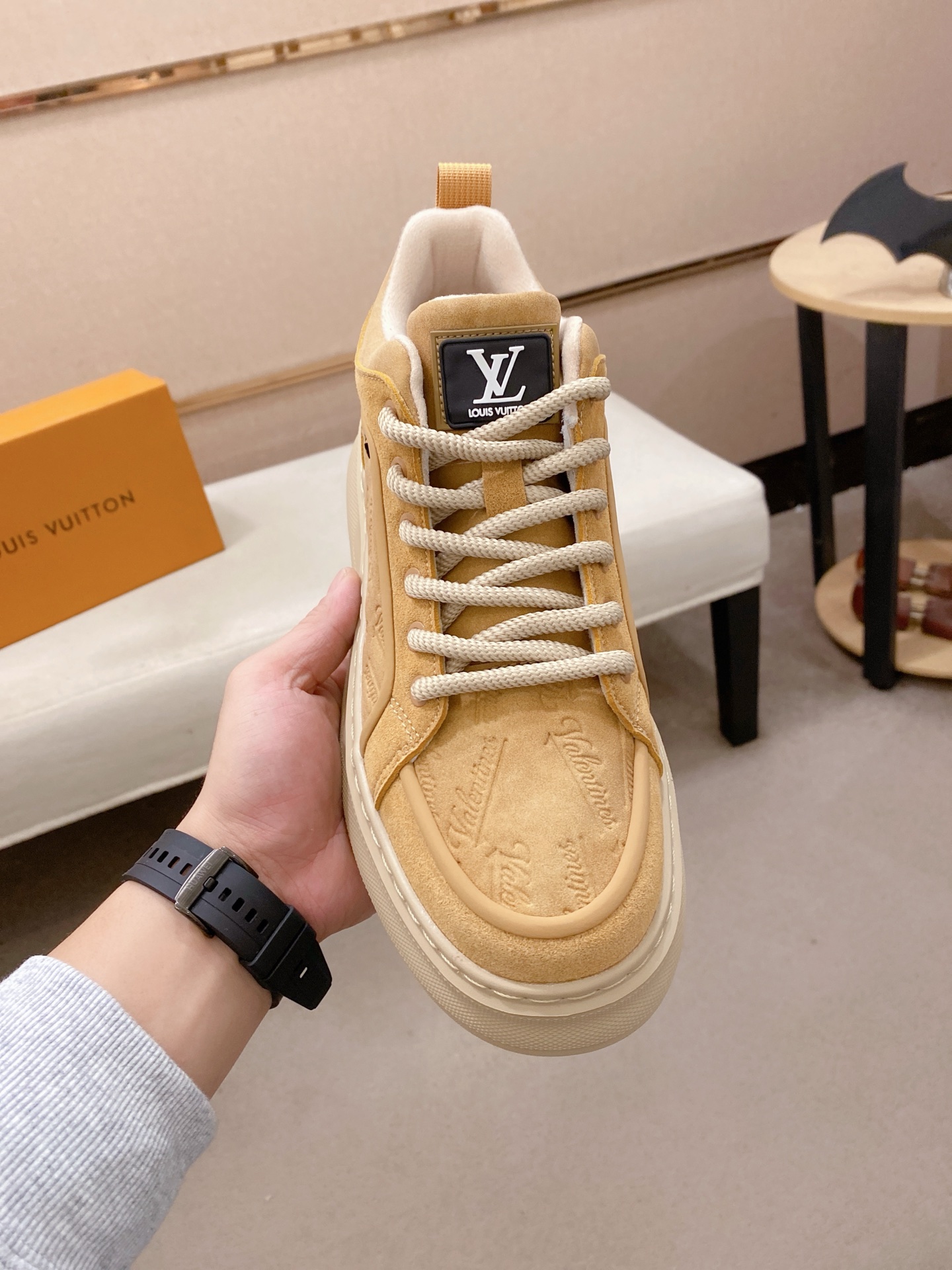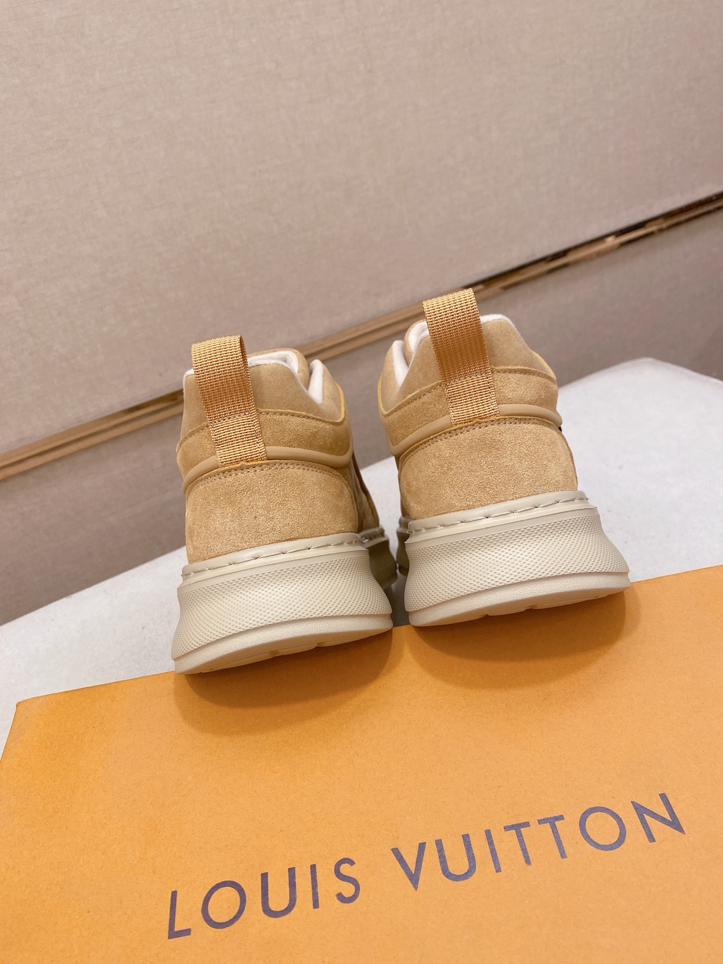 这款鞋子是AAAAA 1:1 质量 (非常棒). 使用了和原版一模一样的材料. 商标部分也保持了和路易威登/Louis Vuitton一样. 图片拍摄是实物鞋子拍摄, 您所收到的实物保证和我们图片一模一样.