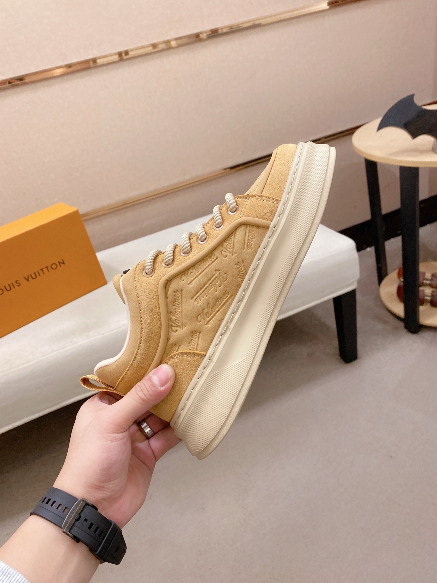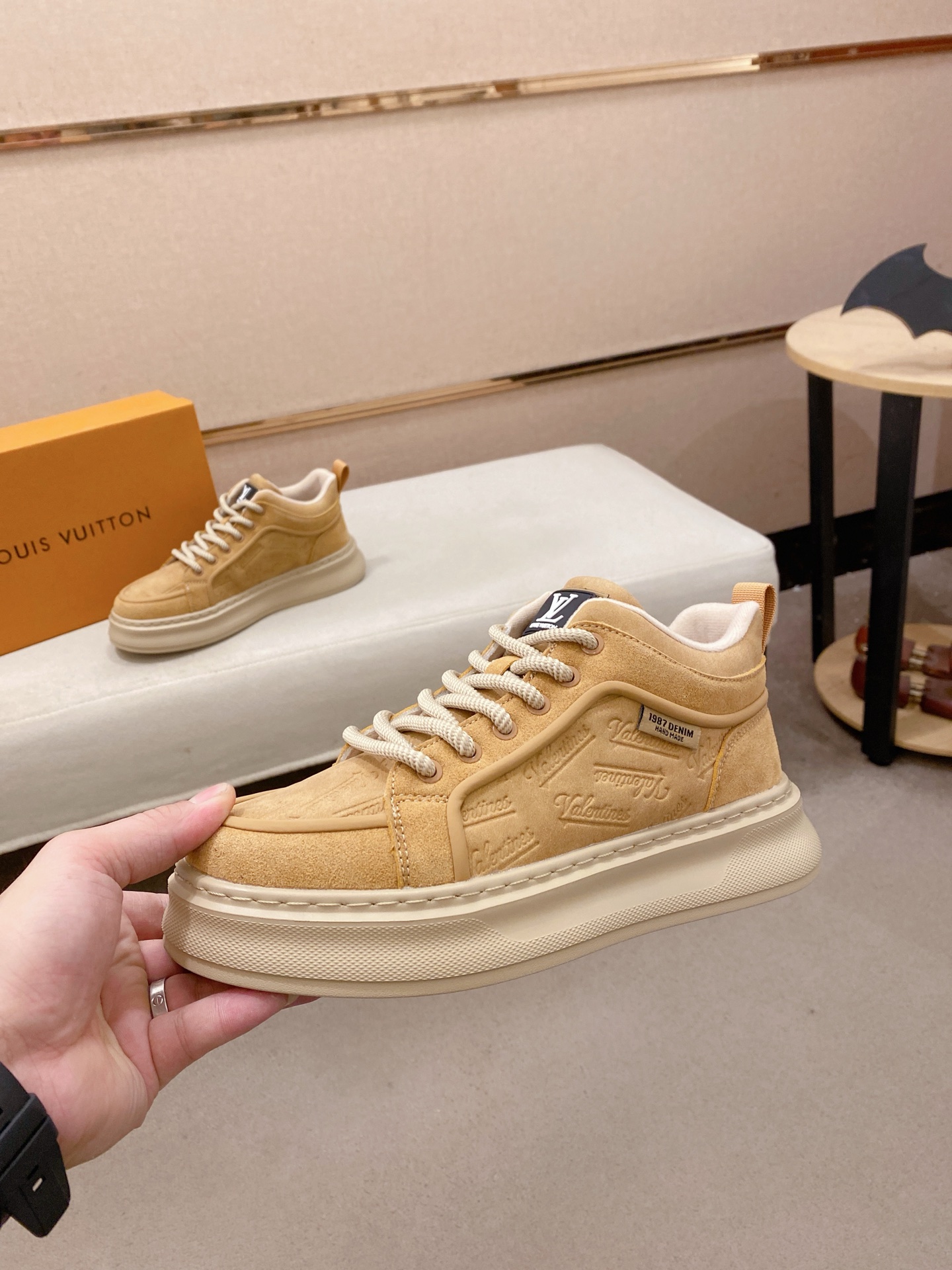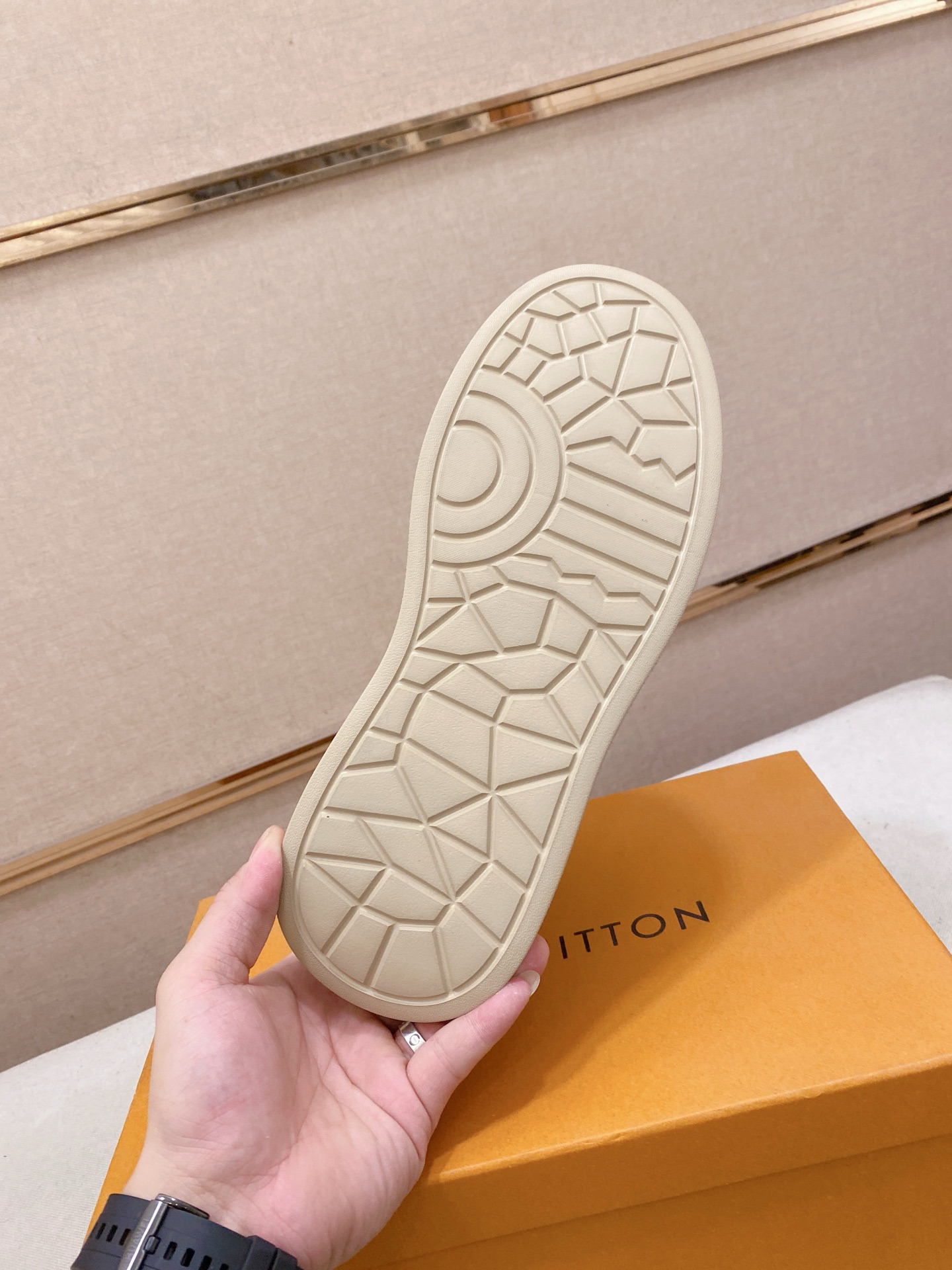这款鞋子是AAAAA 1:1 质量 (非常棒). 使用了和原版一模一样的材料. 商标部分也保持了和路易威登/Louis Vuitton一样. 图片拍摄是实物鞋子拍摄, 您所收到的实物保证和我们图片一模一样.