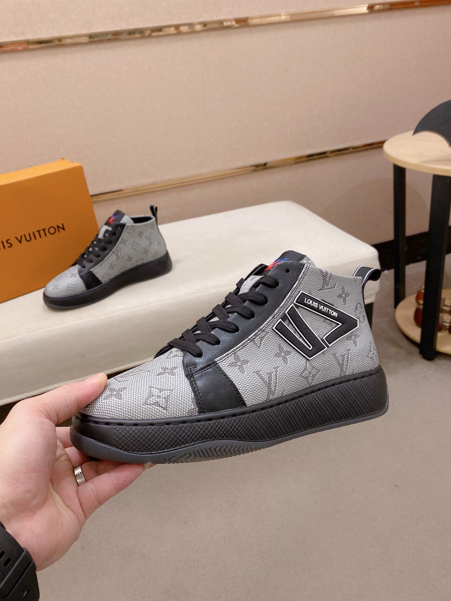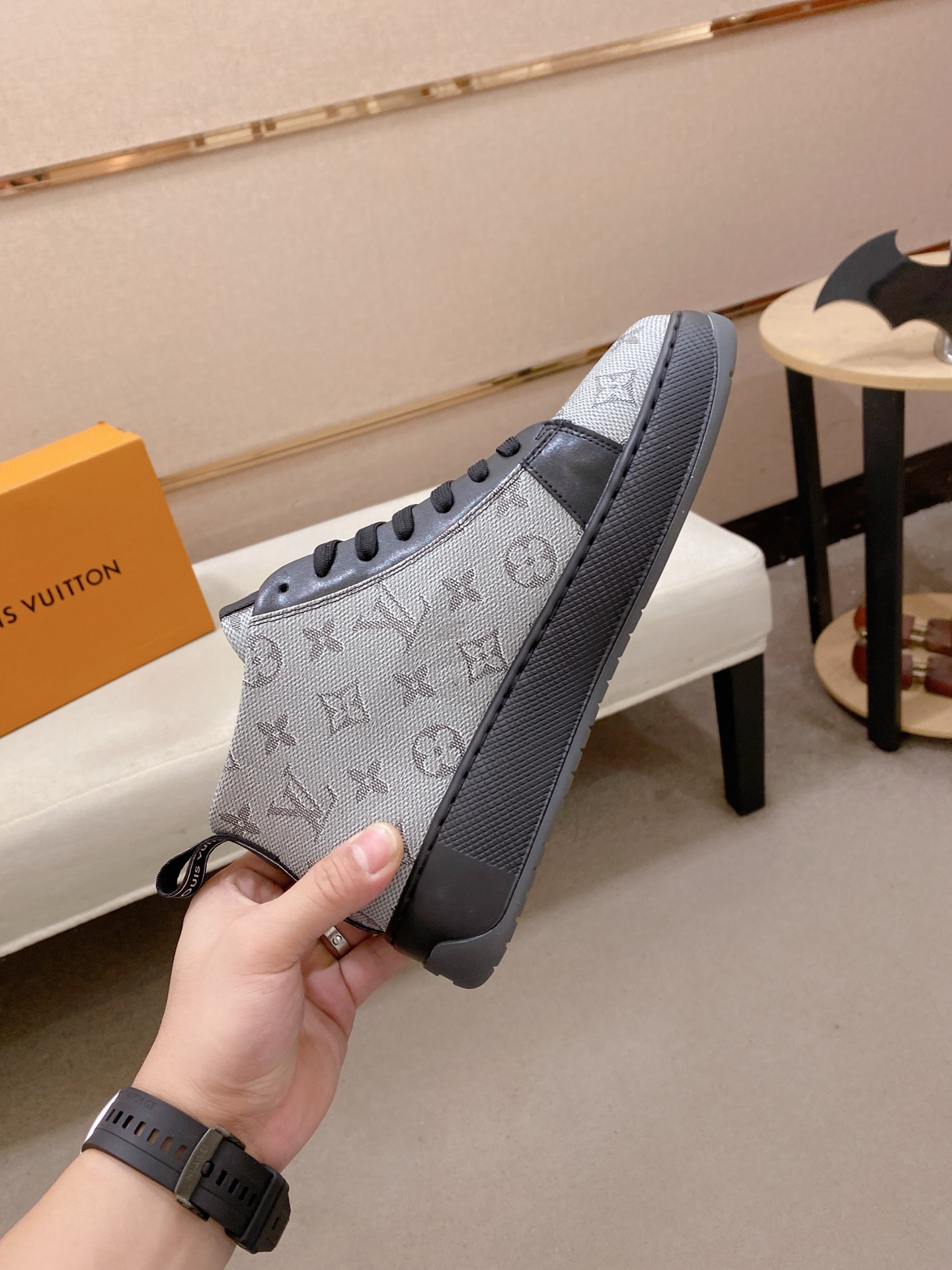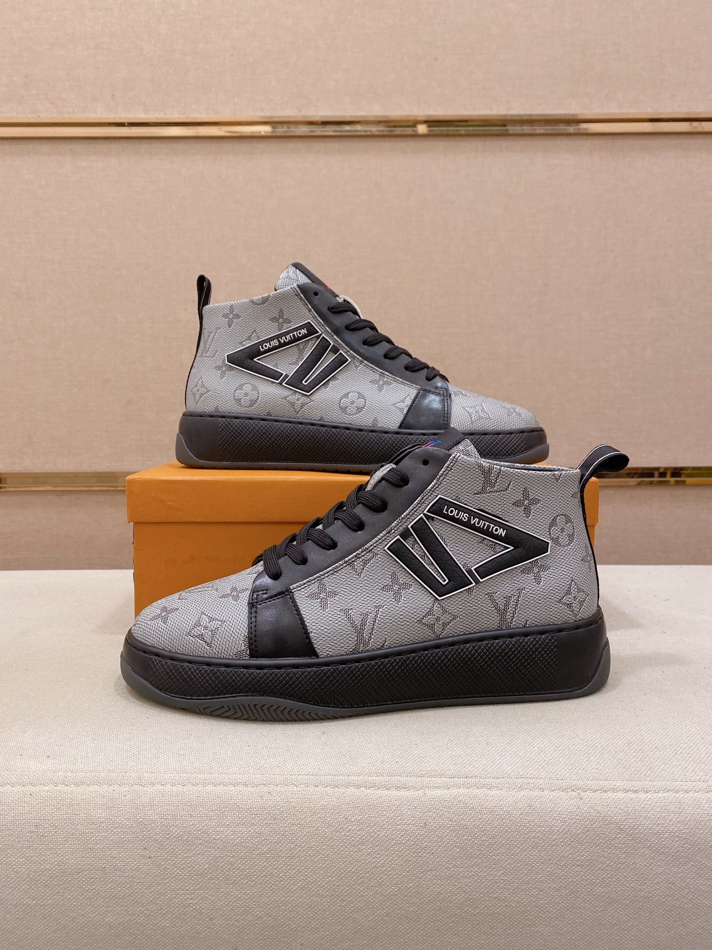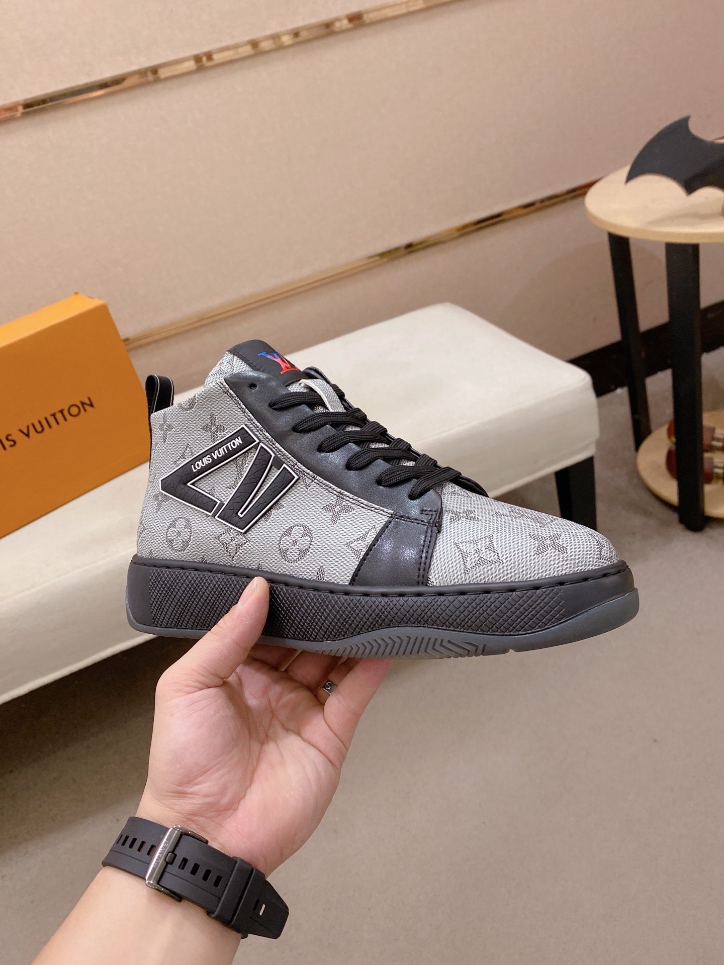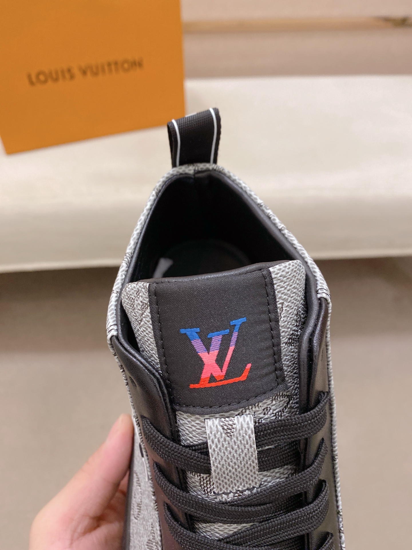 这款鞋子是AAAAA 1:1 质量 (非常棒). 使用了和原版一模一样的材料. 商标部分也保持了和路易威登/Louis Vuitton一样. 图片拍摄是实物鞋子拍摄, 您所收到的实物保证和我们图片一模一样.