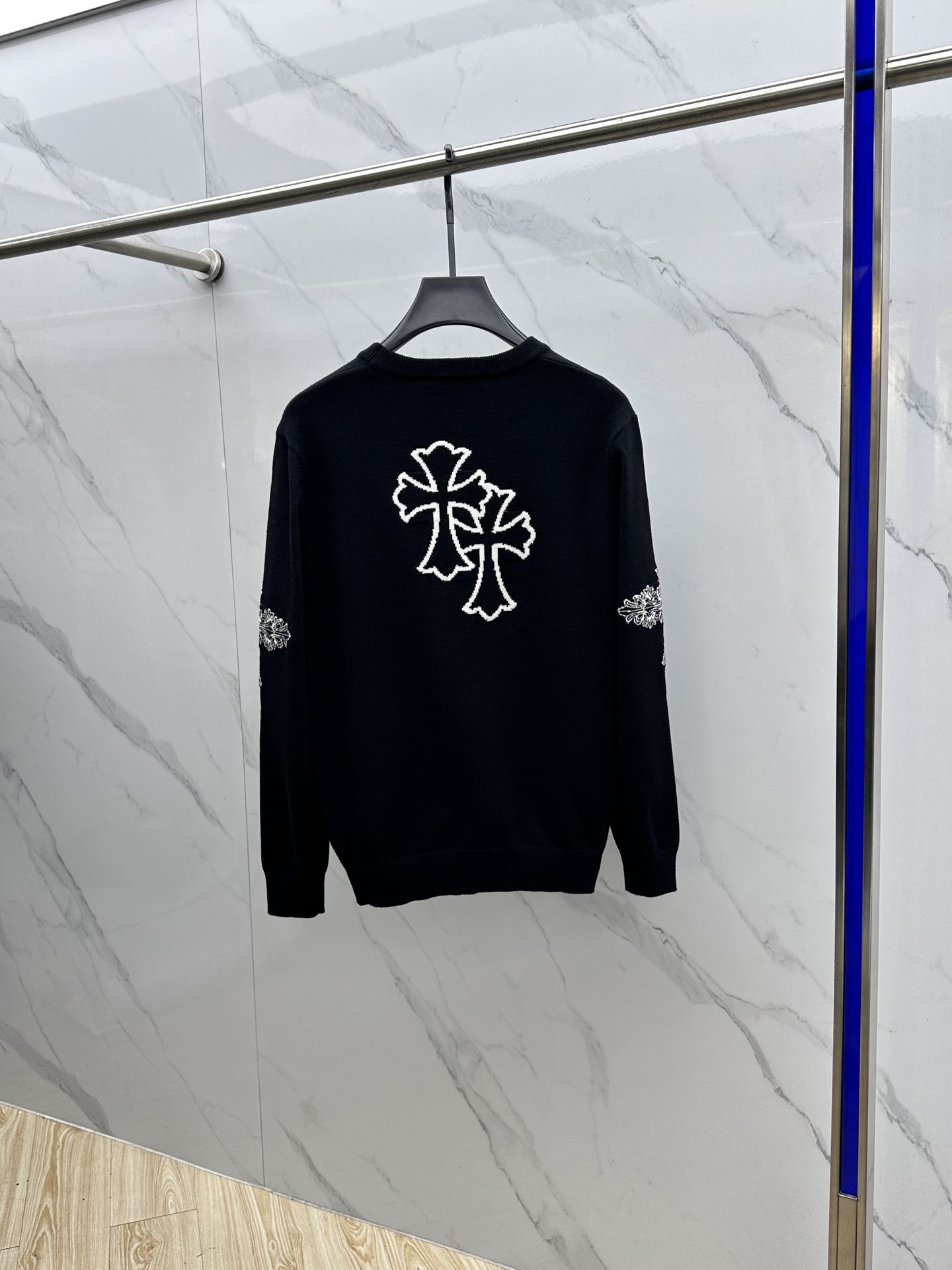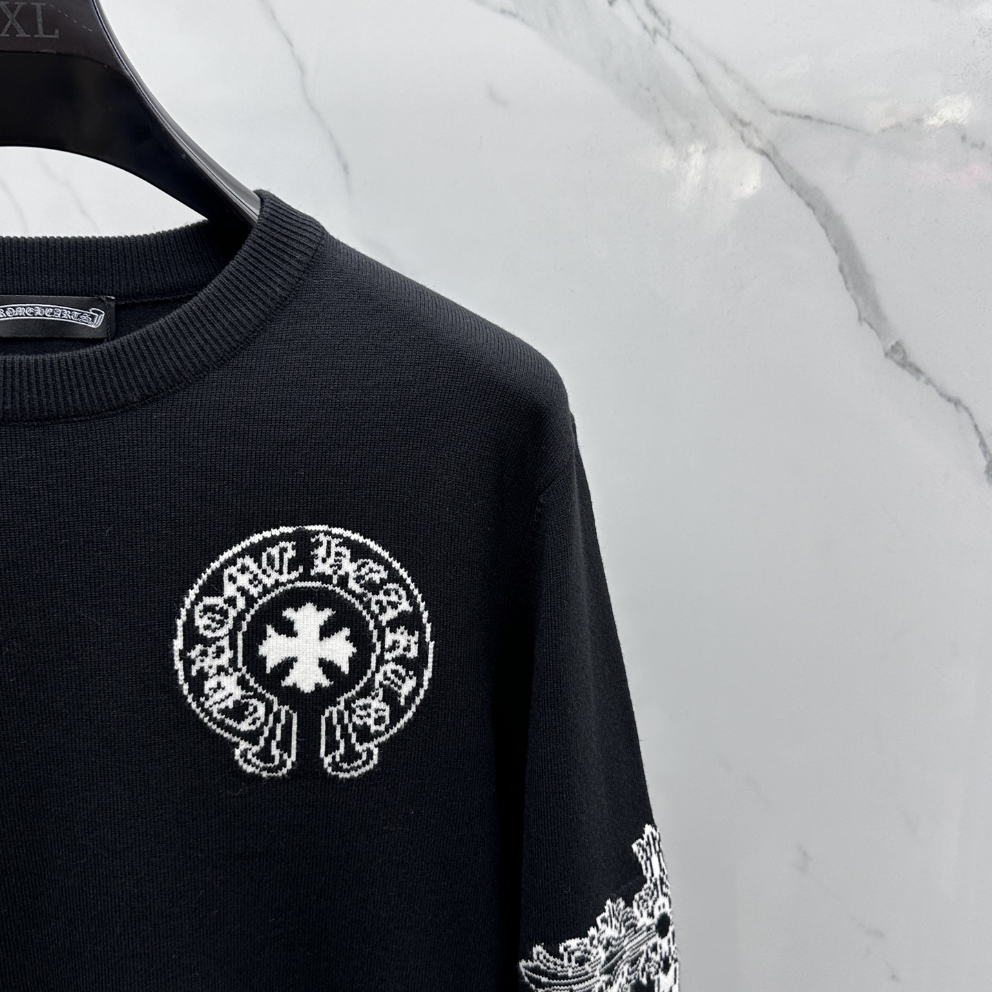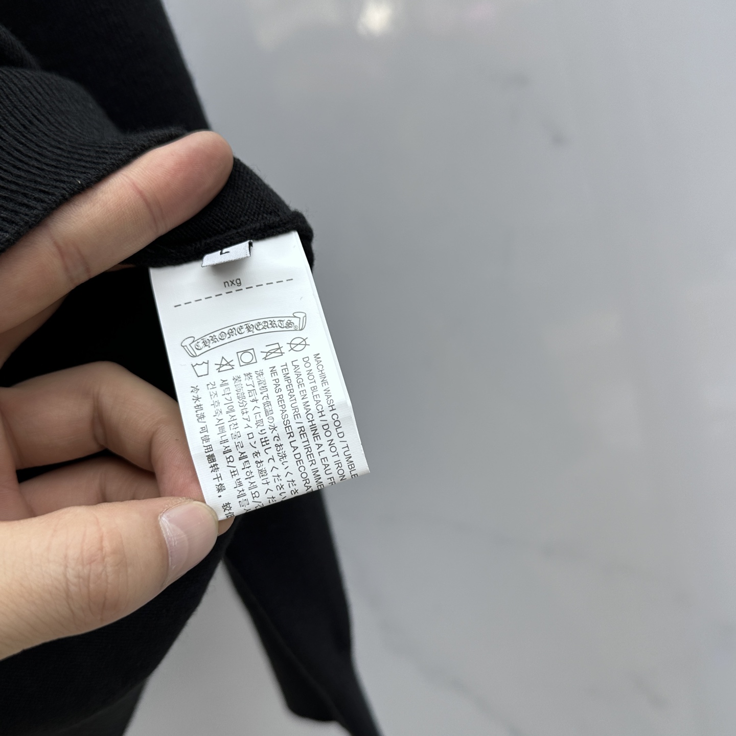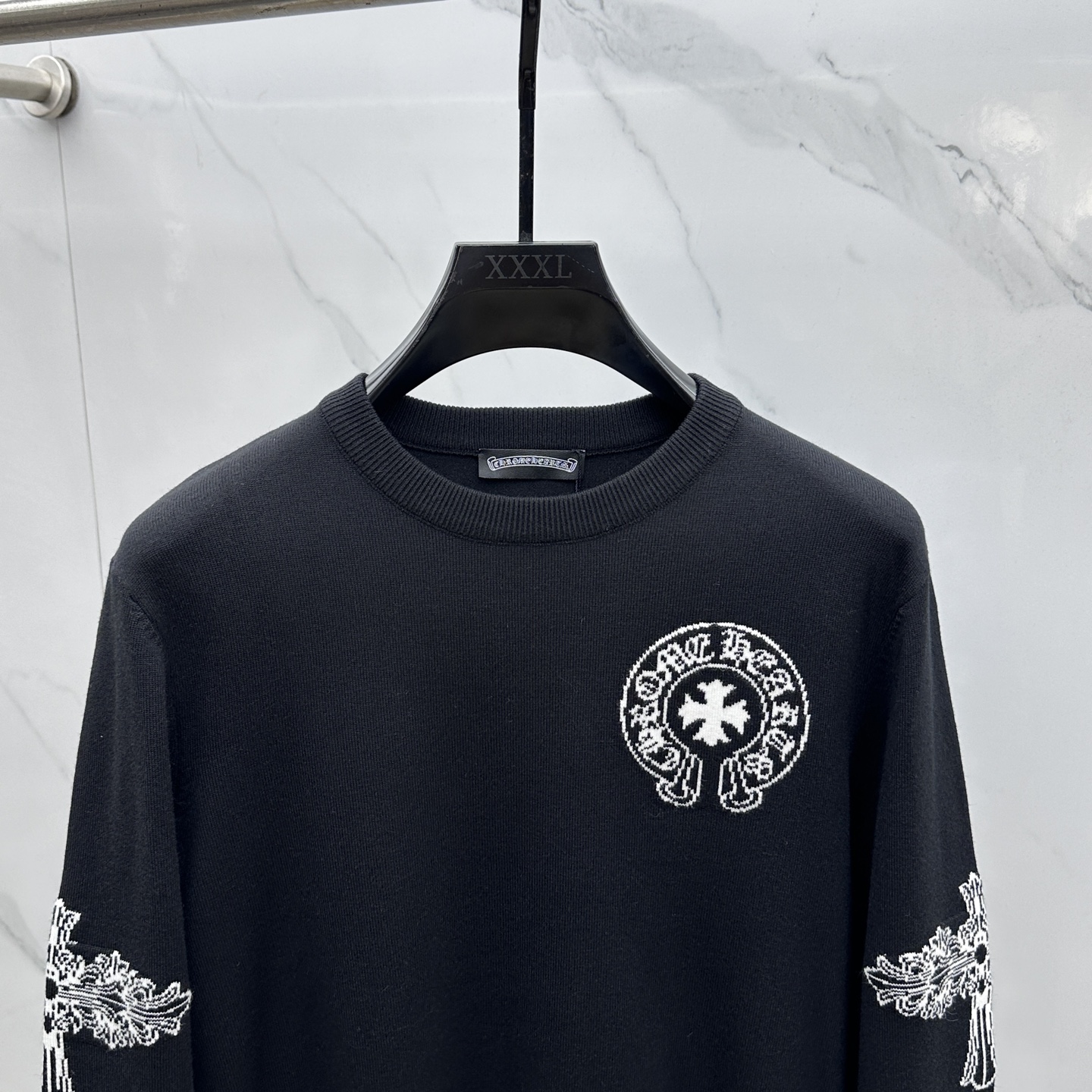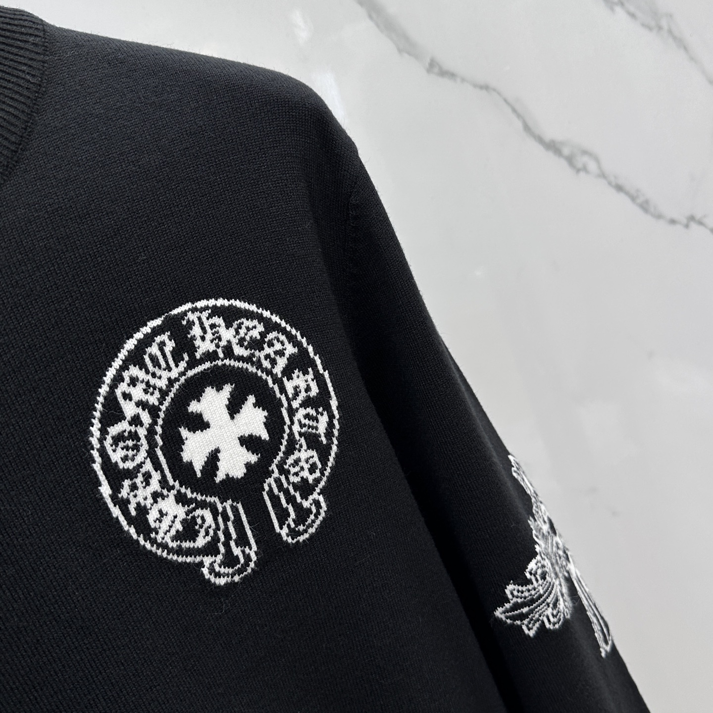 这款衣服是AAAAA 1:1 质量 (非常棒). 使用了和原版一模一样的材料. 商标部分也保持了和克罗心/Chrome Hearts一样. 图片拍摄是实物衣服拍摄, 您所收到的实物保证和我们图片一模一样.