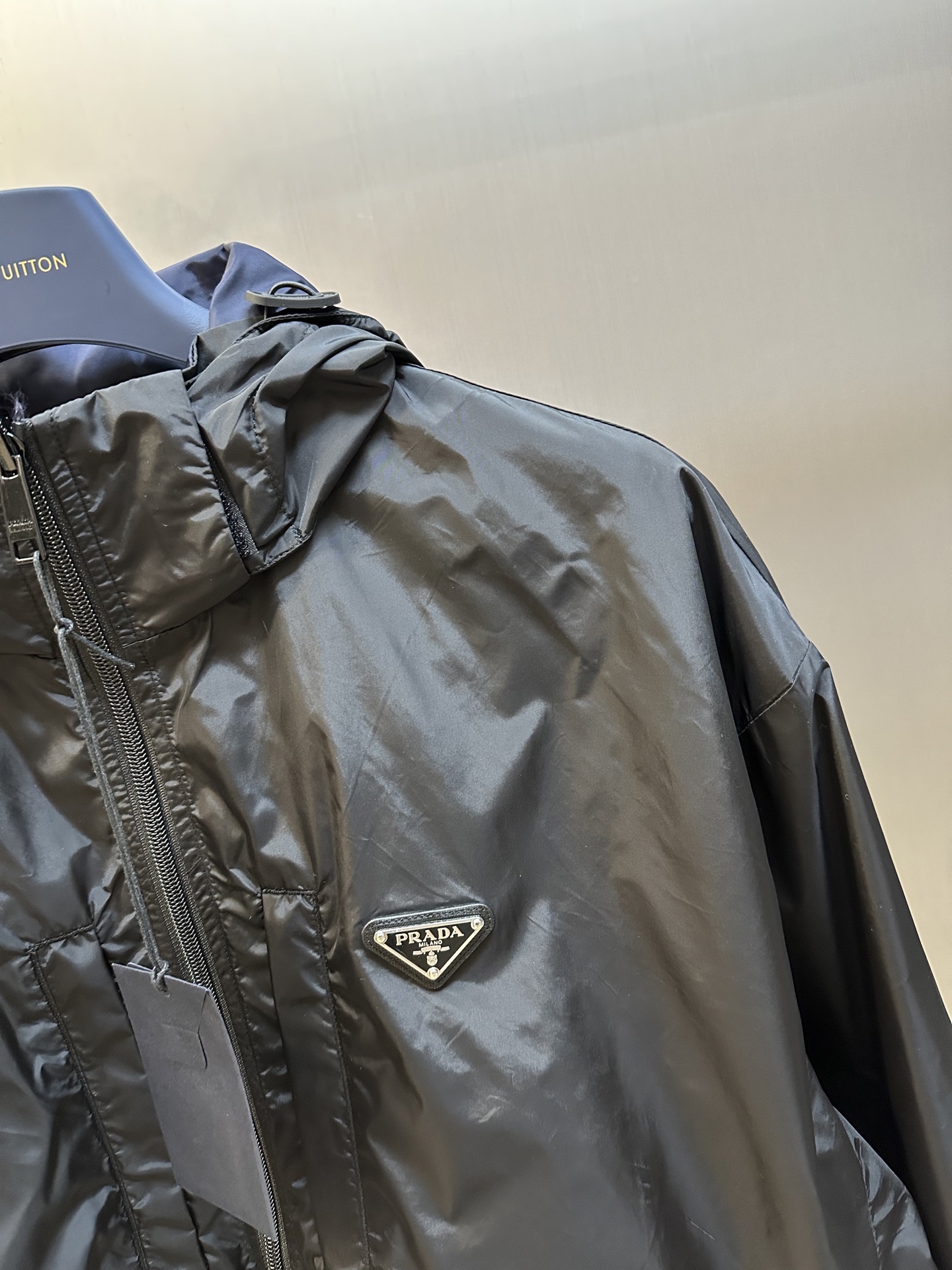 这款衣服是AAAAA 1:1 质量 (非常棒). 使用了和原版一模一样的材料. 商标部分也保持了和普拉达/Prada一样. 图片拍摄是实物衣服拍摄, 您所收到的实物保证和我们图片一模一样.