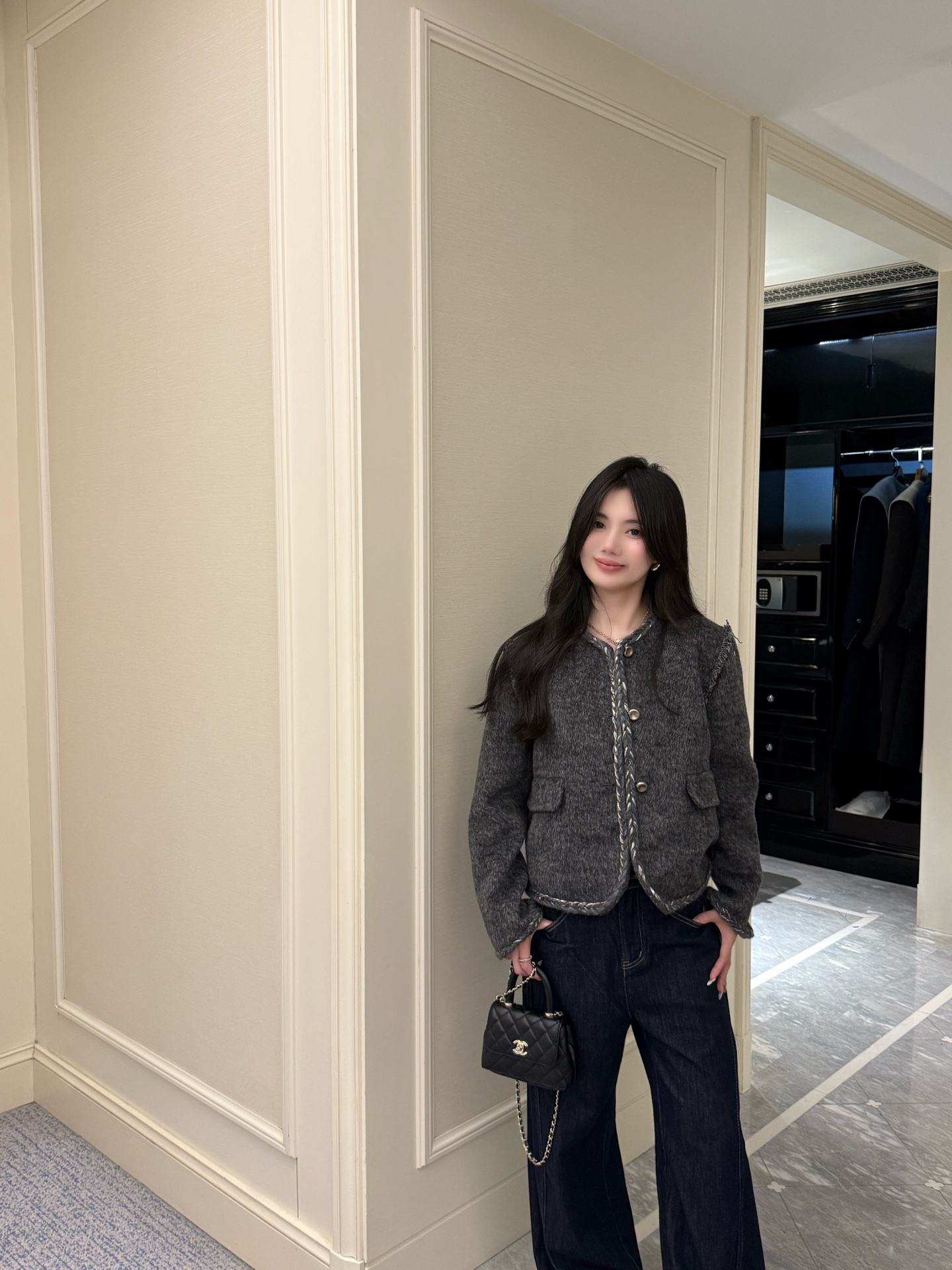 这款衣服是AAAAA 1:1 质量 (非常棒). 使用了和原版一模一样的材料. 商标部分也保持了和香奈儿/Chanel一样. 图片拍摄是实物衣服拍摄, 您所收到的实物保证和我们图片一模一样.