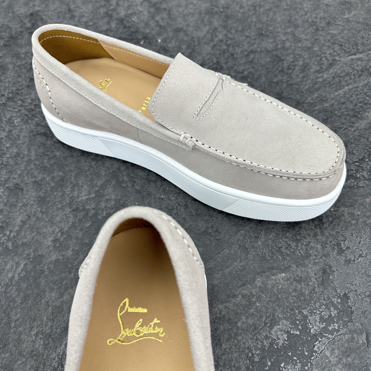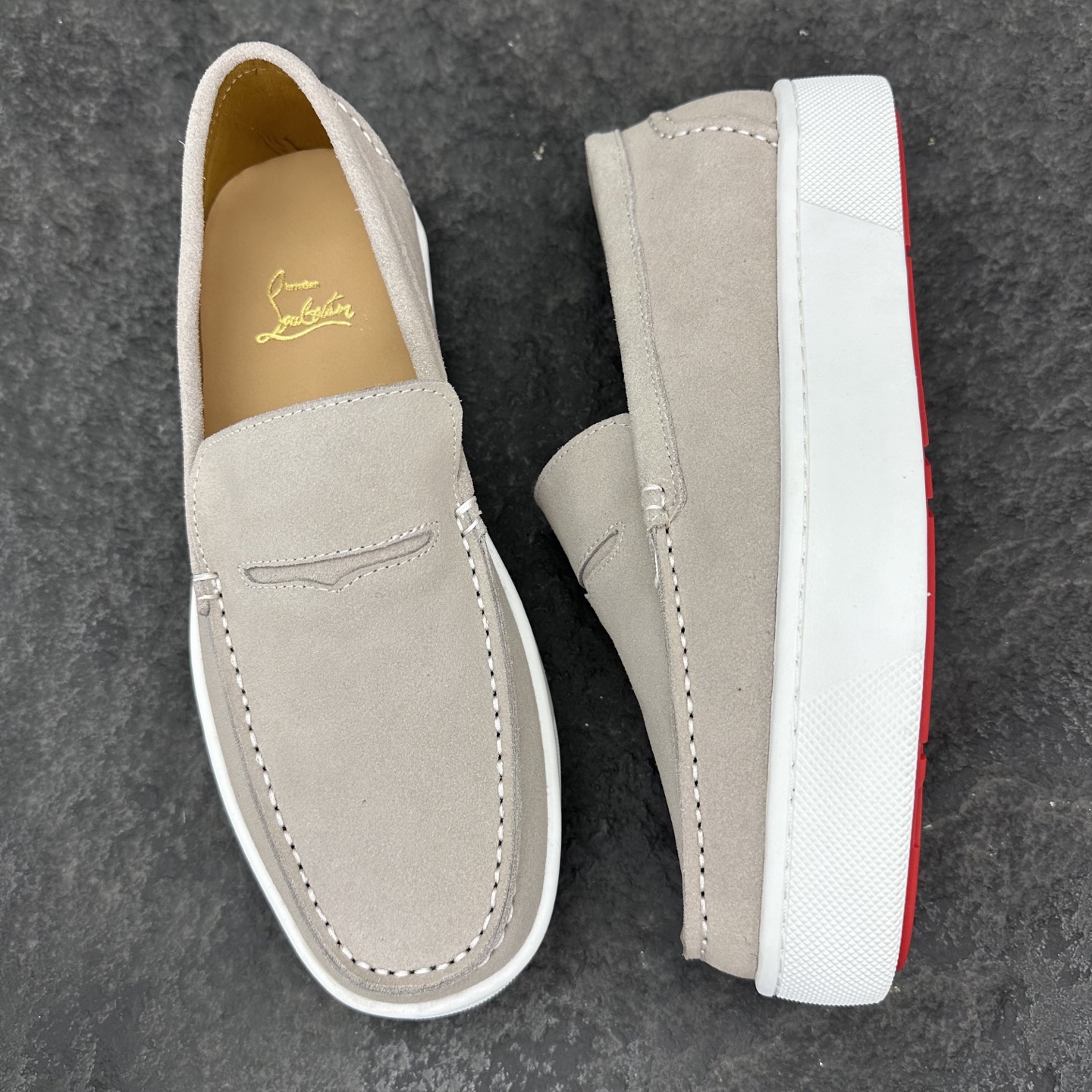 这款鞋子是AAAAA 1:1 质量 (非常棒). 使用了和原版一模一样的材料. 商标部分也保持了和克里斯提·鲁布托/Christian Louboutin一样. 图片拍摄是实物鞋子拍摄, 您所收到的实物保证和我们图片一模一样.