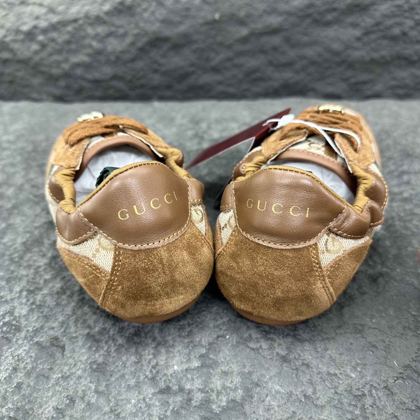 这款鞋子是AAAAA 1:1 质量 (非常棒). 使用了和原版一模一样的材料. 商标部分也保持了和古奇/Gucci一样. 图片拍摄是实物鞋子拍摄, 您所收到的实物保证和我们图片一模一样.