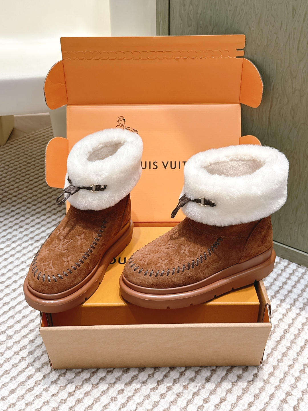 这款鞋子是AAAAA 1:1 质量 (非常棒). 使用了和原版一模一样的材料. 商标部分也保持了和路易威登/Louis Vuitton一样. 图片拍摄是实物鞋子拍摄, 您所收到的实物保证和我们图片一模一样.