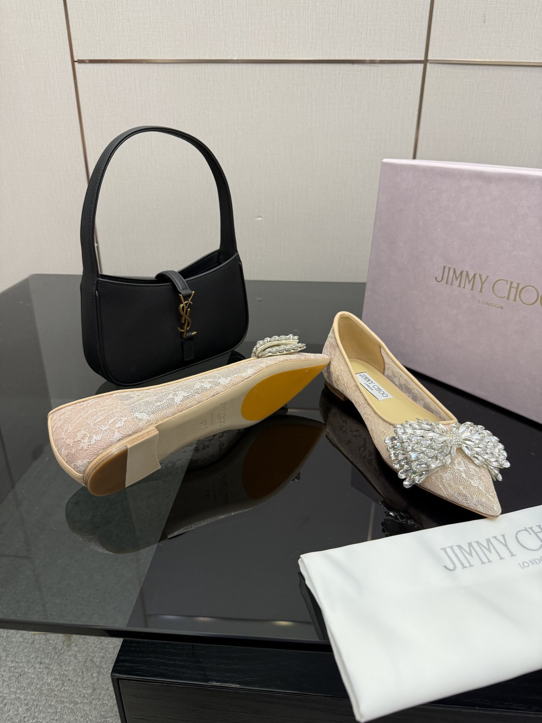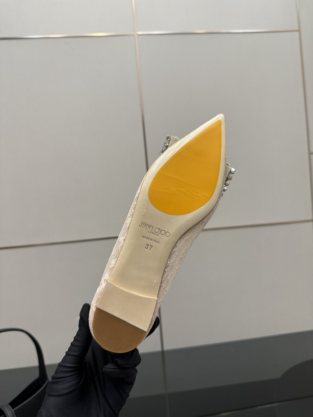 这款鞋子是AAAAA 1:1 质量 (非常棒). 使用了和原版一模一样的材料. 商标部分也保持了和吉米乔/JIMMY CHOO一样. 图片拍摄是实物鞋子拍摄, 您所收到的实物保证和我们图片一模一样.
