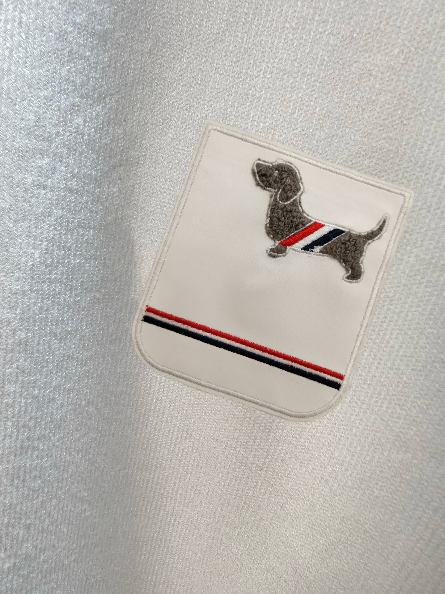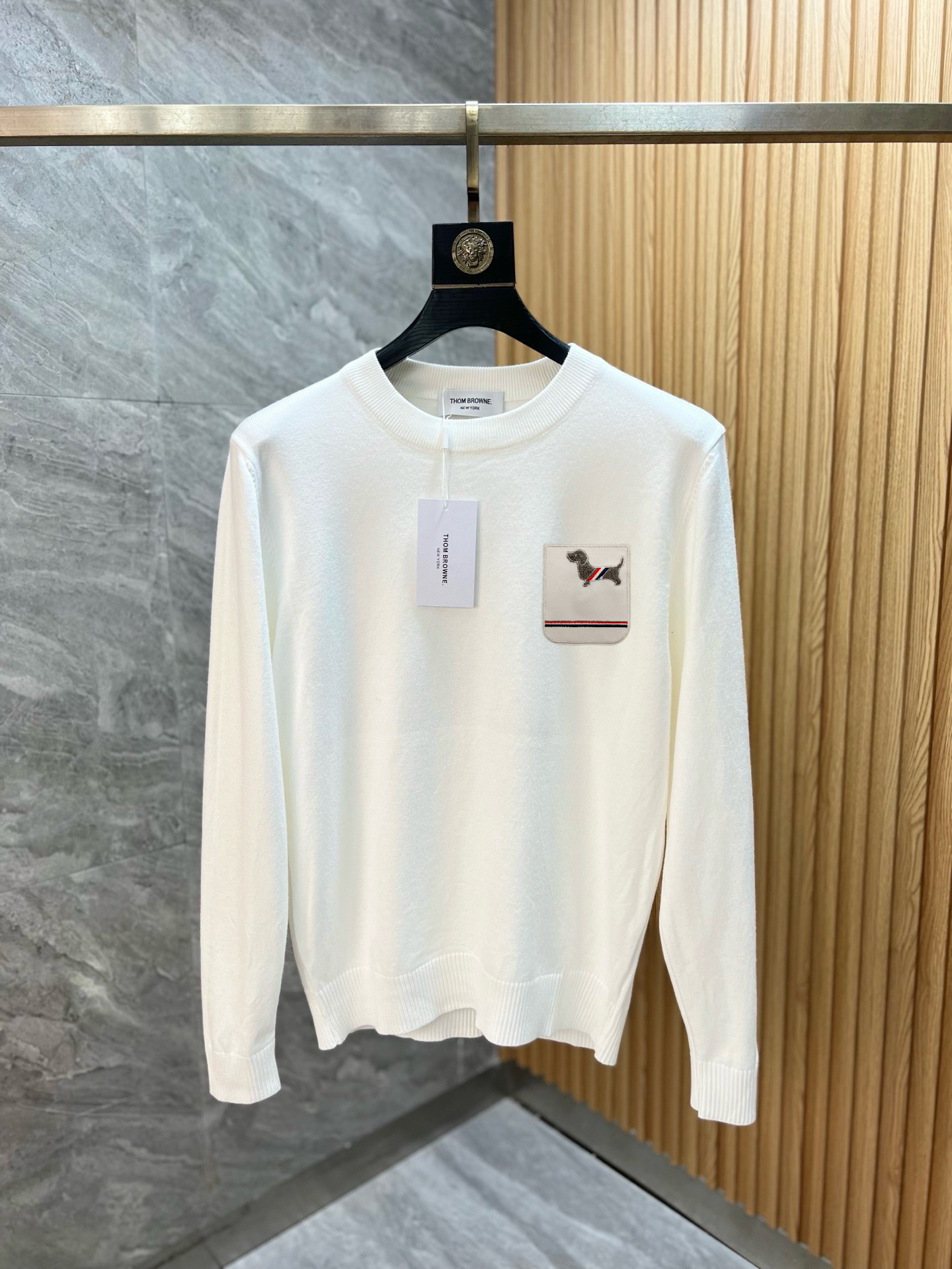 这款衣服是AAAAA 1:1 质量 (非常棒). 使用了和原版一模一样的材料. 商标部分也保持了和汤姆布朗/Thom Browne一样. 图片拍摄是实物衣服拍摄, 您所收到的实物保证和我们图片一模一样.