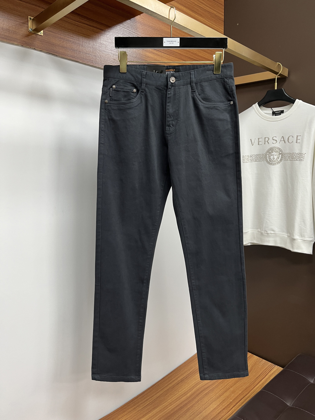 这款衣服是AAAAA 1:1 质量 (非常棒). 使用了和原版一模一样的材料. 商标部分也保持了和杰尼亚/Zegna一样. 图片拍摄是实物衣服拍摄, 您所收到的实物保证和我们图片一模一样.