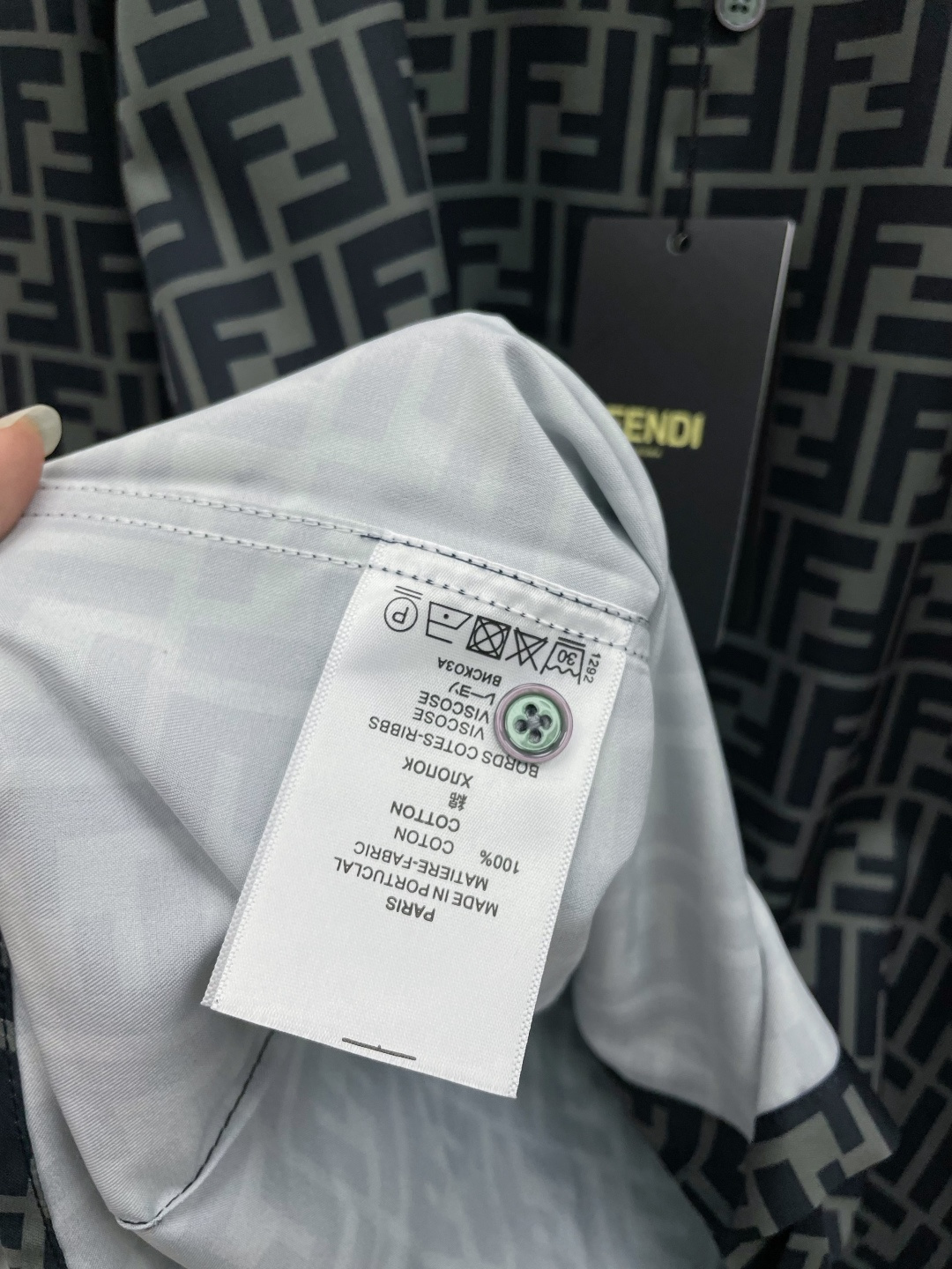 这款衣服是AAAAA 1:1 质量 (非常棒). 使用了和原版一模一样的材料. 商标部分也保持了和芬迪/Fendi一样. 图片拍摄是实物衣服拍摄, 您所收到的实物保证和我们图片一模一样.