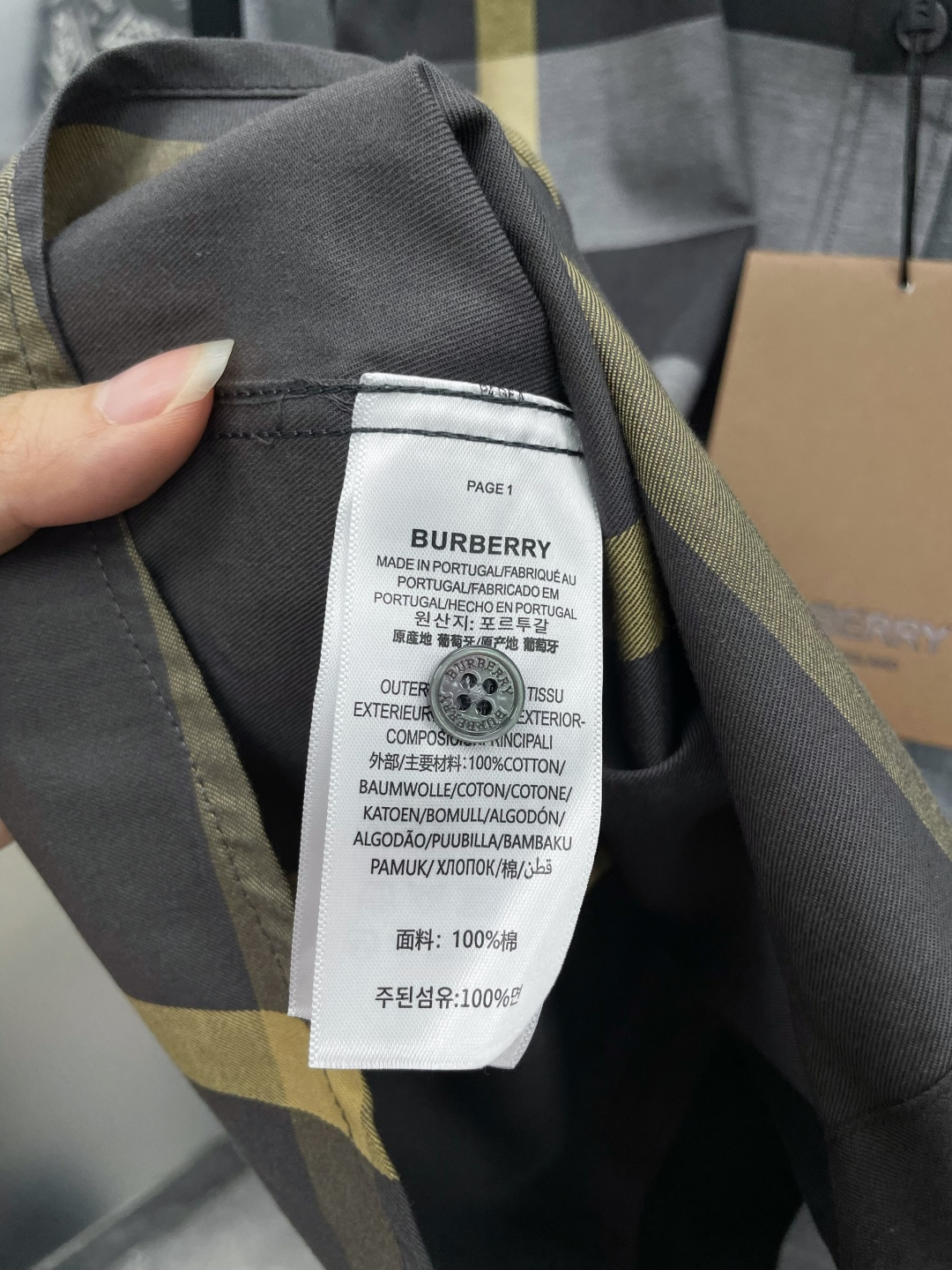 这款衣服是AAAAA 1:1 质量 (非常棒). 使用了和原版一模一样的材料. 商标部分也保持了和巴宝莉/Burberry一样. 图片拍摄是实物衣服拍摄, 您所收到的实物保证和我们图片一模一样.