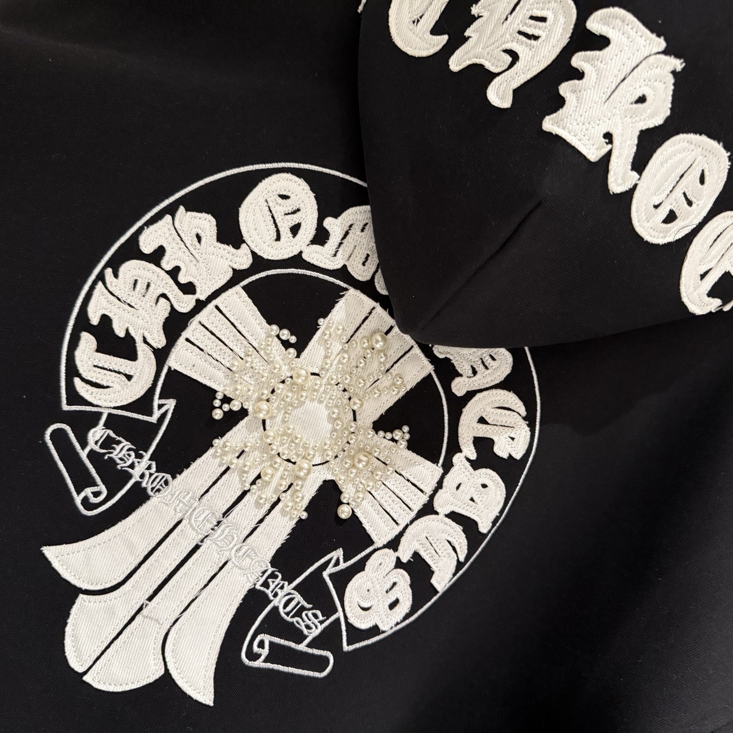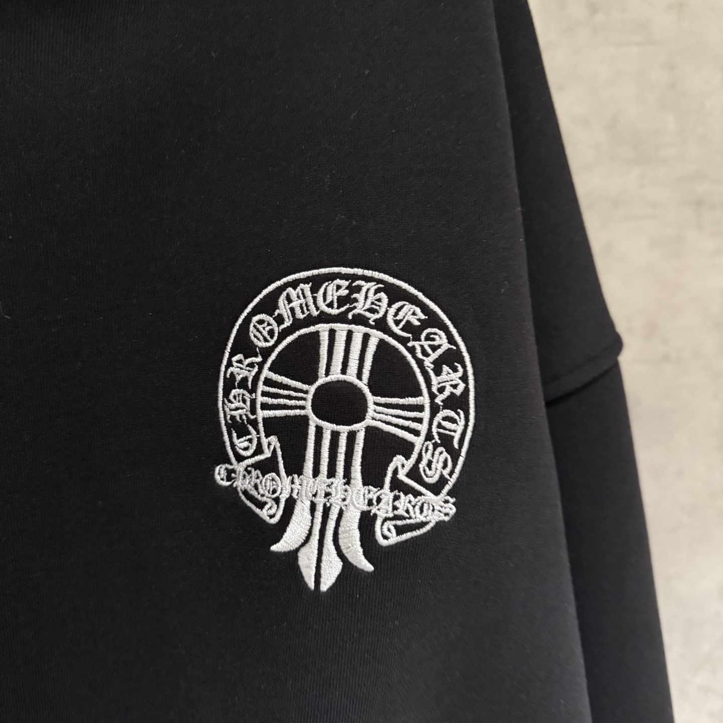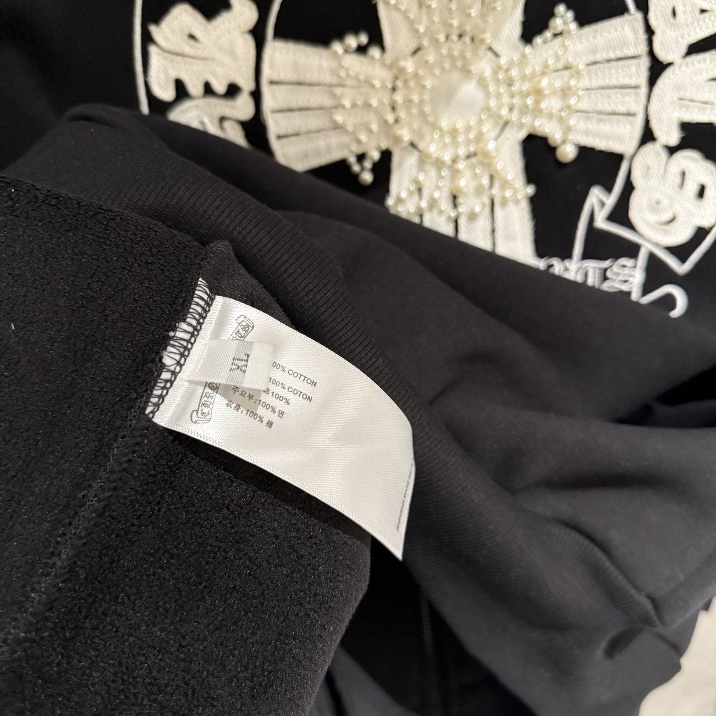 这款衣服是AAAAA 1:1 质量 (非常棒). 使用了和原版一模一样的材料. 商标部分也保持了和克罗心/Chrome Hearts一样. 图片拍摄是实物衣服拍摄, 您所收到的实物保证和我们图片一模一样.