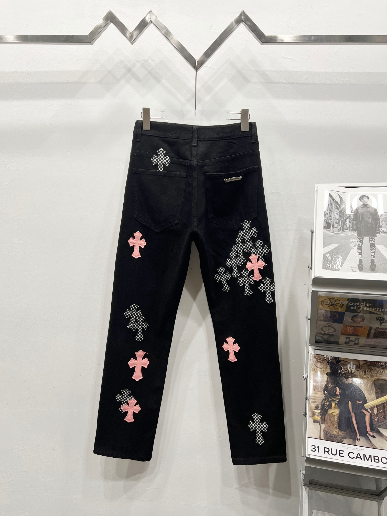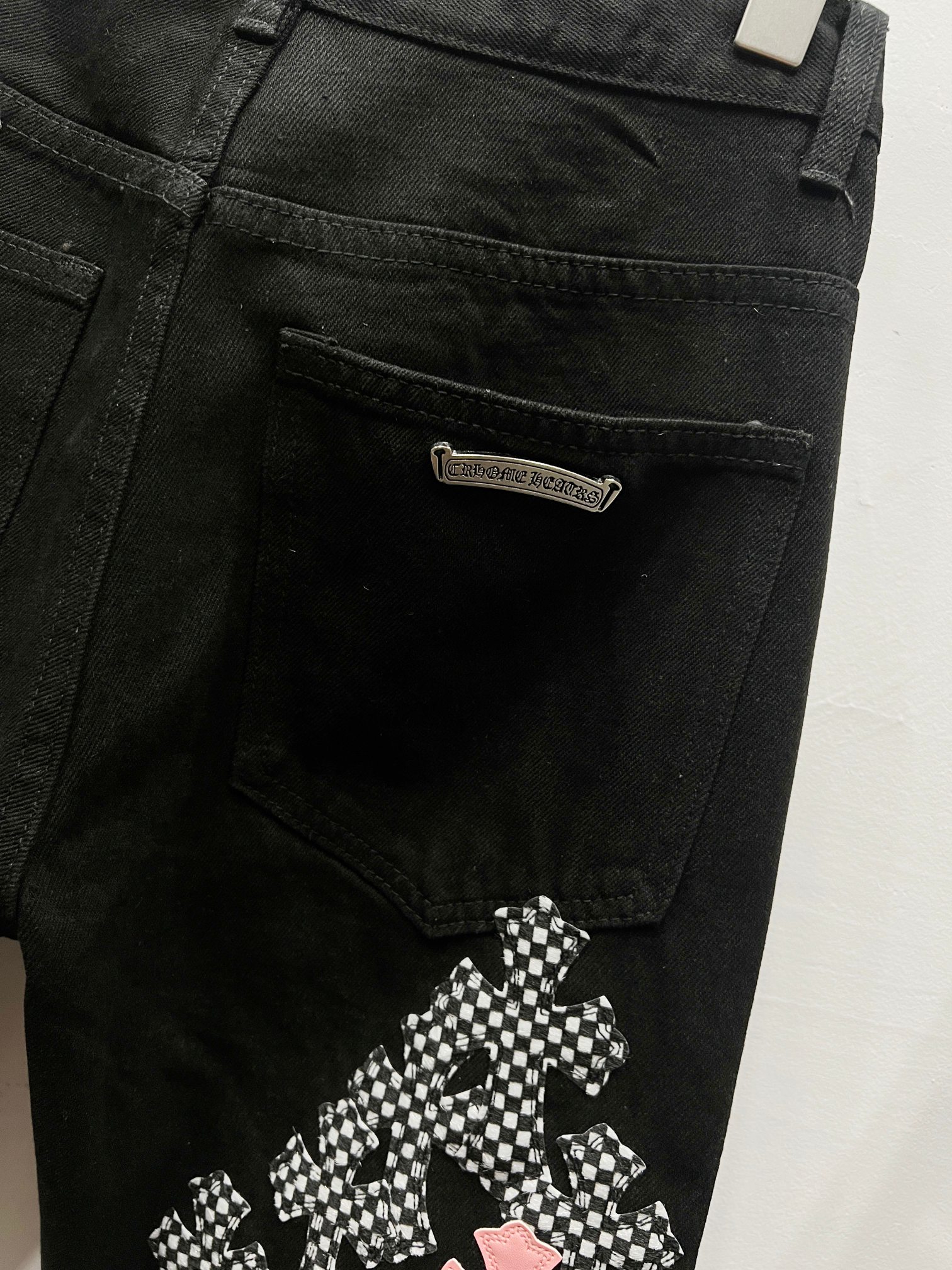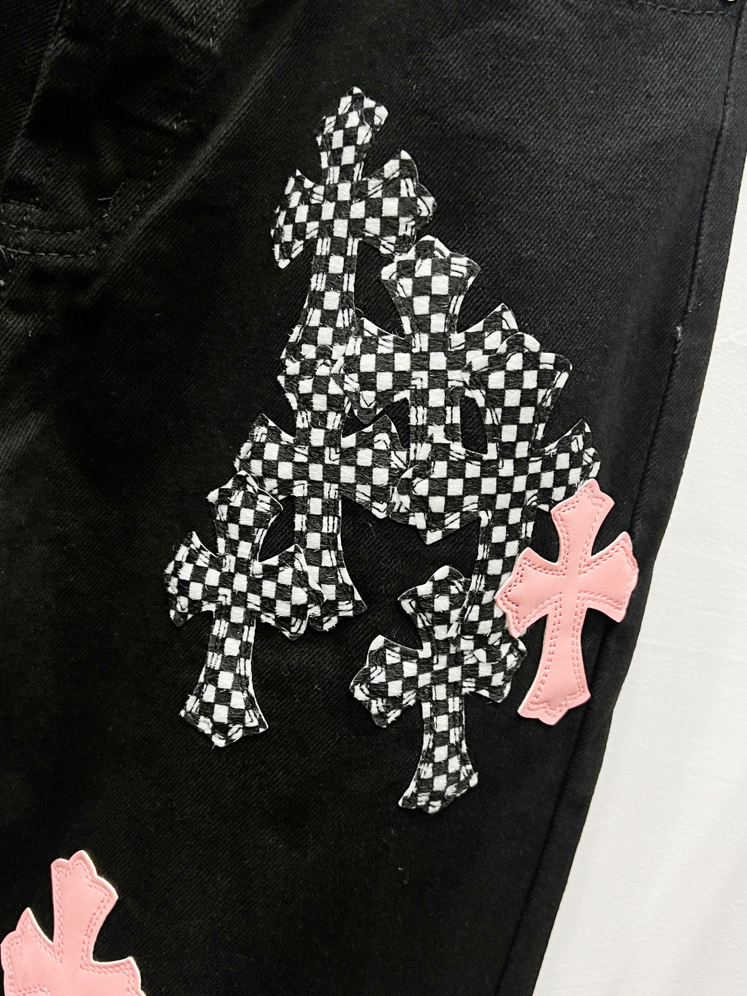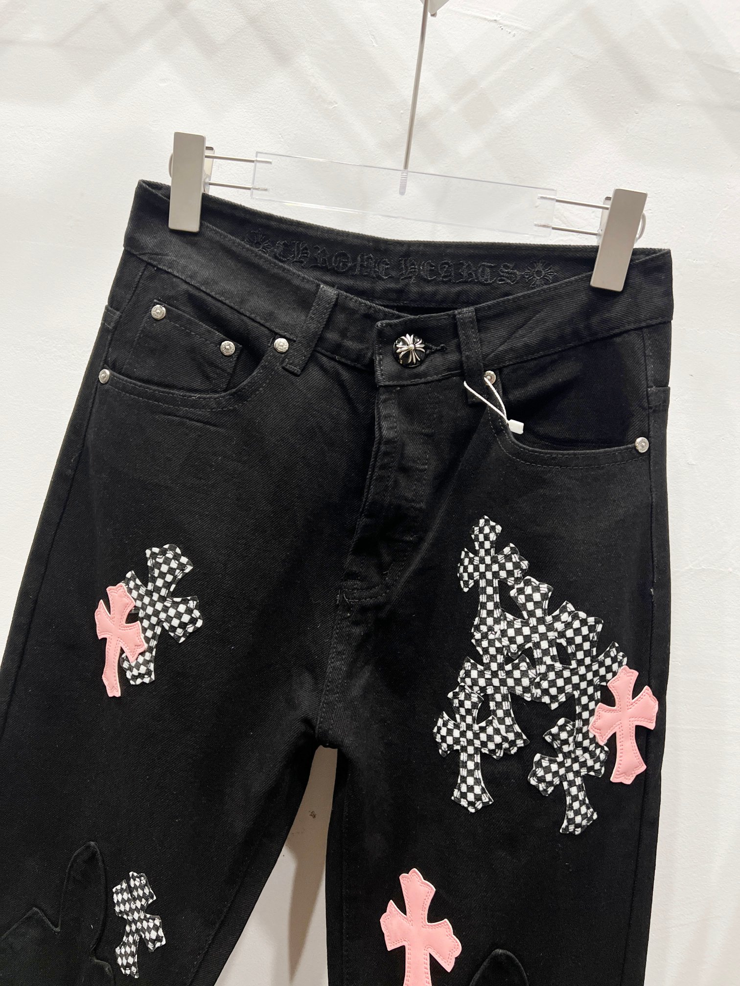 这款衣服是AAAAA 1:1 质量 (非常棒). 使用了和原版一模一样的材料. 商标部分也保持了和克罗心/Chrome Hearts一样. 图片拍摄是实物衣服拍摄, 您所收到的实物保证和我们图片一模一样.