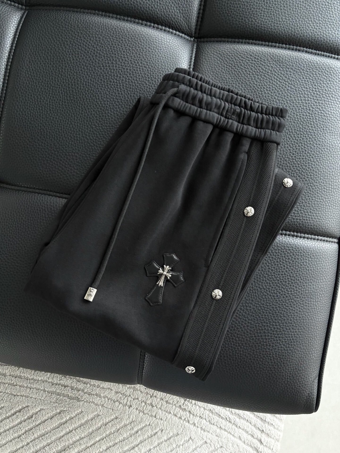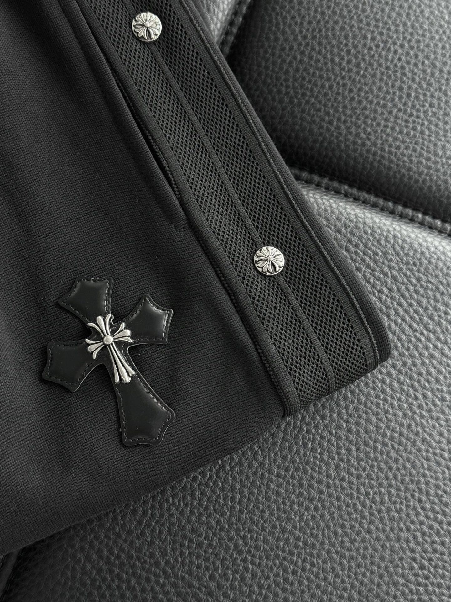 这款衣服是AAAAA 1:1 质量 (非常棒). 使用了和原版一模一样的材料. 商标部分也保持了和克罗心/Chrome Hearts一样. 图片拍摄是实物衣服拍摄, 您所收到的实物保证和我们图片一模一样.