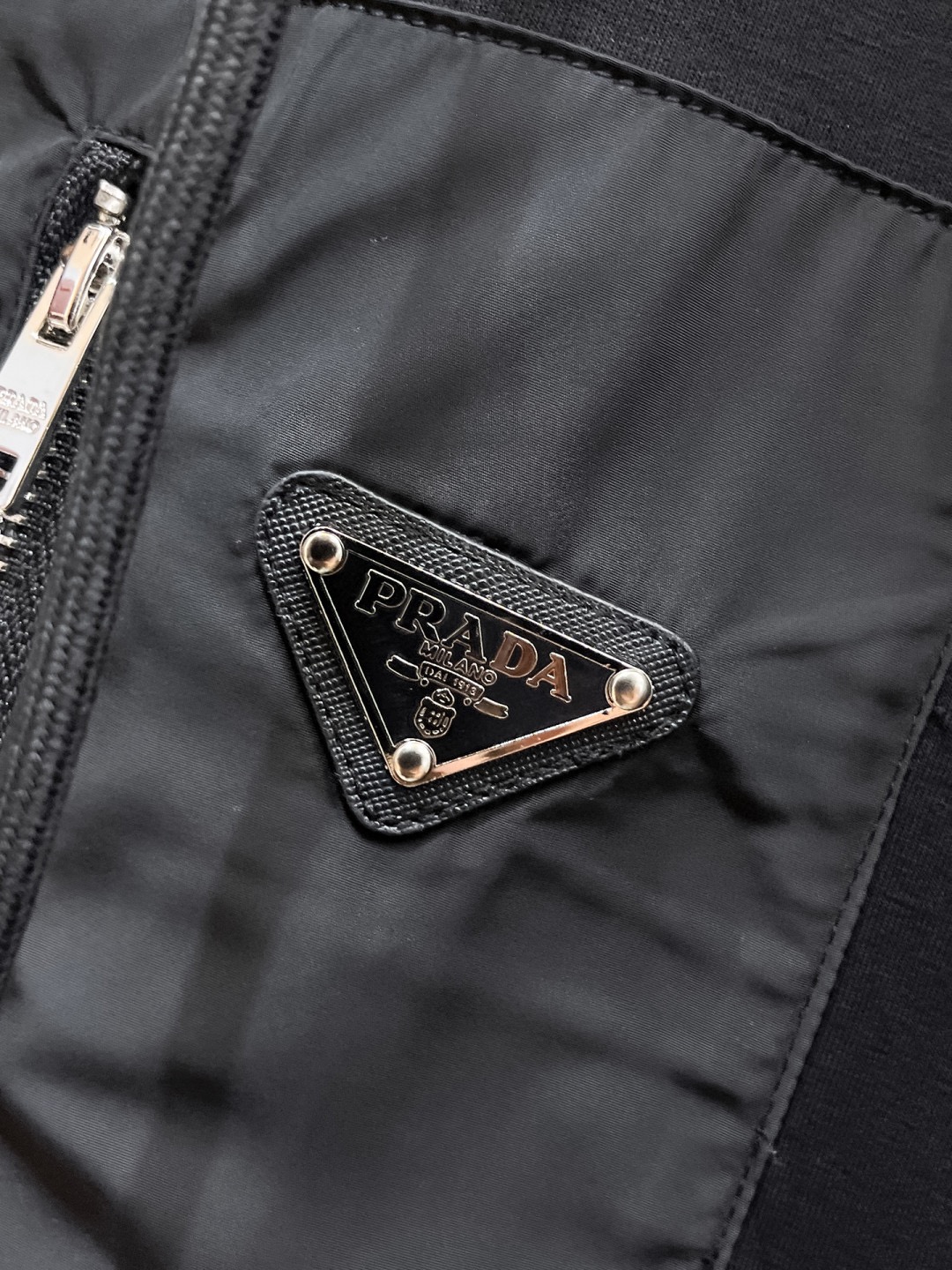 这款衣服是AAAAA 1:1 质量 (非常棒). 使用了和原版一模一样的材料. 商标部分也保持了和普拉达/Prada一样. 图片拍摄是实物衣服拍摄, 您所收到的实物保证和我们图片一模一样.