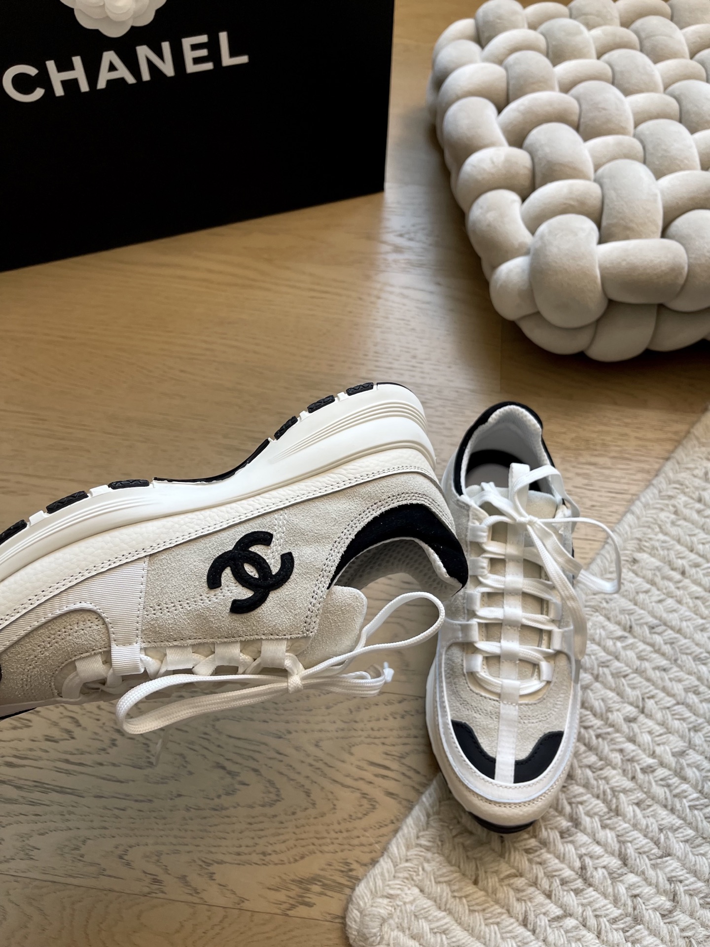 这款鞋子是AAAAA 1:1 质量 (非常棒). 使用了和原版一模一样的材料. 商标部分也保持了和香奈儿/Chanel一样. 图片拍摄是实物鞋子拍摄, 您所收到的实物保证和我们图片一模一样.