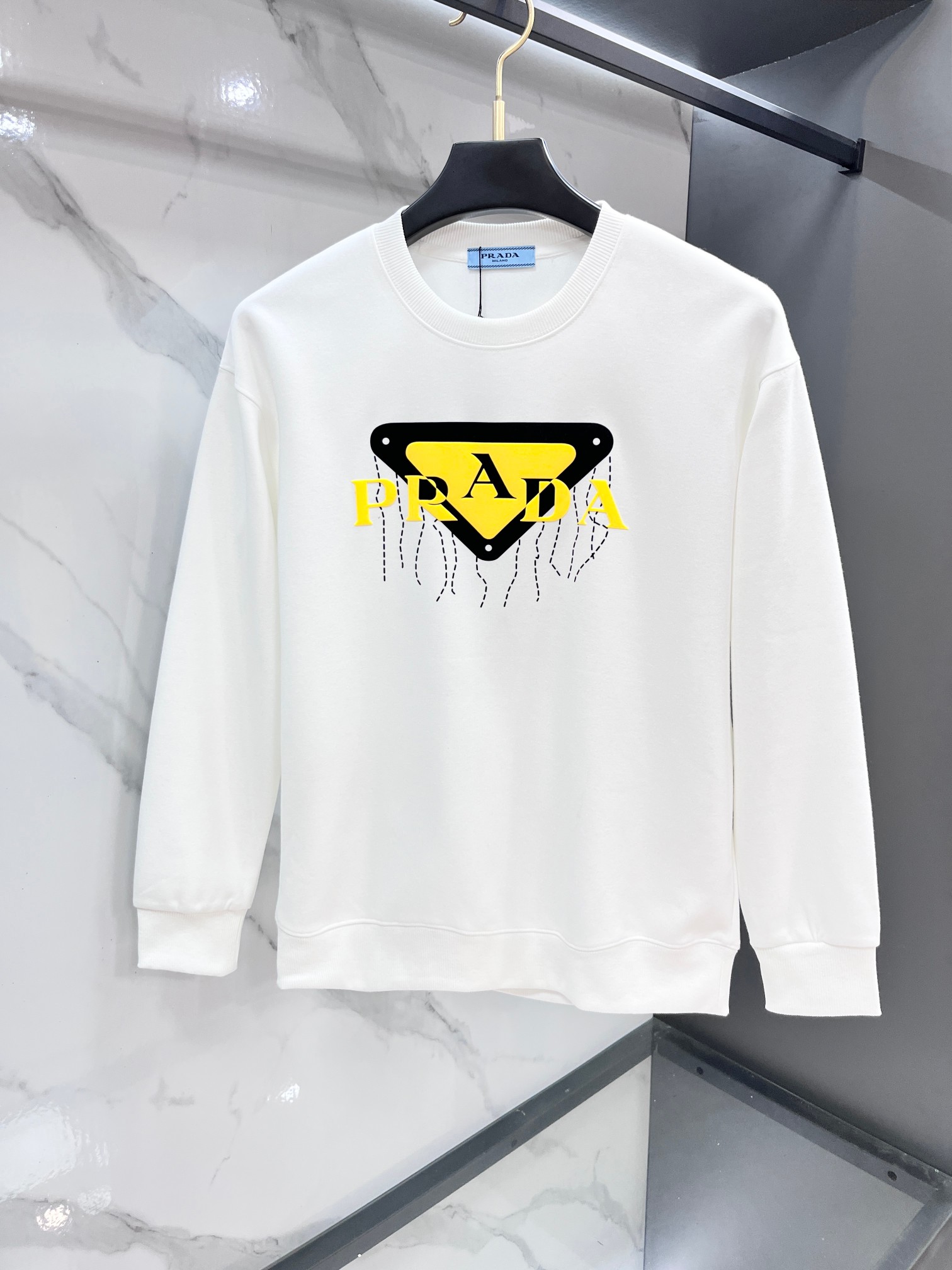 这款衣服是AAAAA 1:1 质量 (非常棒). 使用了和原版一模一样的材料. 商标部分也保持了和普拉达/Prada一样. 图片拍摄是实物衣服拍摄, 您所收到的实物保证和我们图片一模一样.