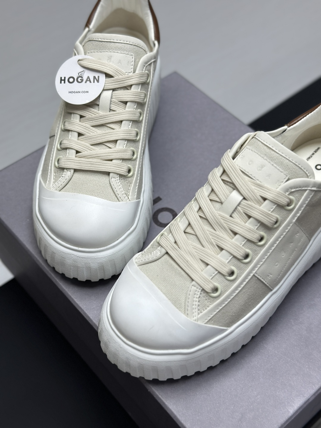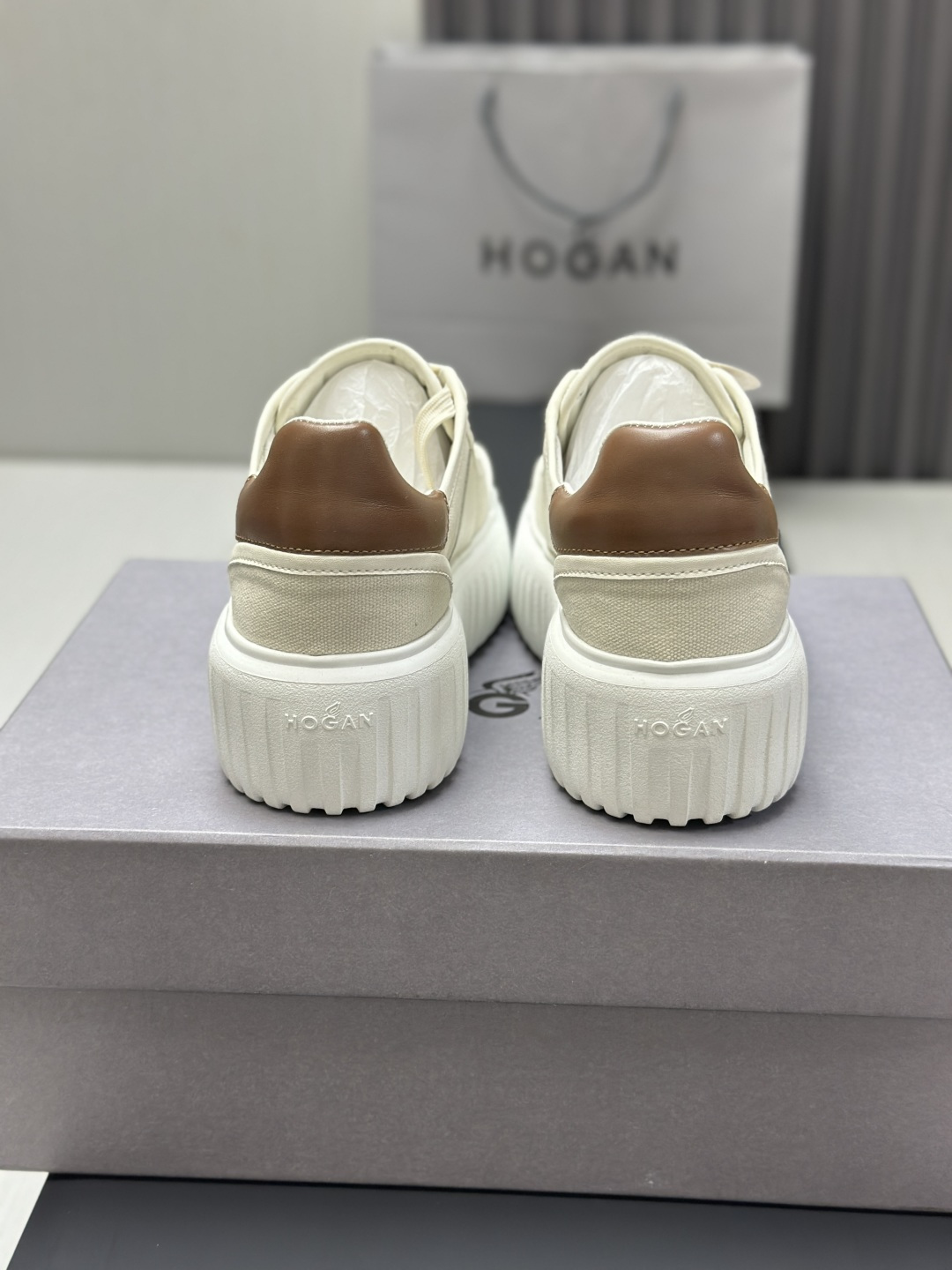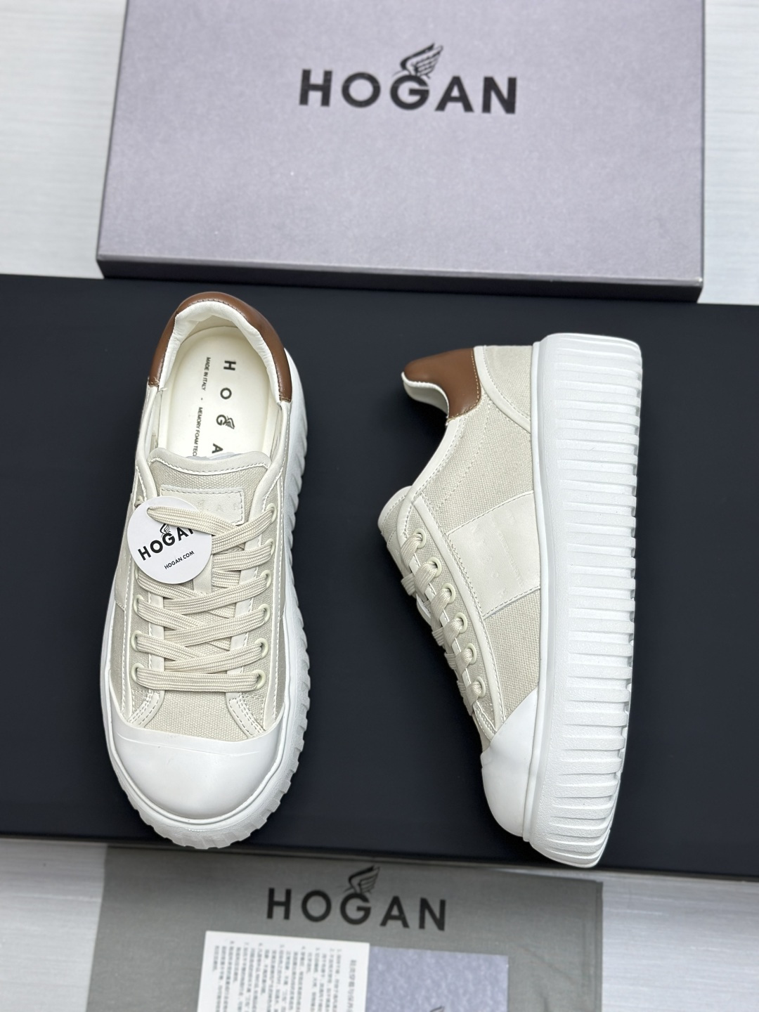 这款鞋子是AAAAA 1:1 质量 (非常棒). 使用了和原版一模一样的材料. 商标部分也保持了和Hogan一样. 图片拍摄是实物鞋子拍摄, 您所收到的实物保证和我们图片一模一样.