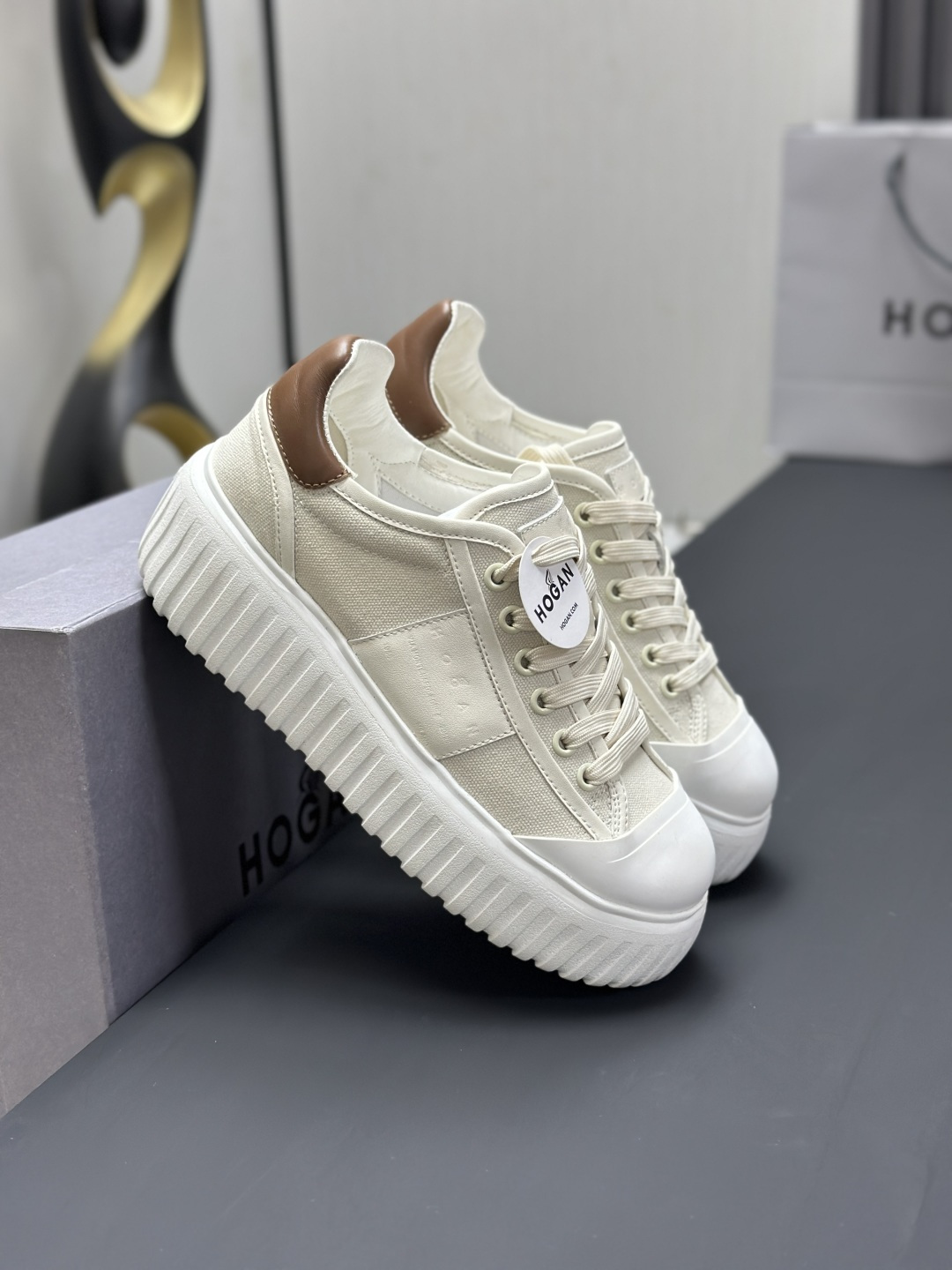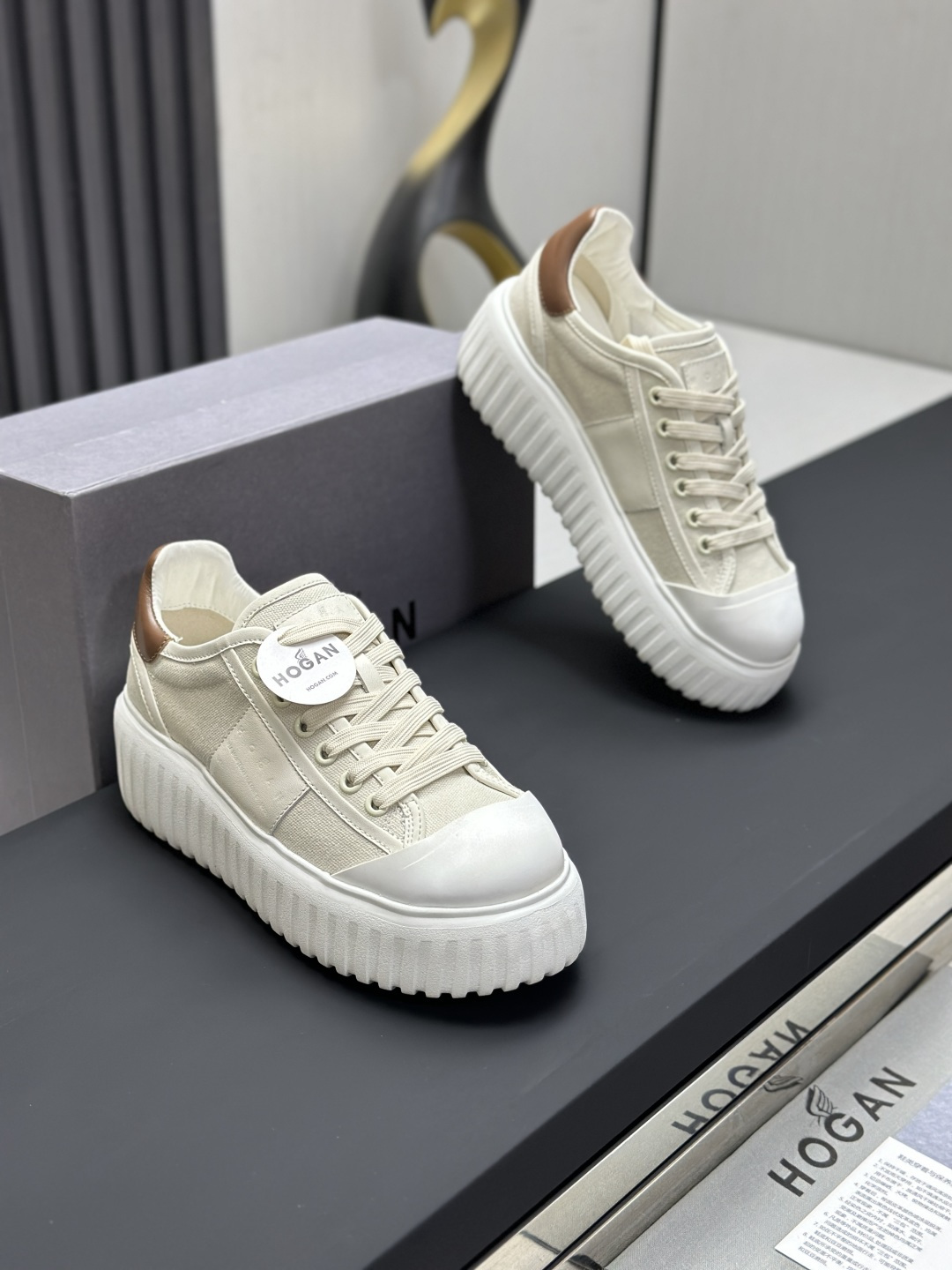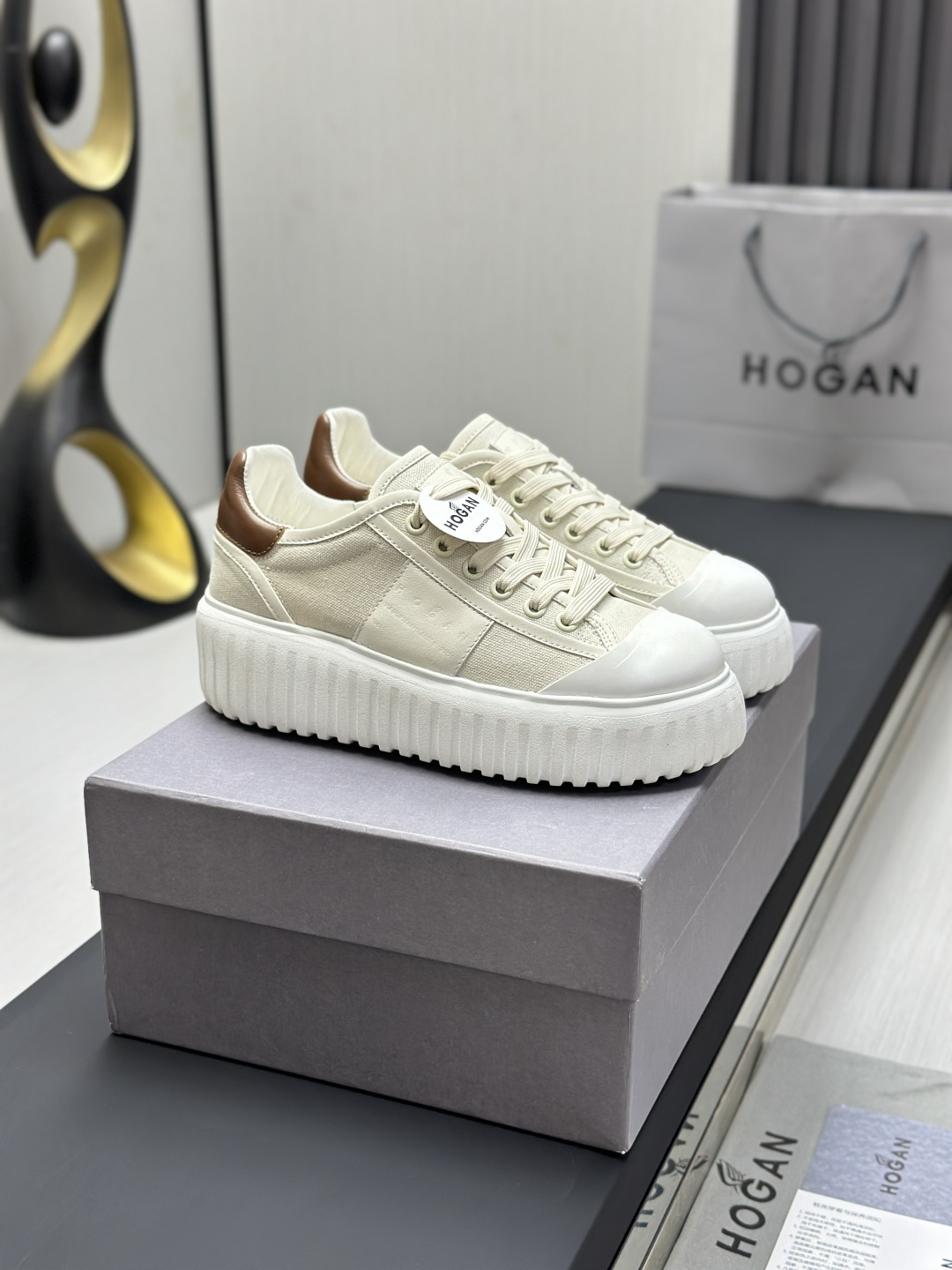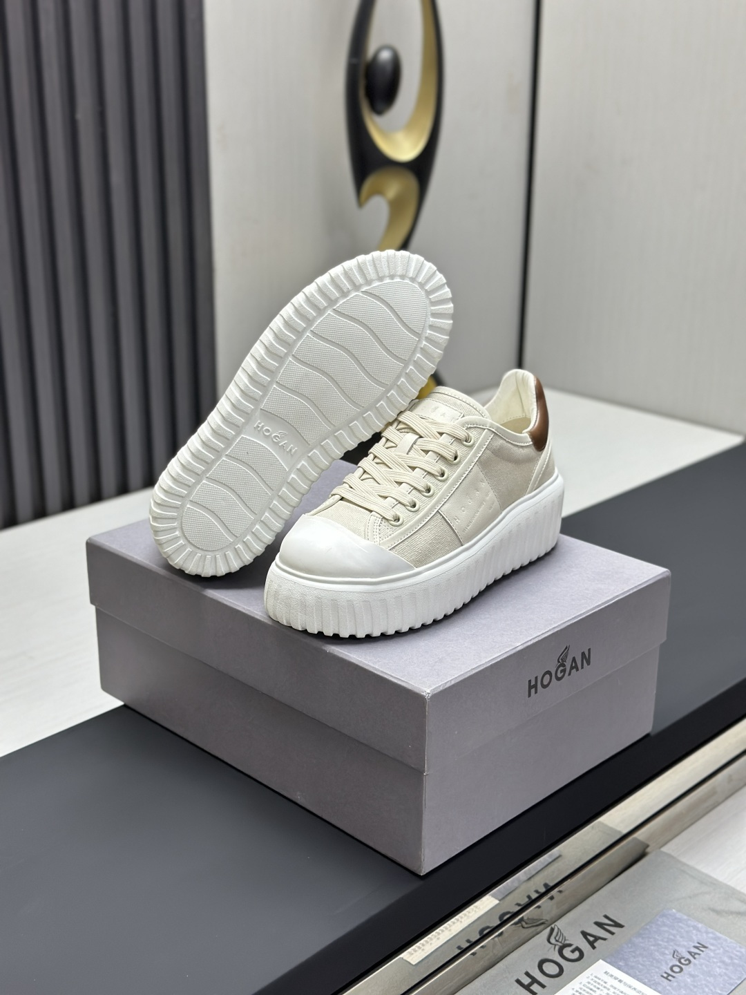 这款鞋子是AAAAA 1:1 质量 (非常棒). 使用了和原版一模一样的材料. 商标部分也保持了和Hogan一样. 图片拍摄是实物鞋子拍摄, 您所收到的实物保证和我们图片一模一样.
