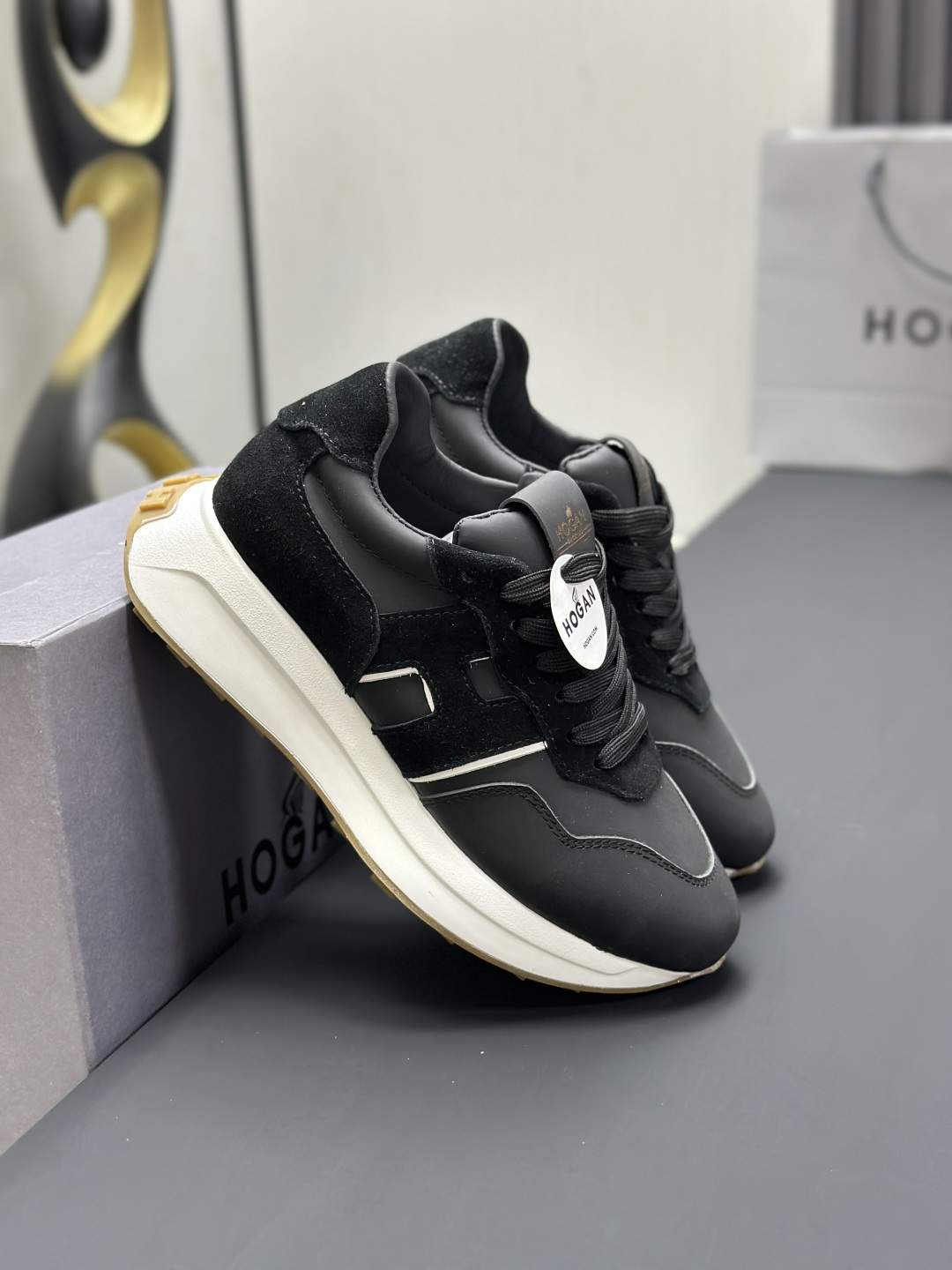 这款鞋子是AAAAA 1:1 质量 (非常棒). 使用了和原版一模一样的材料. 商标部分也保持了和Hogan一样. 图片拍摄是实物鞋子拍摄, 您所收到的实物保证和我们图片一模一样.