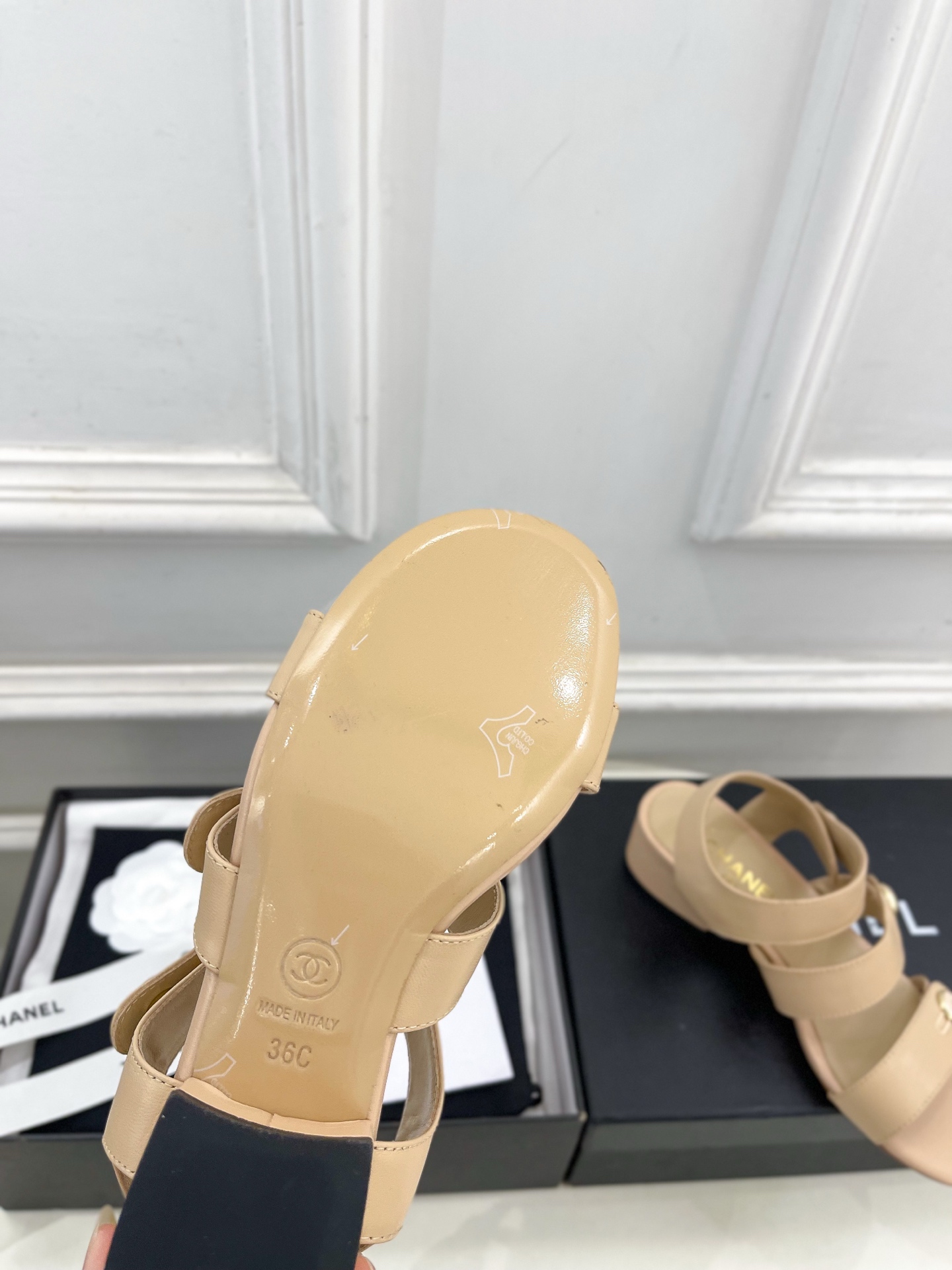 这款鞋子是AAAAA 1:1 质量 (非常棒). 使用了和原版一模一样的材料. 商标部分也保持了和香奈儿/Chanel一样. 图片拍摄是实物鞋子拍摄, 您所收到的实物保证和我们图片一模一样.