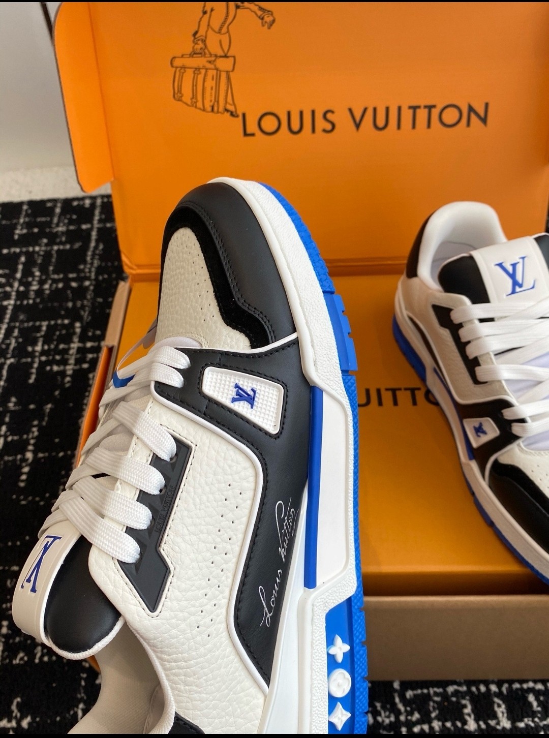这款鞋子是AAAAA 1:1 质量 (非常棒). 使用了和原版一模一样的材料. 商标部分也保持了和路易威登/Louis Vuitton一样. 图片拍摄是实物鞋子拍摄, 您所收到的实物保证和我们图片一模一样.