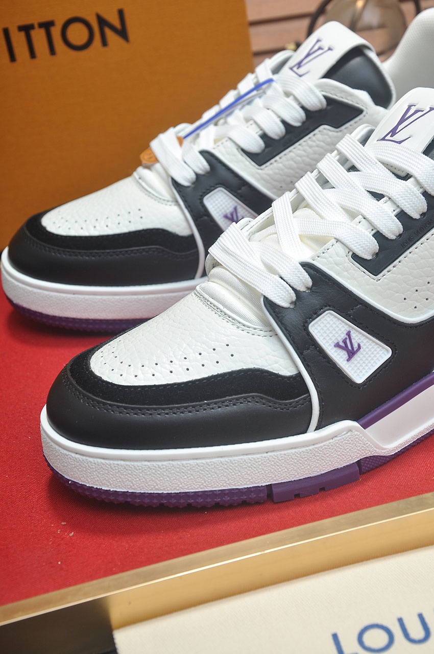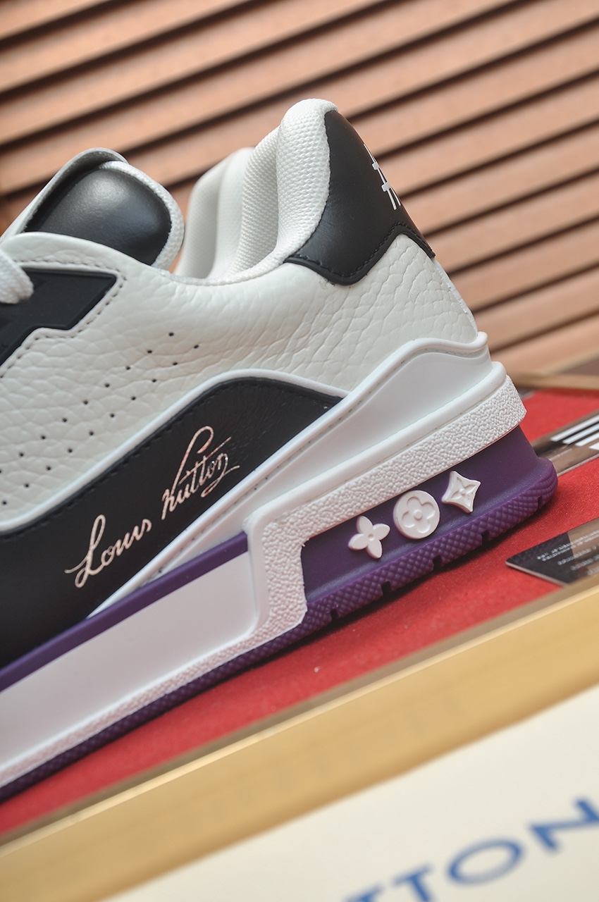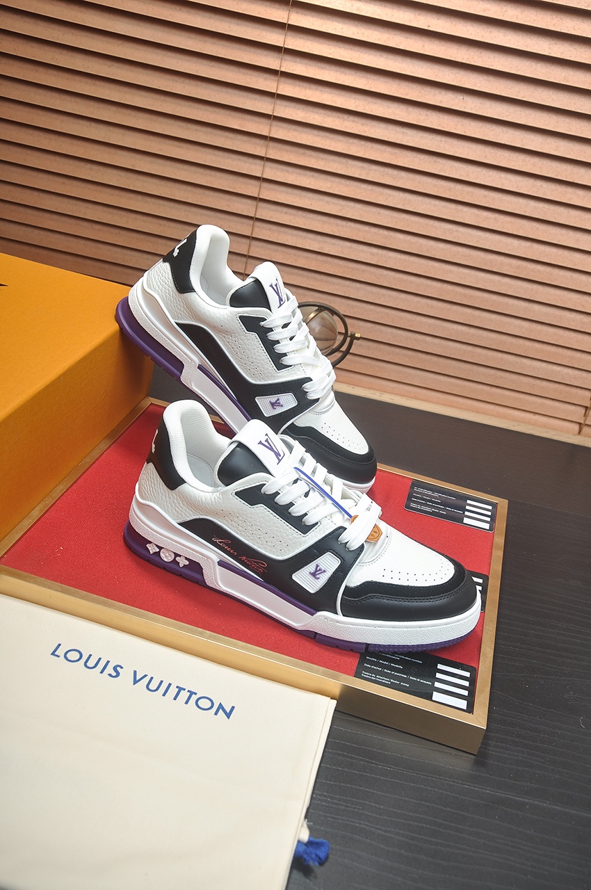 这款鞋子是AAAAA 1:1 质量 (非常棒). 使用了和原版一模一样的材料. 商标部分也保持了和路易威登/Louis Vuitton一样. 图片拍摄是实物鞋子拍摄, 您所收到的实物保证和我们图片一模一样.