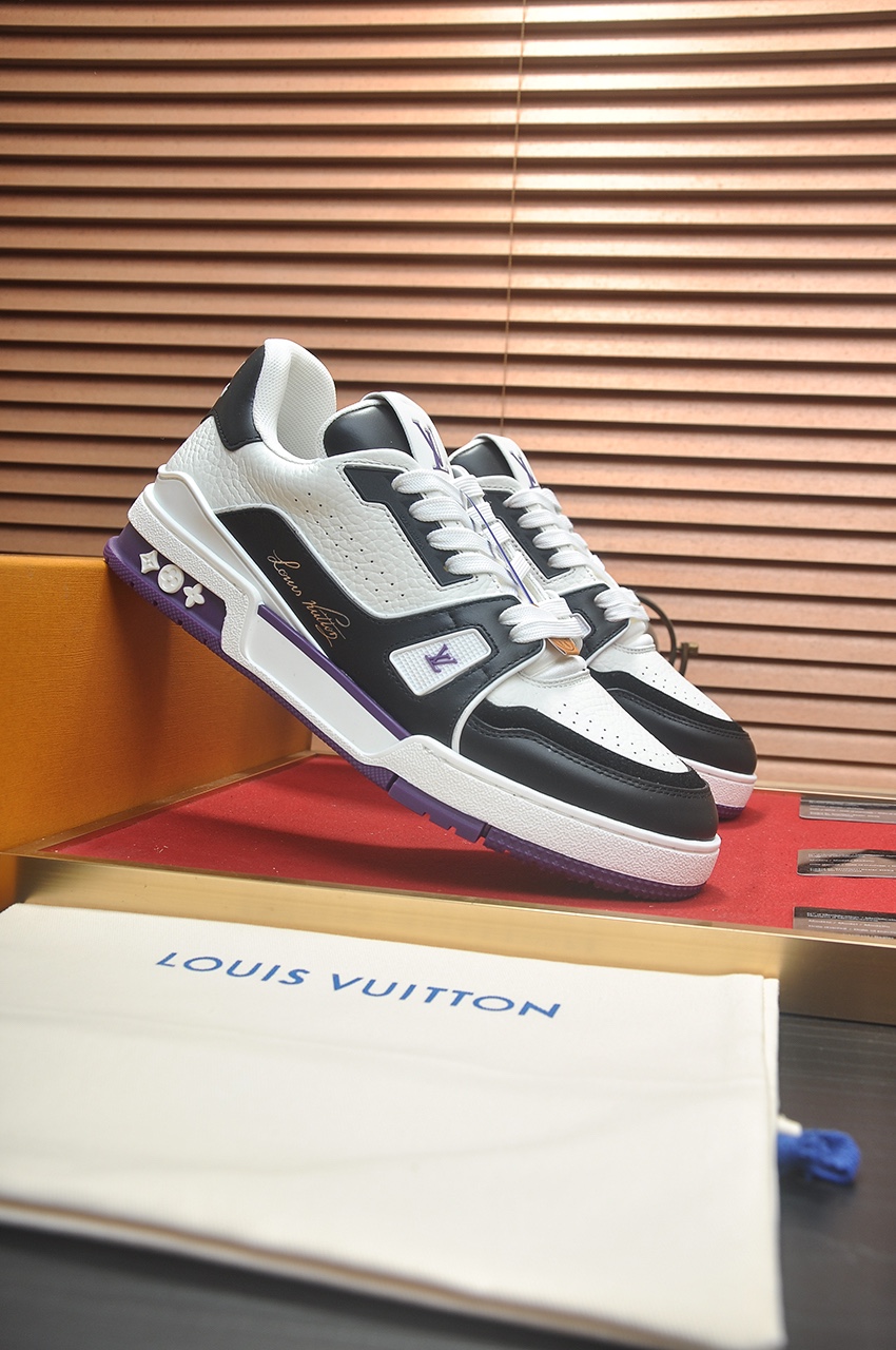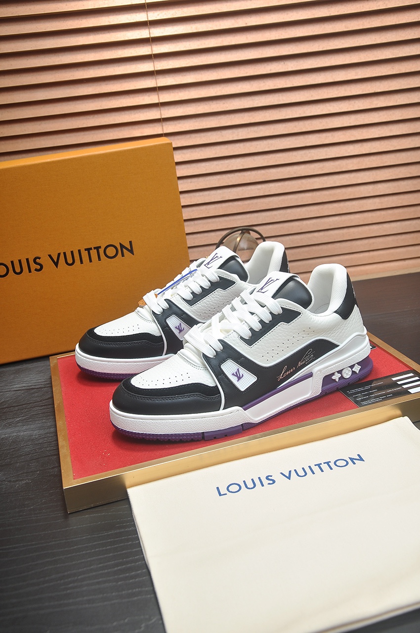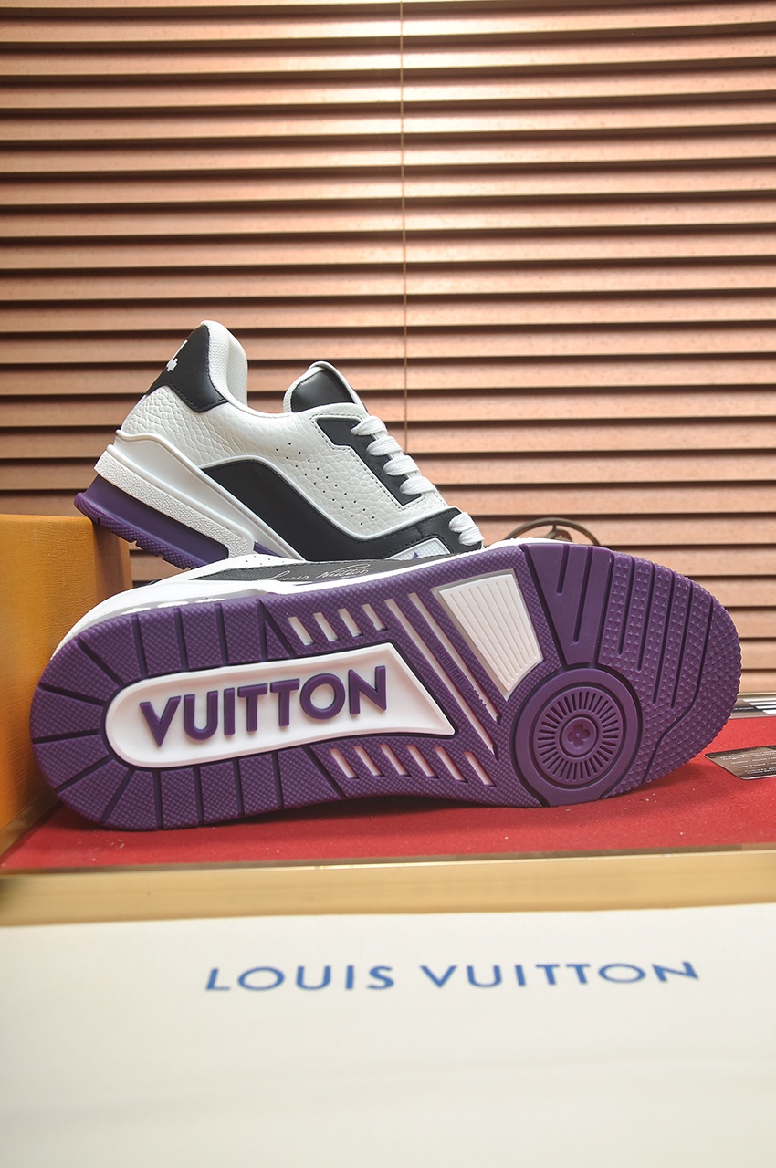 这款鞋子是AAAAA 1:1 质量 (非常棒). 使用了和原版一模一样的材料. 商标部分也保持了和路易威登/Louis Vuitton一样. 图片拍摄是实物鞋子拍摄, 您所收到的实物保证和我们图片一模一样.