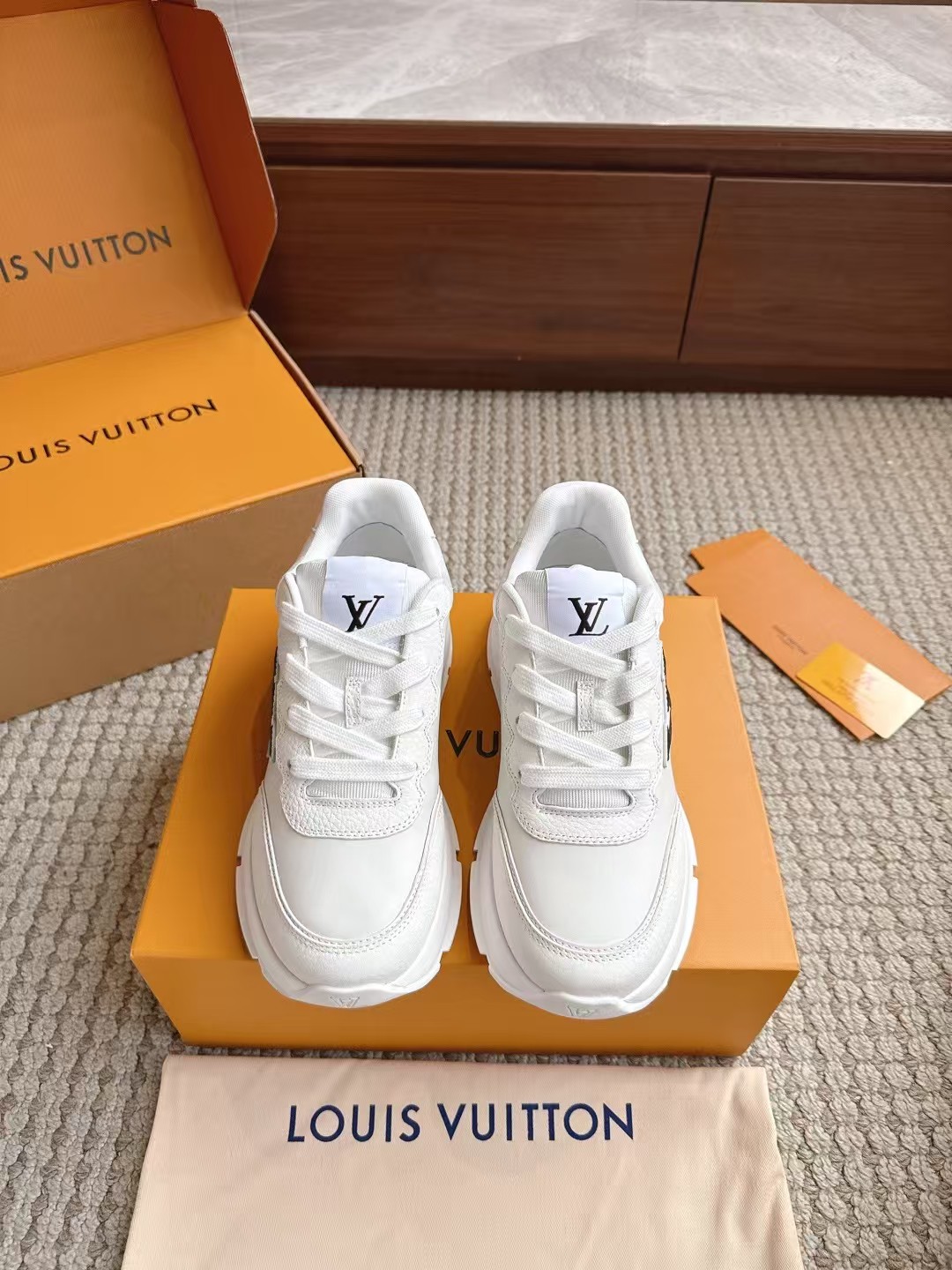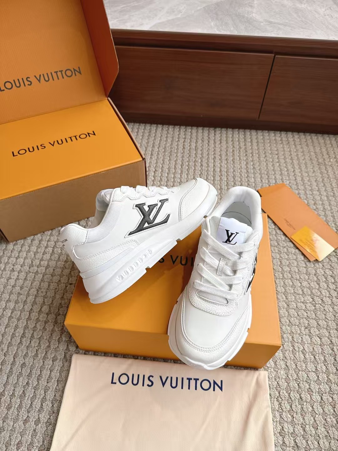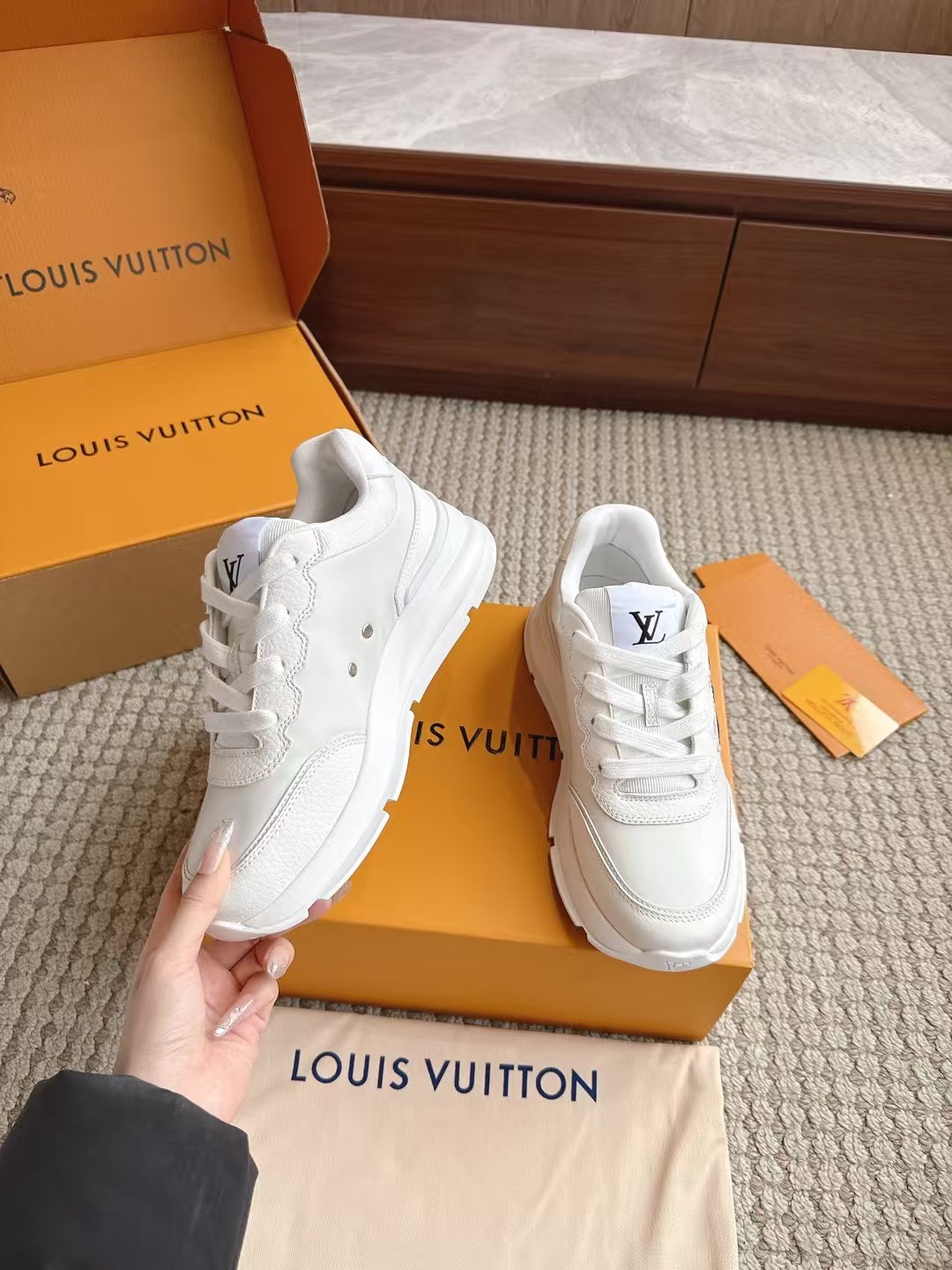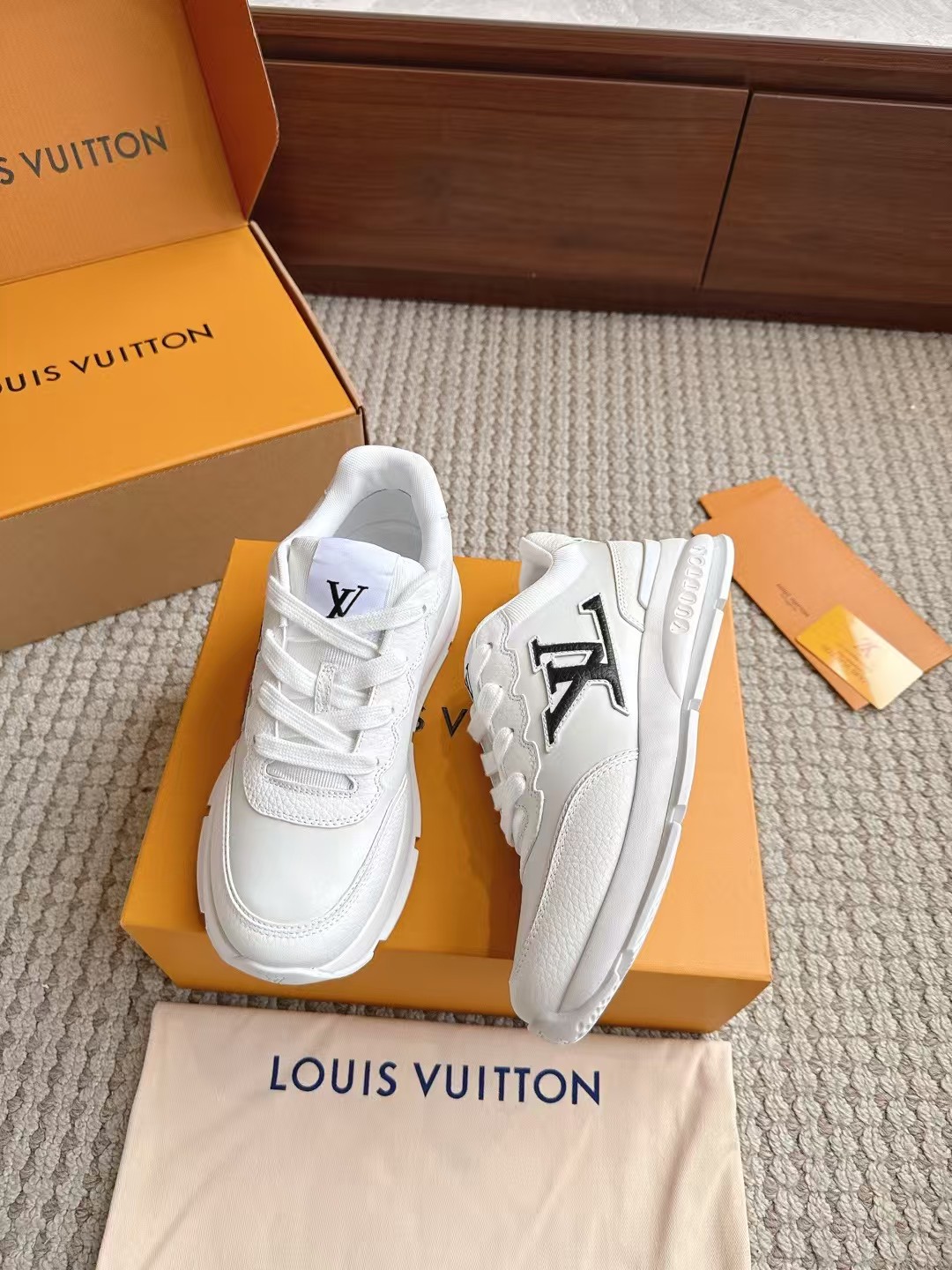 这款鞋子是AAAAA 1:1 质量 (非常棒). 使用了和原版一模一样的材料. 商标部分也保持了和路易威登/Louis Vuitton一样. 图片拍摄是实物鞋子拍摄, 您所收到的实物保证和我们图片一模一样.