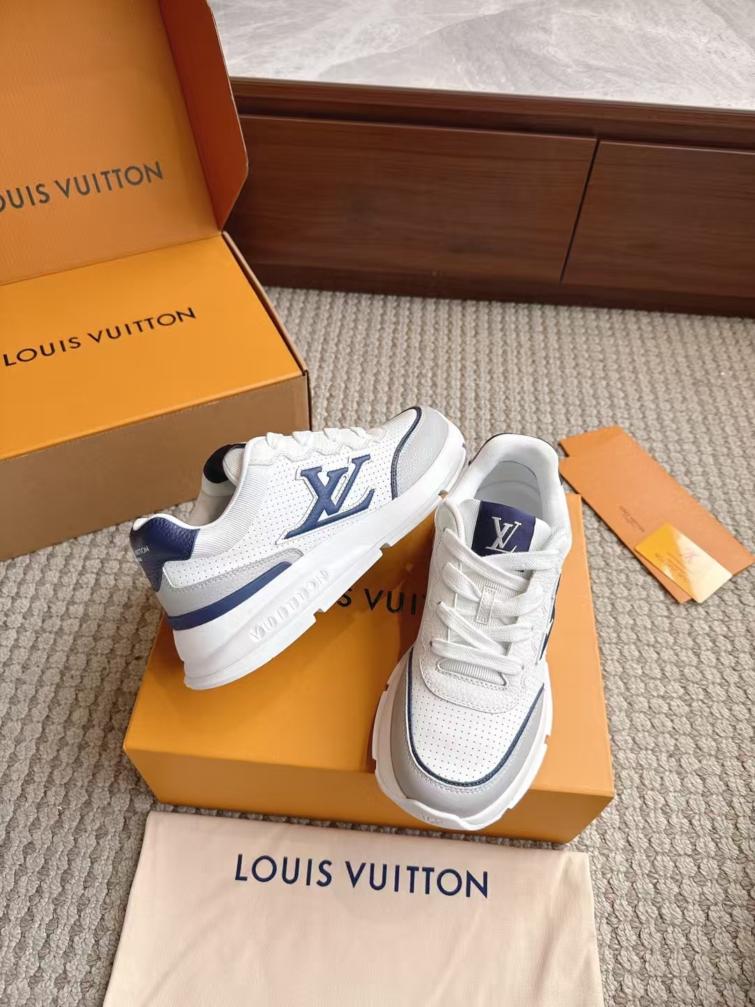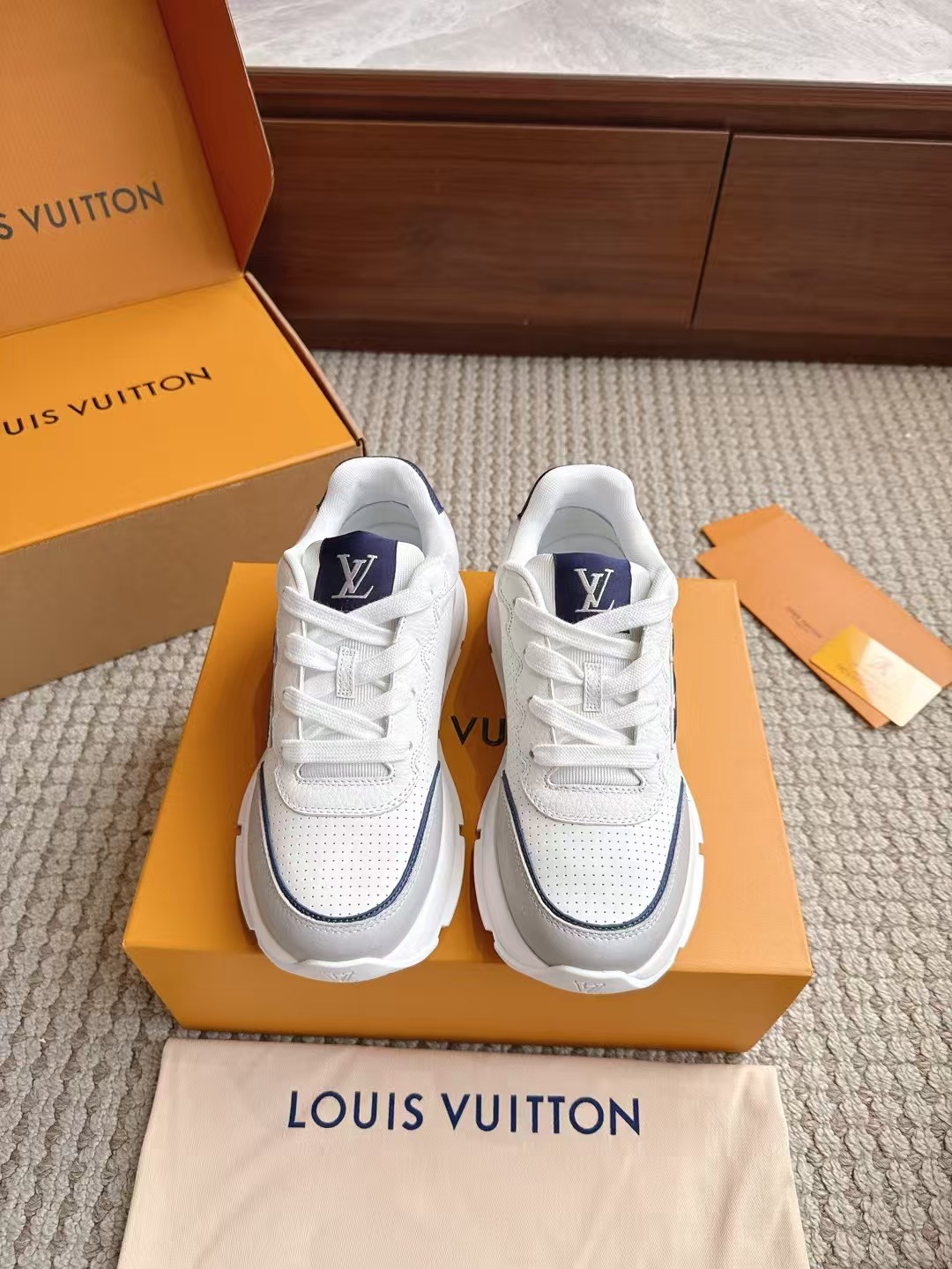 这款鞋子是AAAAA 1:1 质量 (非常棒). 使用了和原版一模一样的材料. 商标部分也保持了和路易威登/Louis Vuitton一样. 图片拍摄是实物鞋子拍摄, 您所收到的实物保证和我们图片一模一样.