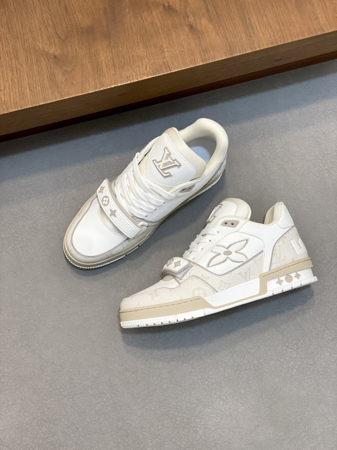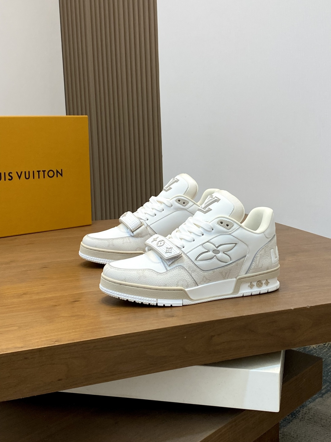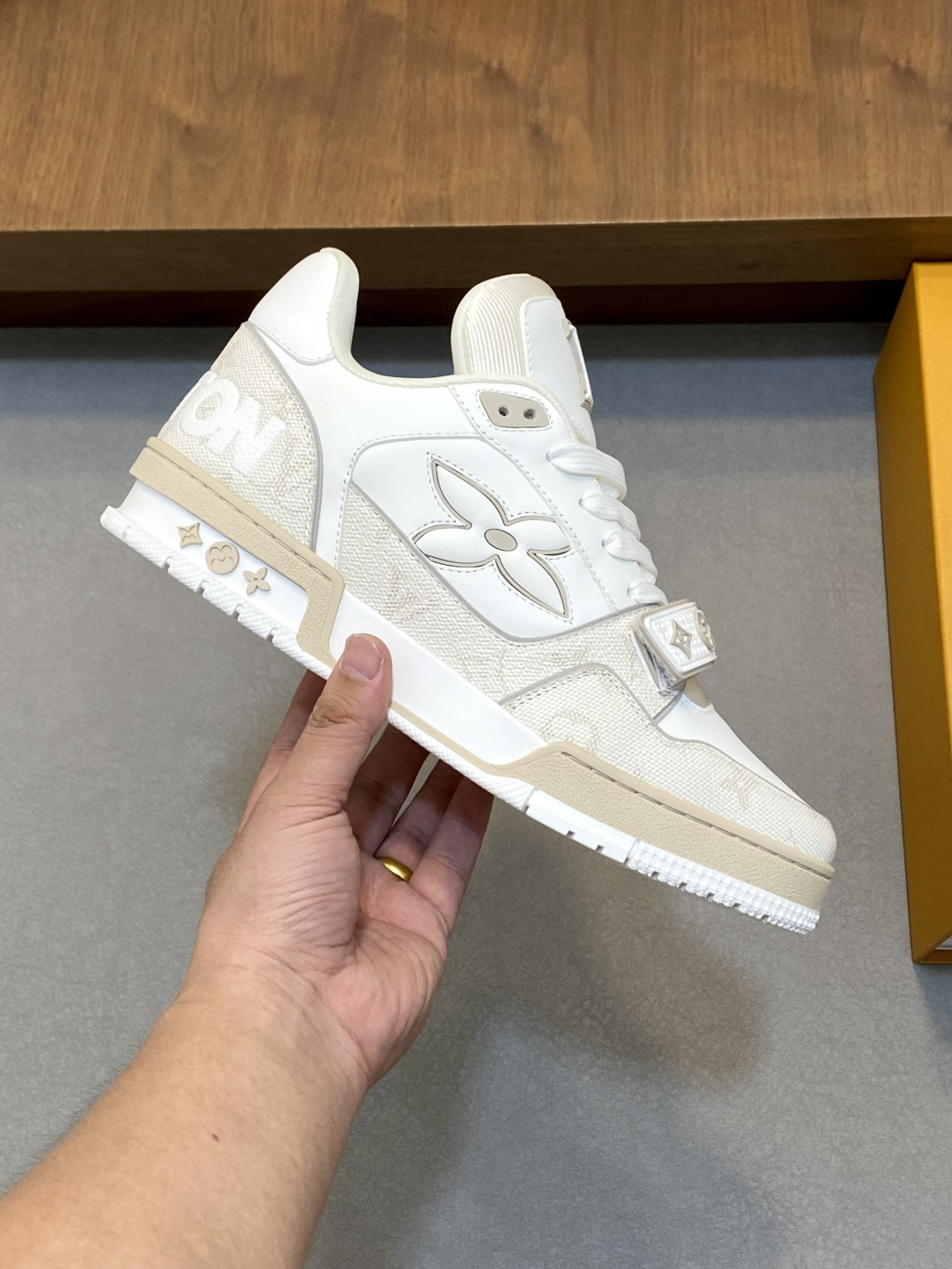 这款鞋子是AAAAA 1:1 质量 (非常棒). 使用了和原版一模一样的材料. 商标部分也保持了和路易威登/Louis Vuitton一样. 图片拍摄是实物鞋子拍摄, 您所收到的实物保证和我们图片一模一样.