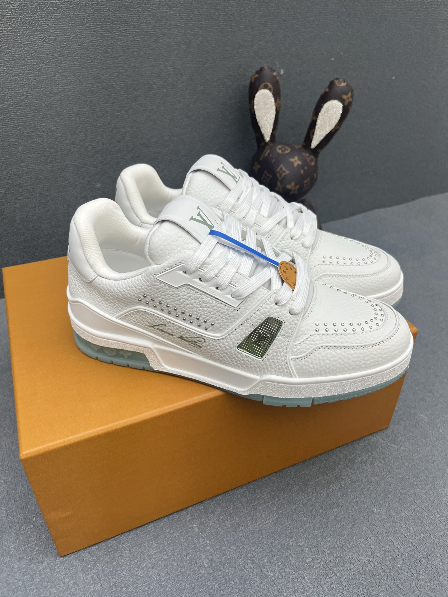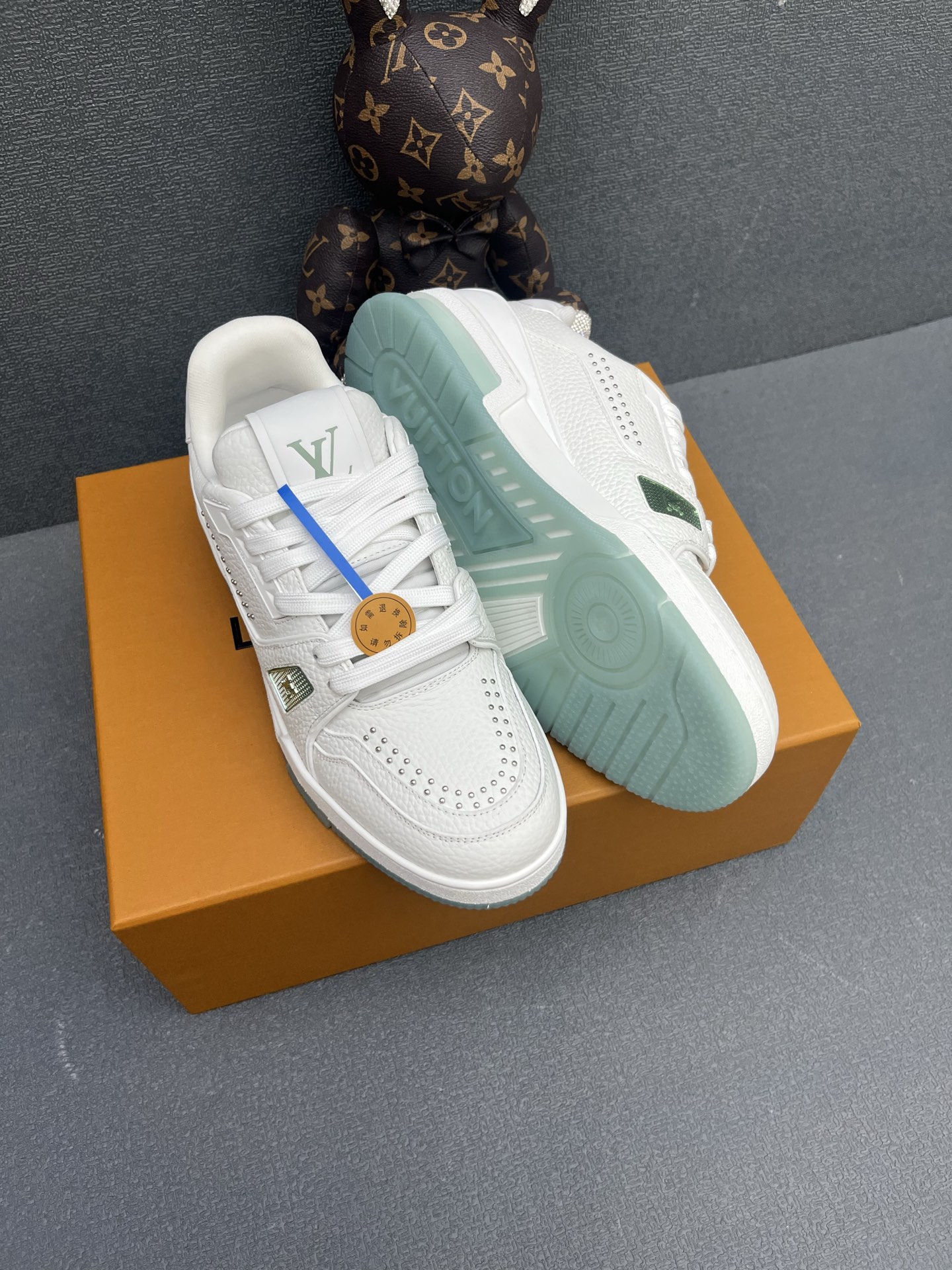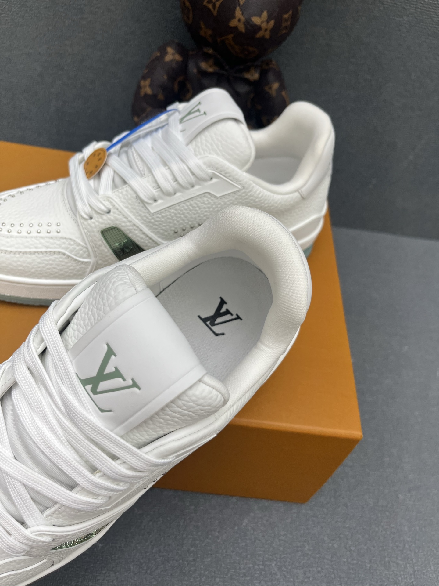 这款鞋子是AAAAA 1:1 质量 (非常棒). 使用了和原版一模一样的材料. 商标部分也保持了和路易威登/Louis Vuitton一样. 图片拍摄是实物鞋子拍摄, 您所收到的实物保证和我们图片一模一样.