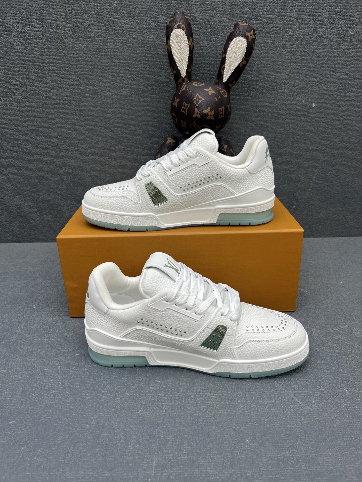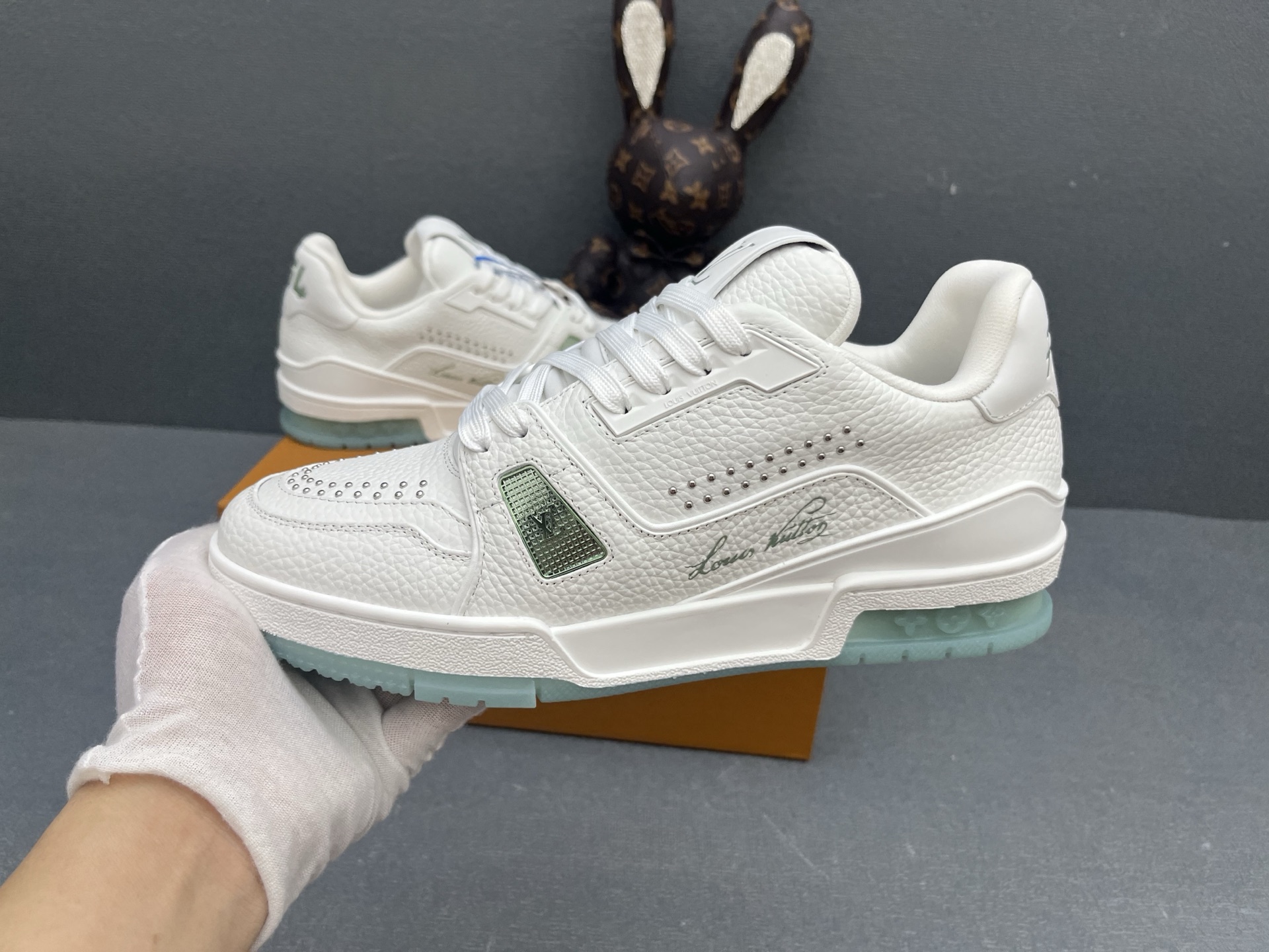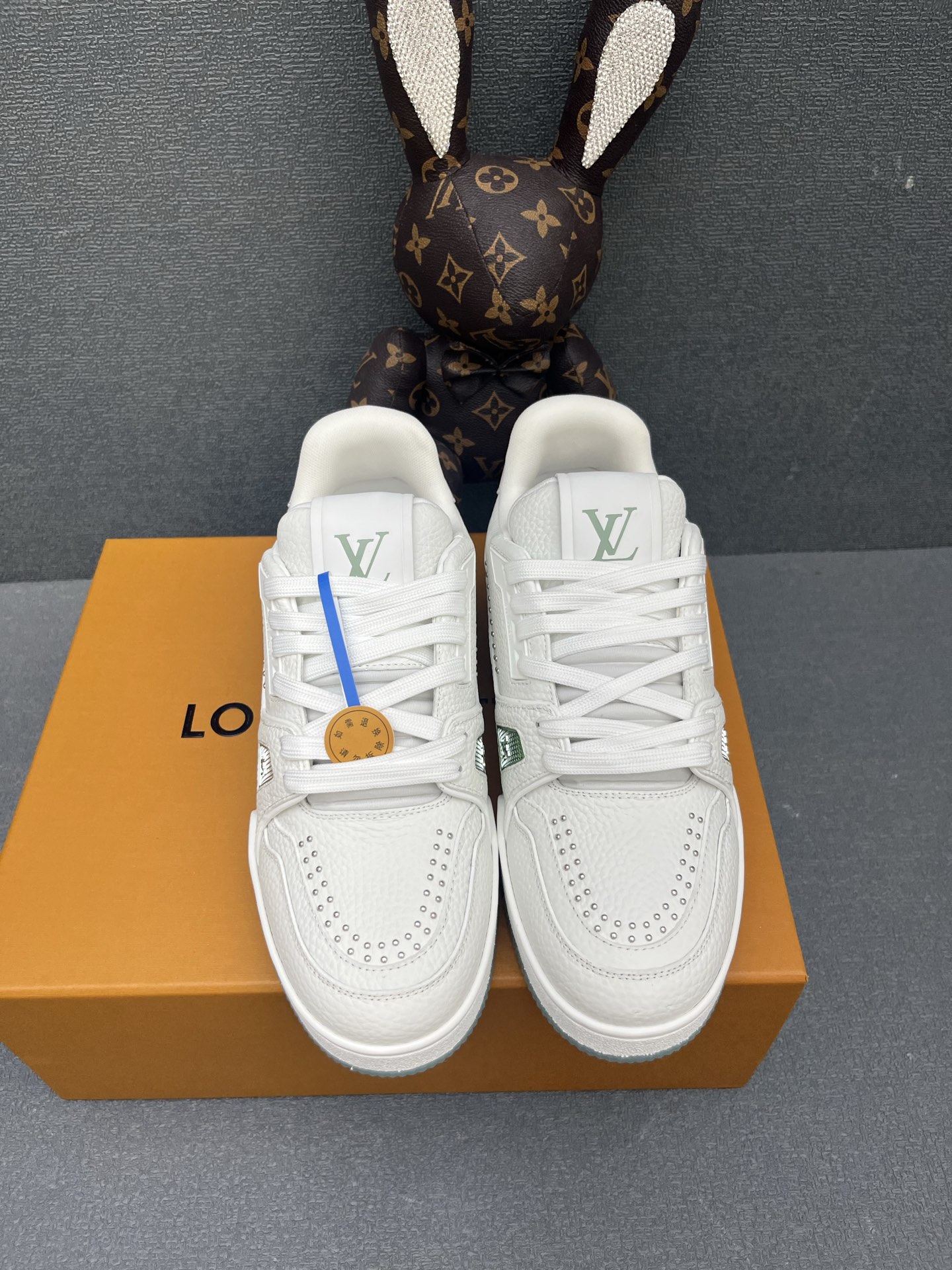 这款鞋子是AAAAA 1:1 质量 (非常棒). 使用了和原版一模一样的材料. 商标部分也保持了和路易威登/Louis Vuitton一样. 图片拍摄是实物鞋子拍摄, 您所收到的实物保证和我们图片一模一样.